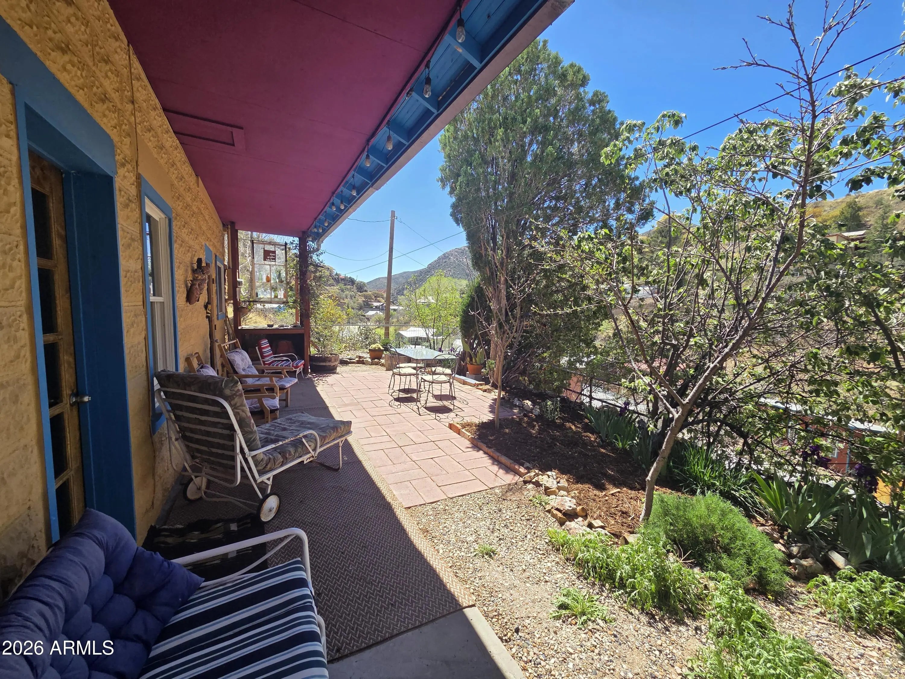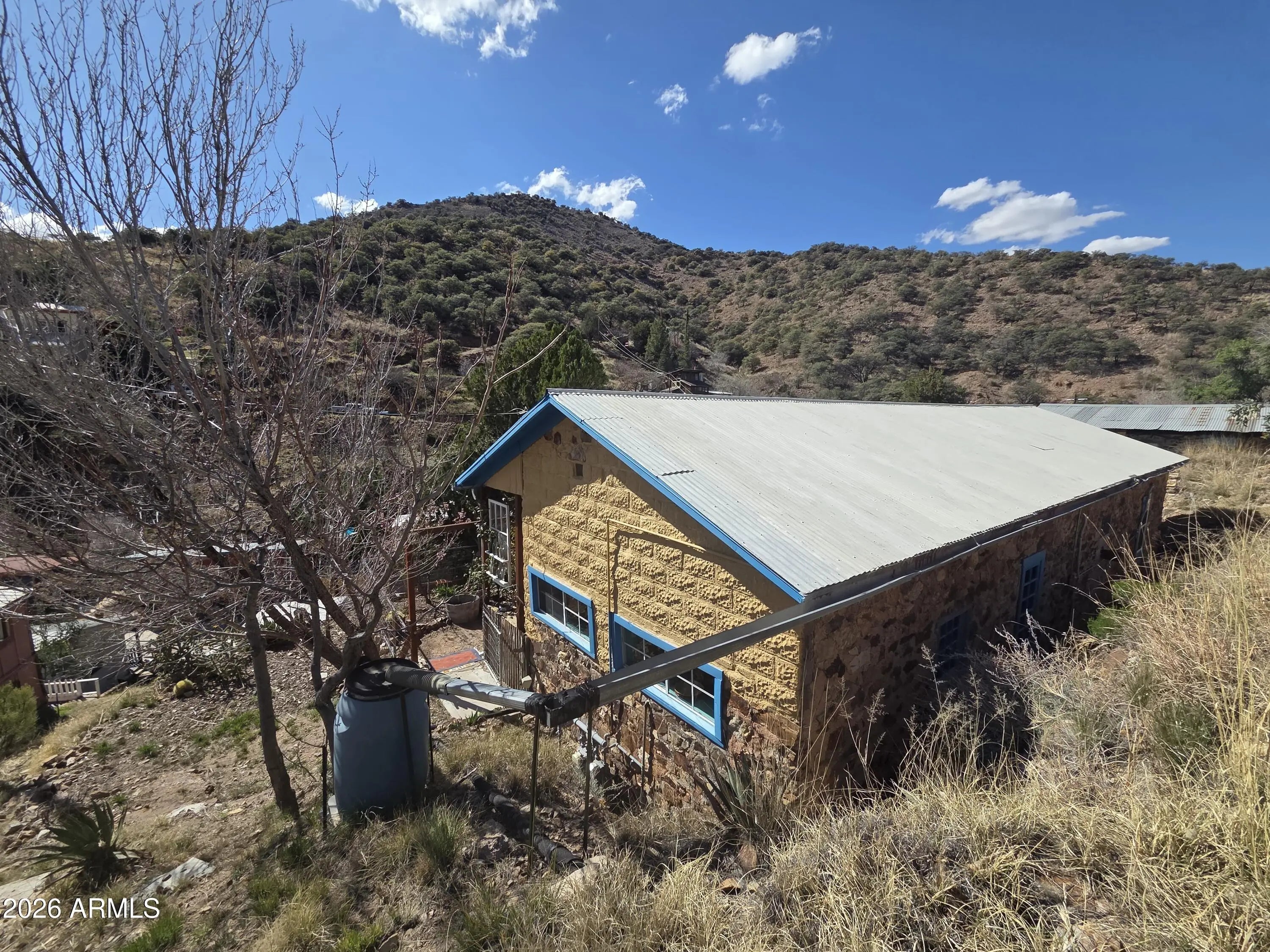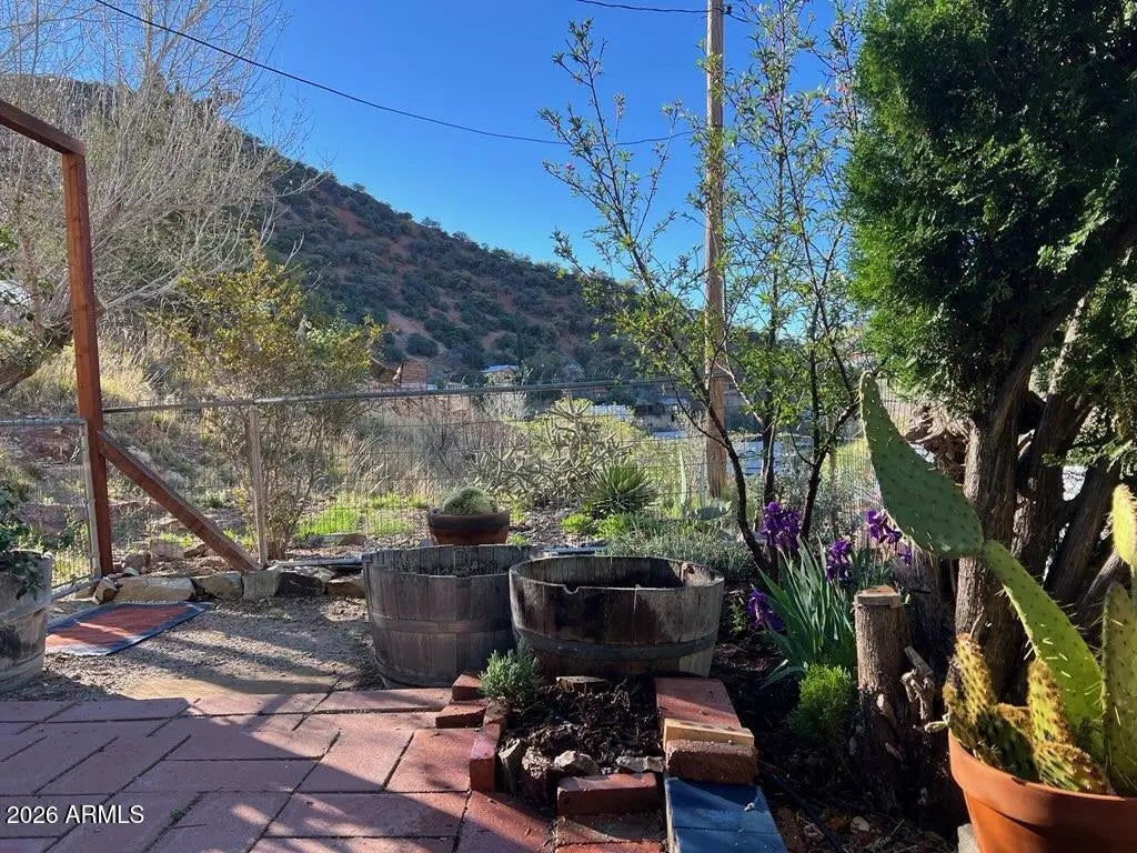 Thick walled Stone and Block 1904 lodge on the hillside. Modest structure built with integrity. Inviting entry with 1 bedroom, includes armoire and 1 full bath. Cork flooring in large living and dining area. Lots of sunlight and high ceilings. Step down into the kitchen with concrete floors, vintage gas stove and door out to the covered patio. A level patio garden area with grand views. This home allows for an uncomplicated and simple lifestyle. Roughly, 750' of indoor living and plenty of outdoor space. An additional lot #103-63-194-D is included for parking. Plenty of stairs for those who are determined to stay fit.