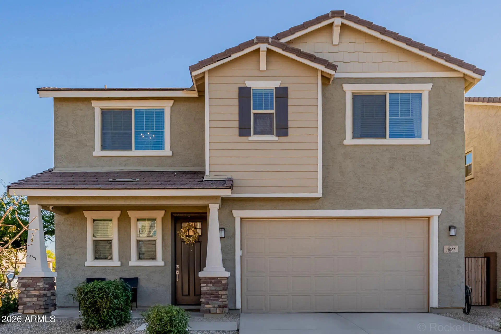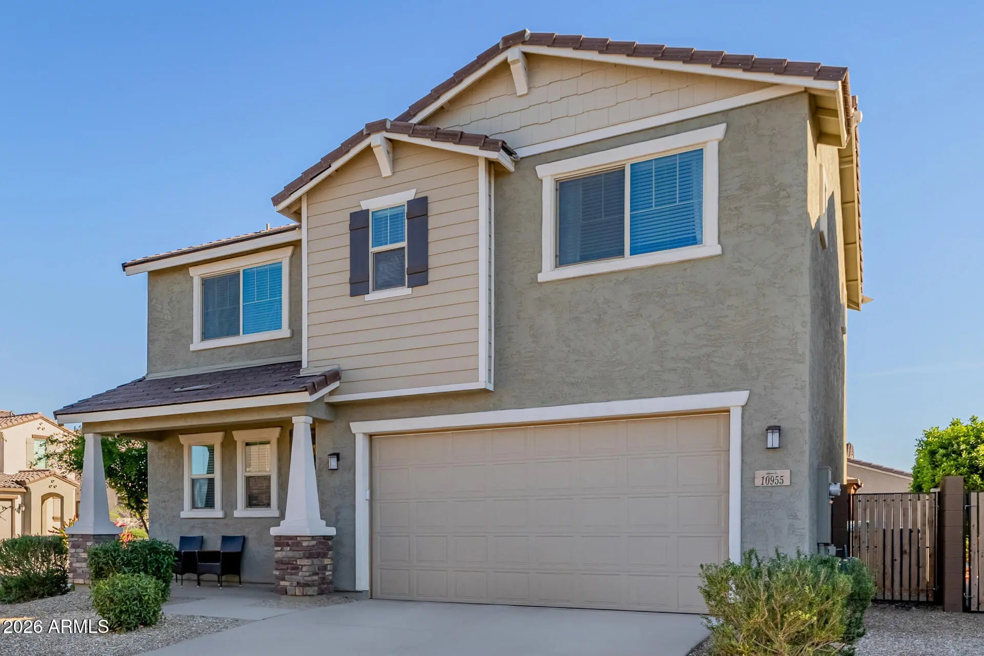 Great home in the gated community of Roosevelt Park! Desirable corner lot location just steps away from the community park! Sweet curb appeal + welcoming porch. Elegant interior is enhanced by luxury light fixtures, surround sound speakers, & durable tile flooring that flows seamlessly through the main living areas. The stunning kitchen has stainless steel appliances, sleek quartz counters, a breakfast bar island, a walk-in pantry, & crisp white cabinetry. Upstairs, you'll find plush carpeting throughout, along with a spacious loft that offers flexibility for a media room or play area. The main bedroom boasts a walk-in closet & a full bathroom w/dual sink vanity. Backyard oasis highlights a Ramada, covered patio, & artificial turf. This home is ready to welcome you!