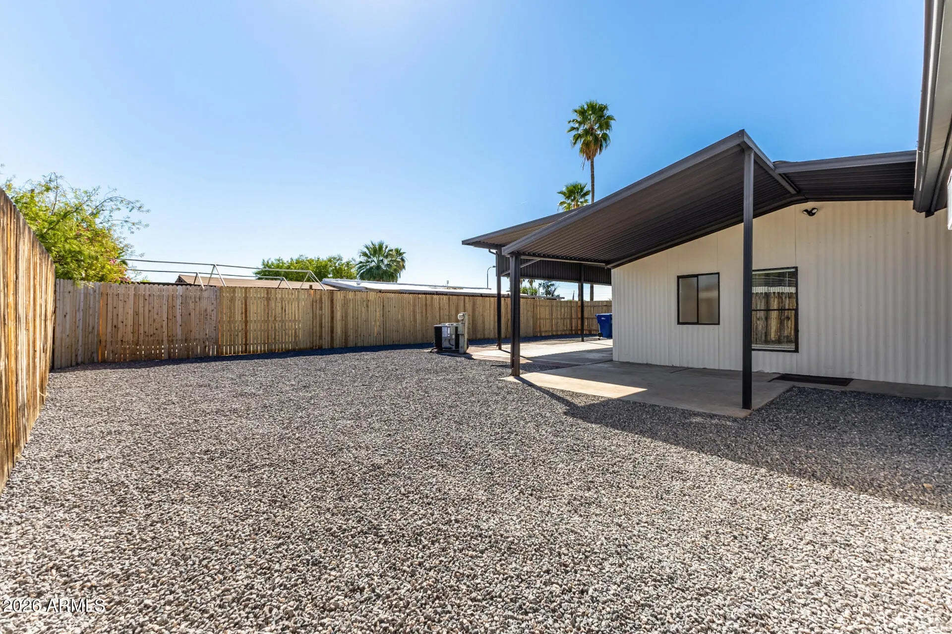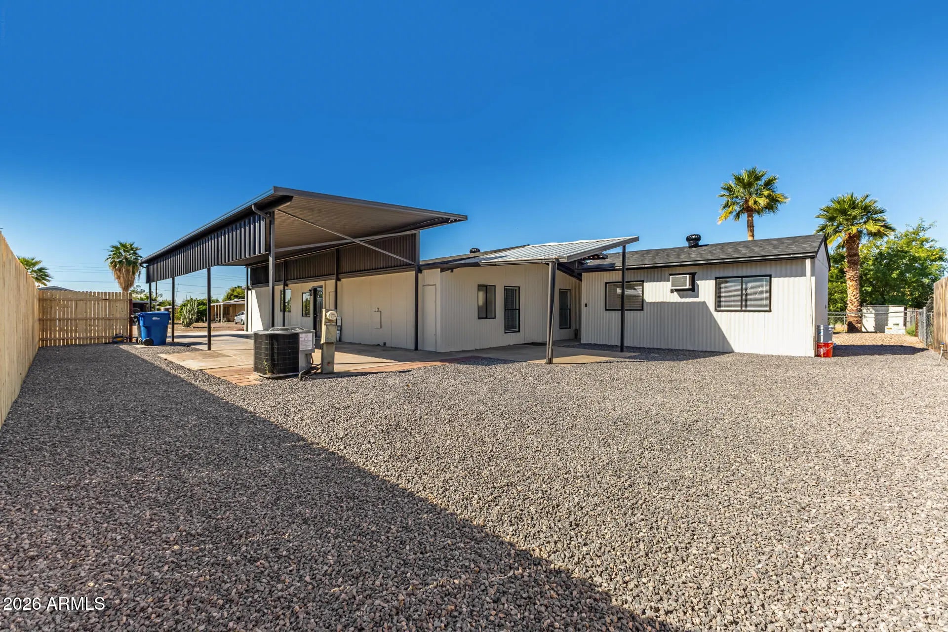 Home, sweet home! Featuring a separate guest quarters right from the start, this charming 3-bedroom, 2-bath manufactured home is perfect for hosting visitors or multi-generational living. It welcomes you with an attached RV carport and a low-maintenance desert landscape. Inside, you'll find an appealing open layout with vaulted ceilings, a soothing palette, recessed lighting, blinds, and stylish wood-look flooring. The gourmet kitchen comes with quartz counters, white shaker cabinets, stainless steel appliances, and an island with a breakfast bar for casual meals. The main bedroom includes a private bathroom and a practical walk-in closet. Outside, the backyard offers a covered patio--ideal for relaxing or entertaining. Don't miss out on this fantastic opportunity!