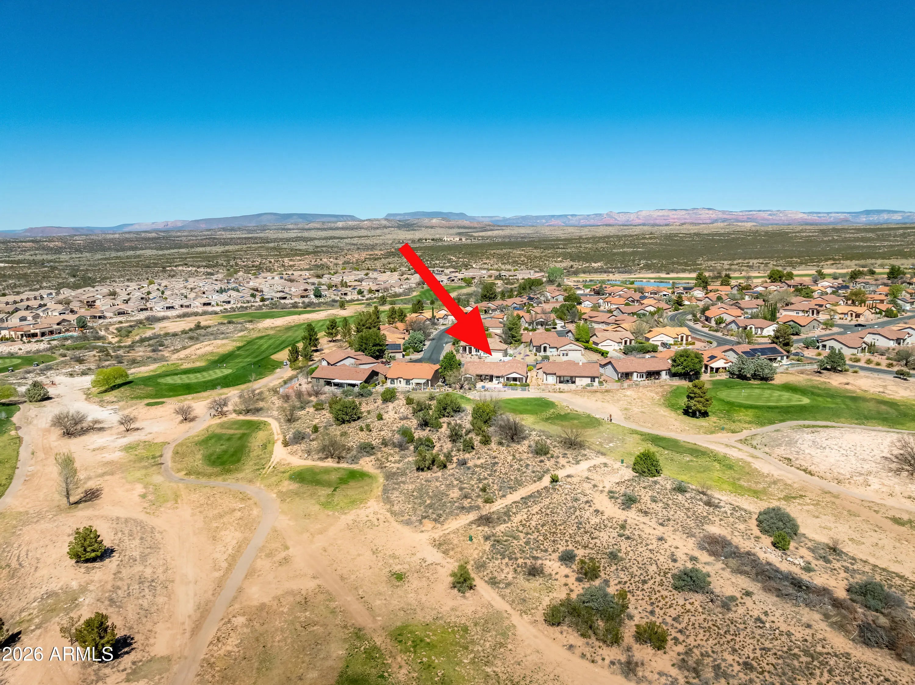 Charming home in the sought-after Verde Santa Fe 55+ community. Bright, airy and thoughtfully updated. Situated backing the golf course with stunning views of Mingus Mountain, this residence features abundant natural light, a spacious formal dining area, and a large kitchen with Corian countertops and plentiful cabinetry for storage, plus a built-in BBQ grill for outdoor entertaining. Spacious, expanded primary suite offering exceptional comfort with room for a sitting area, while recent updates include a roof replaced eight years ago, a water heater installed two years ago, and new irrigation with an expanded French drain for added protection and peace of mind. Enjoy direct access to the community clubhouse with pool, spa, fitness center and a full calendar of social events