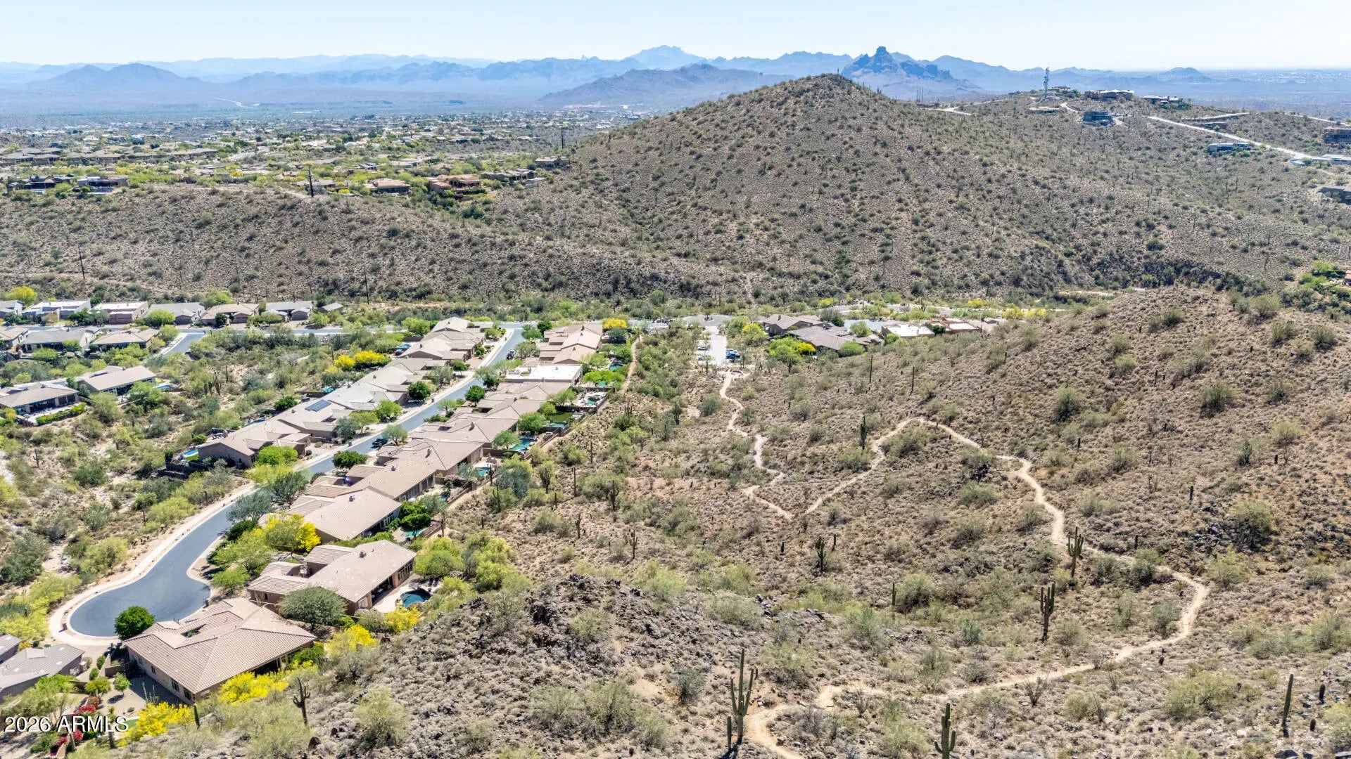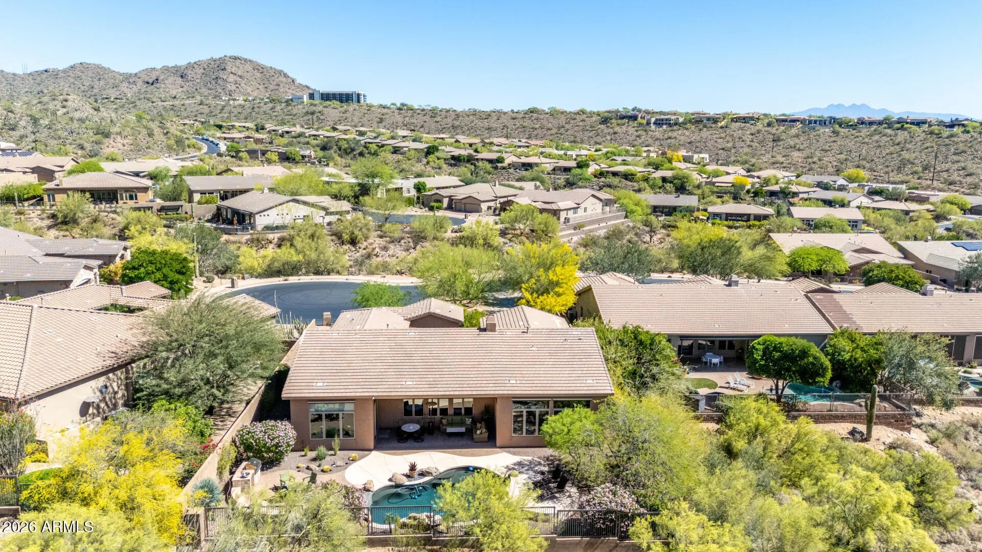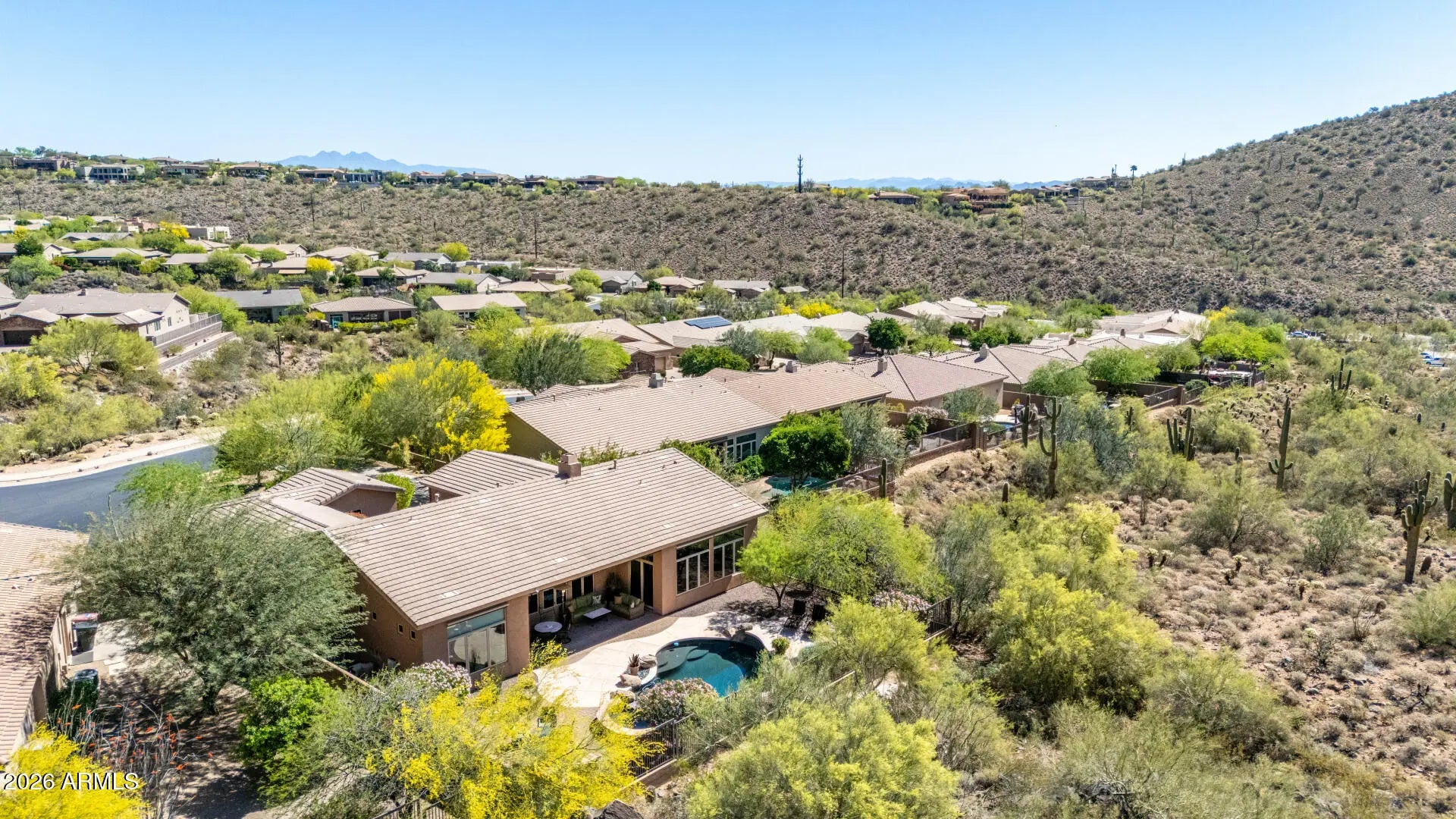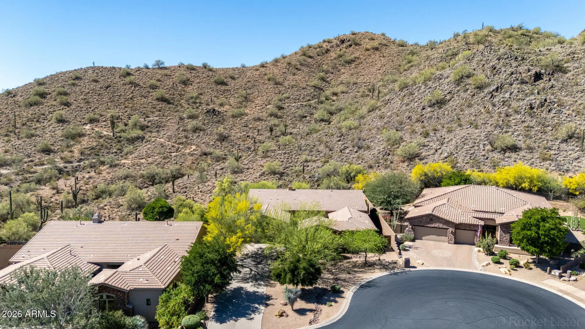 SPECTACULAR VIEW BACKING TO A MOUNTAIN PRESERVE IN THE EXCLUSIVE GATED COMMUNITY OF HIDDEN HILLS. You can feel a sense of peace & serenity in this lovely neighborhood that has access to the Sunrise Trail Head. NESTLED IN A CUL-DE-SAC, there's lush desert growth, striking curb appeal & a driveway that can hold 6 vehicles. Pass through the private courtyard to enter this exquisite residence. Basking in the sunlight, this home has luxurious finishes that includes travertine & hardwood flooring, granite & travertine countertops, slate backsplash, high-end cabinetry & doors & power interior/exterior window shades. ALL FOUR BEDROOMS HAVE THEIR OWN BATHROOM. The yard backs to its own mountain, there's a heated pool/spa, gas firepit, extensive patio space & built-in BBQ island with sink & fridge. YOU MIGHT NOT WANT TO LEAVE HOME!