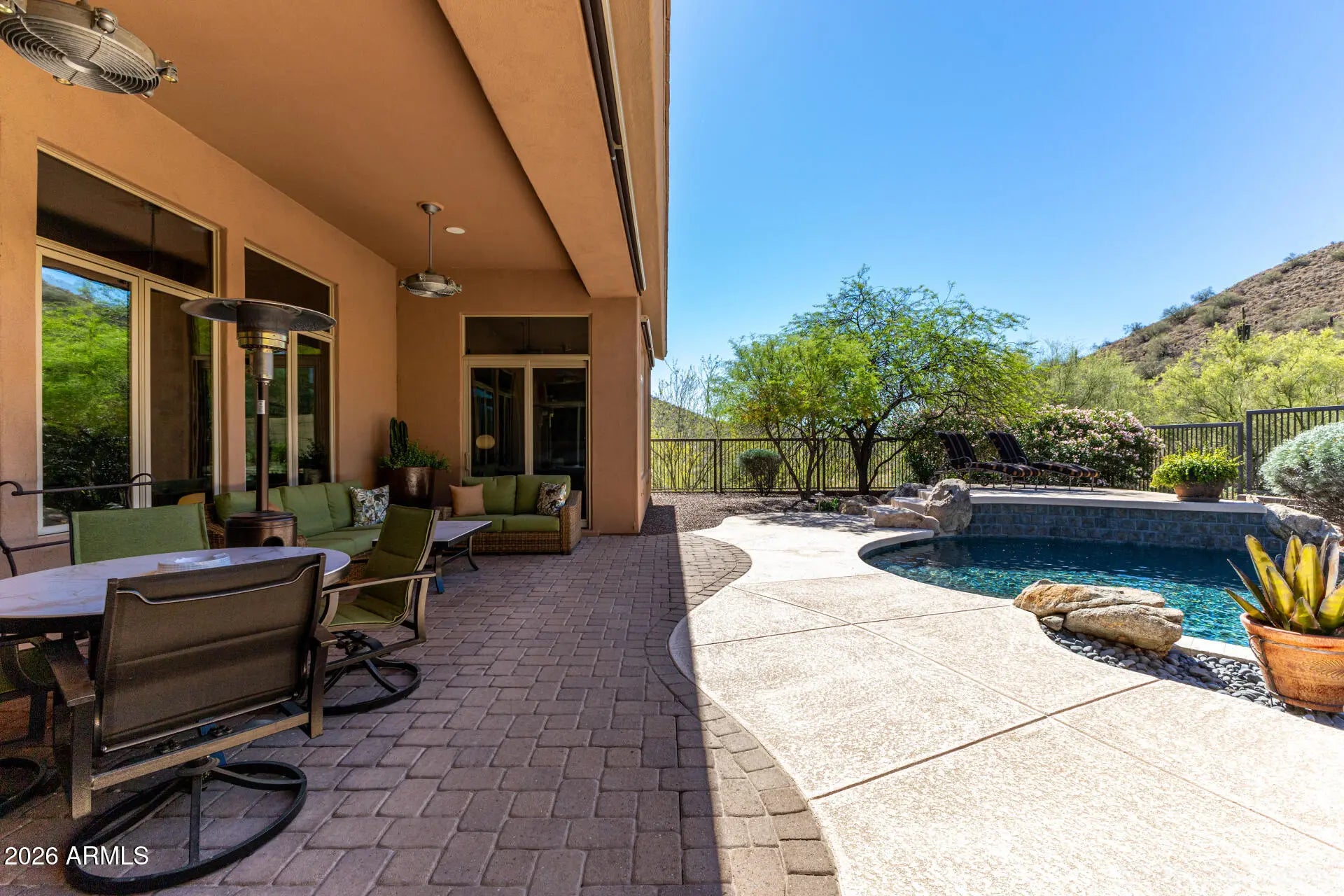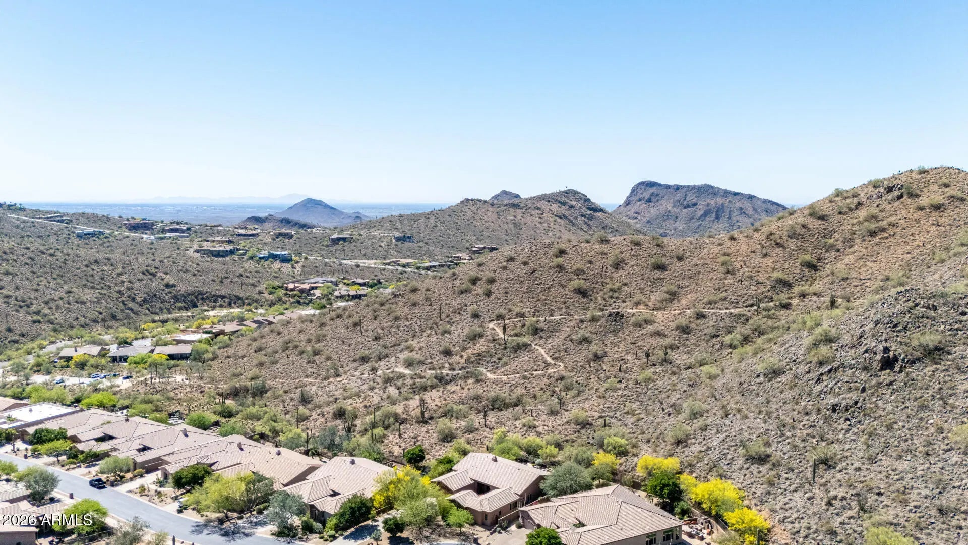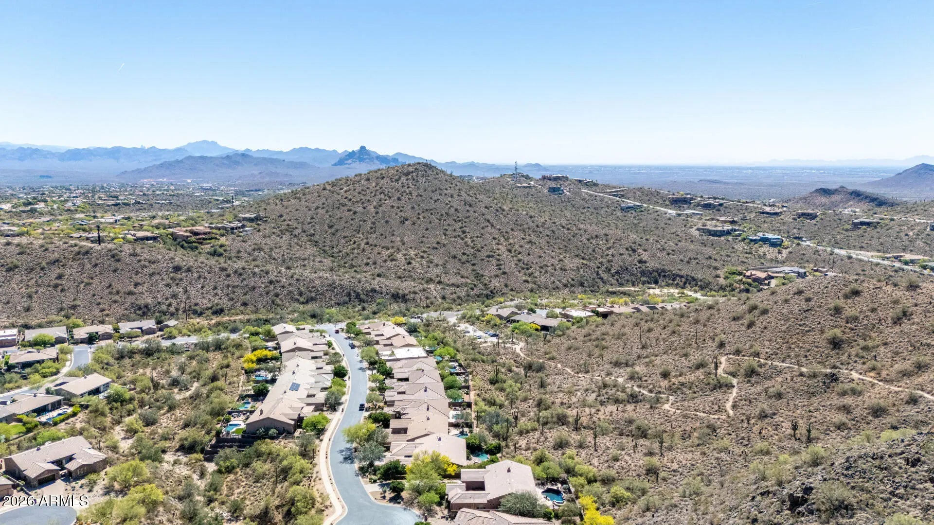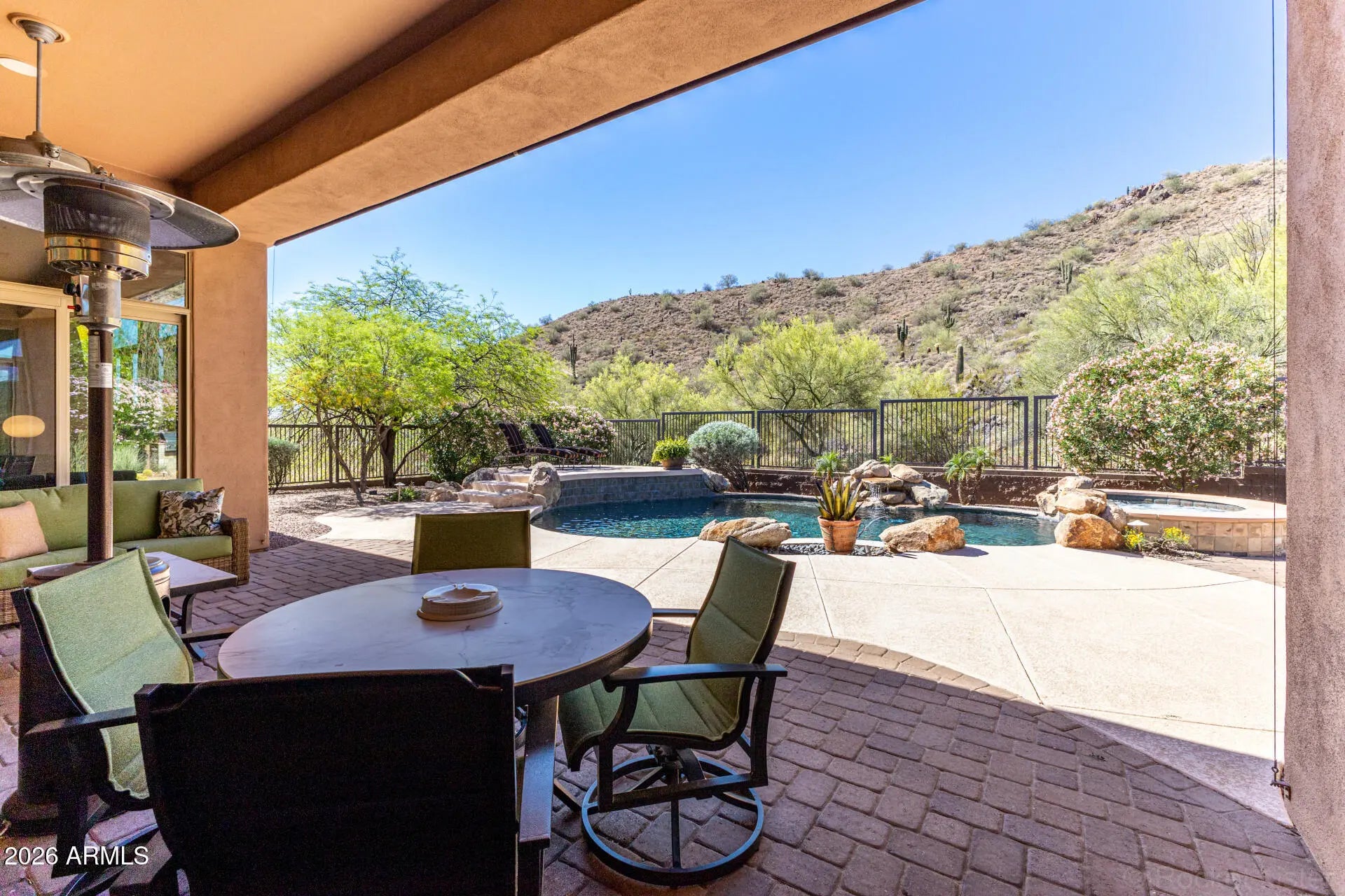 SPECTACULAR VIEW BACKING TO A MOUNTAIN PRESERVE IN THE EXCLUSIVE GATED COMMUNITY OF HIDDEN HILLS. You can feel a sense of peace & serenity in this lovely neighborhood that has access to the Sunrise Trail Head. NESTLED IN A CUL-DE-SAC, there's lush desert growth, striking curb appeal & a driveway that can hold 6 vehicles. Pass through the private courtyard to enter this exquisite residence. Basking in the sunlight, this home has luxurious finishes that includes travertine & hardwood flooring, granite & travertine countertops, slate backsplash, high-end cabinetry & doors & power interior/exterior window shades. ALL FOUR BEDROOMS HAVE THEIR OWN BATHROOM. The yard backs to its own mountain, there's a heated pool/spa, gas firepit, extensive patio space & built-in BBQ island with sink & fridge. YOU MIGHT NOT WANT TO LEAVE HOME!