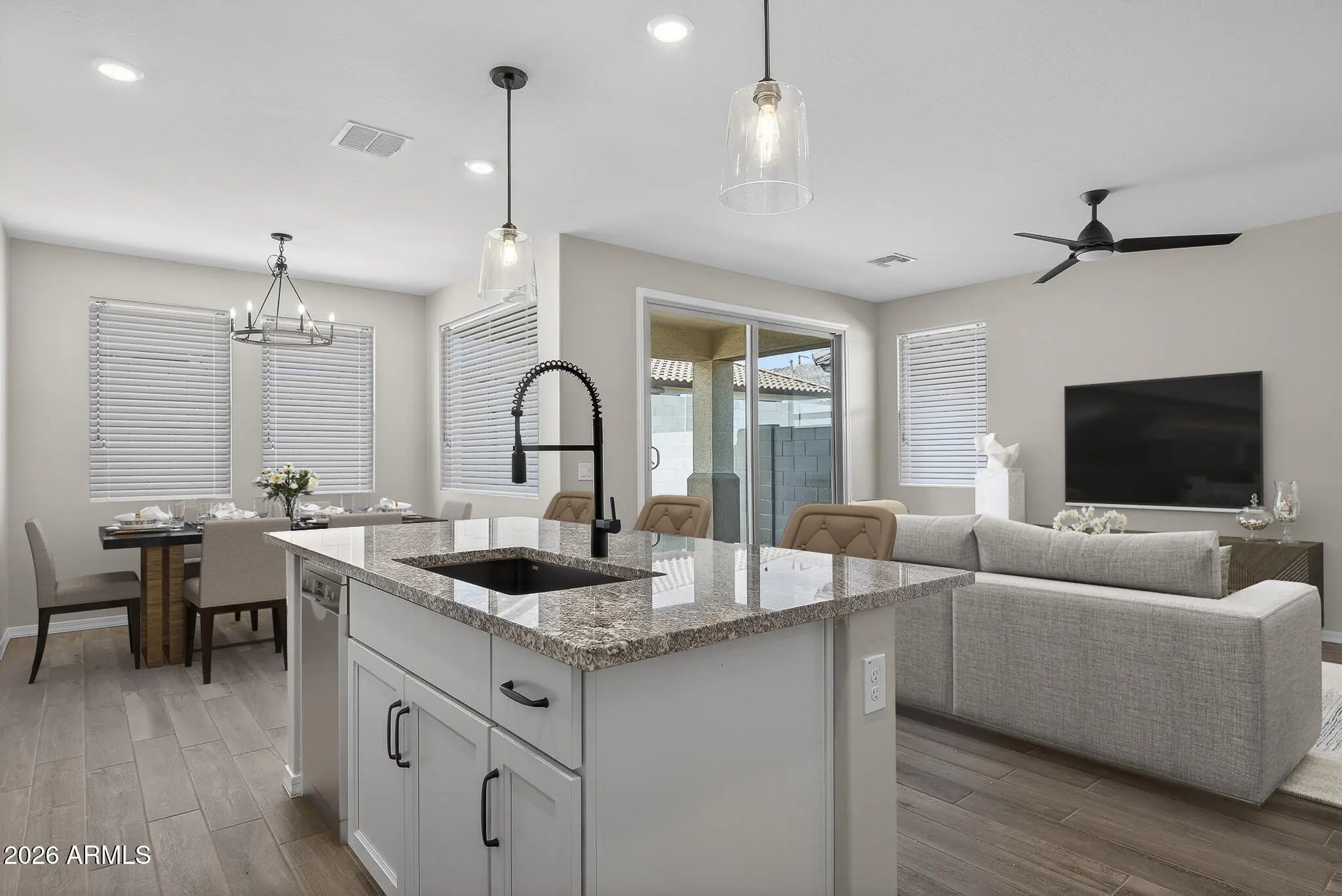 Fantastic New Home in a Resort Style Community! This brand-new 3-bedroom, 2-bath, 1,391 sq. ft. home is loaded with premium standard and optional upgrades, including synthetic turf landscaping front and rear, coach lights, paver driveway, garage door windows, and an upgraded front door. Inside, granite countertops, a stylish tile backsplash, upgraded tile flooring, two-tone paint, ceiling fans, window blinds, and a covered patio. Energy-efficient features include an electric car charging outlet, tankless water heater, soft water loop, Wi-Fi-enabled garage door opener, and Energy Star® and Indoor airPLUS® certifications for comfort and quality. Located in Escalante, a premier master-planned community thoughtfully designed with lifestyle in mind. Amenities include a resort-style pool...