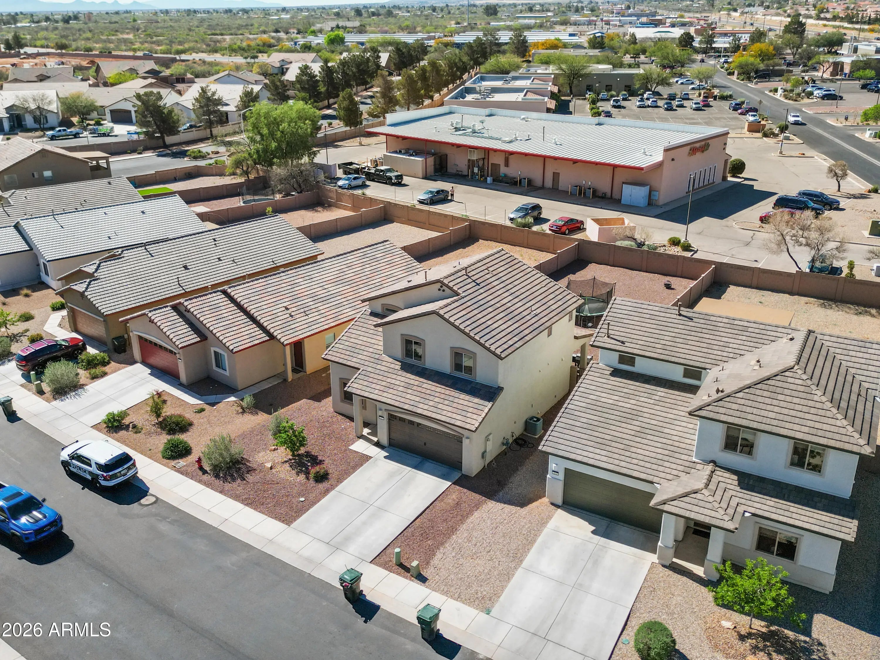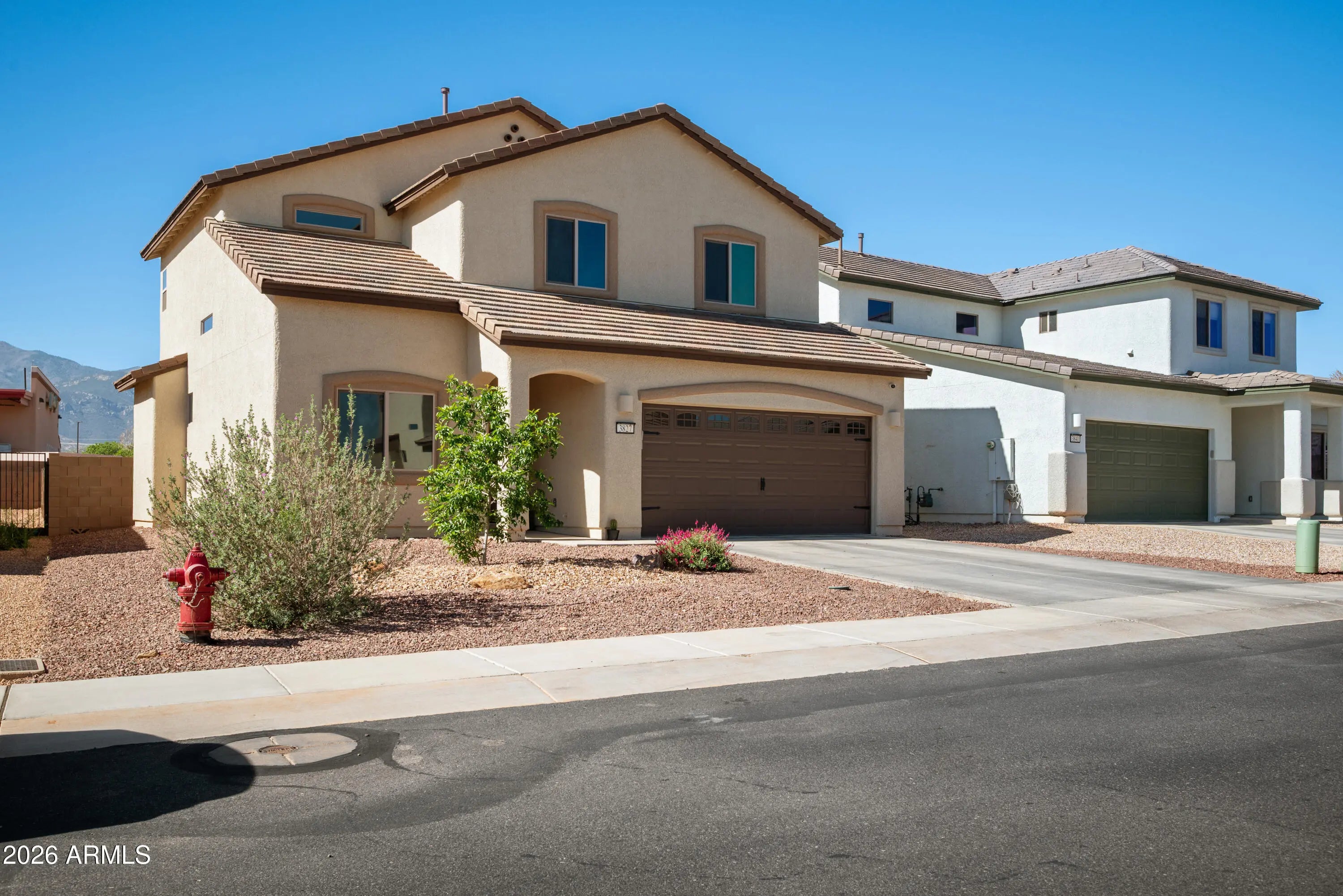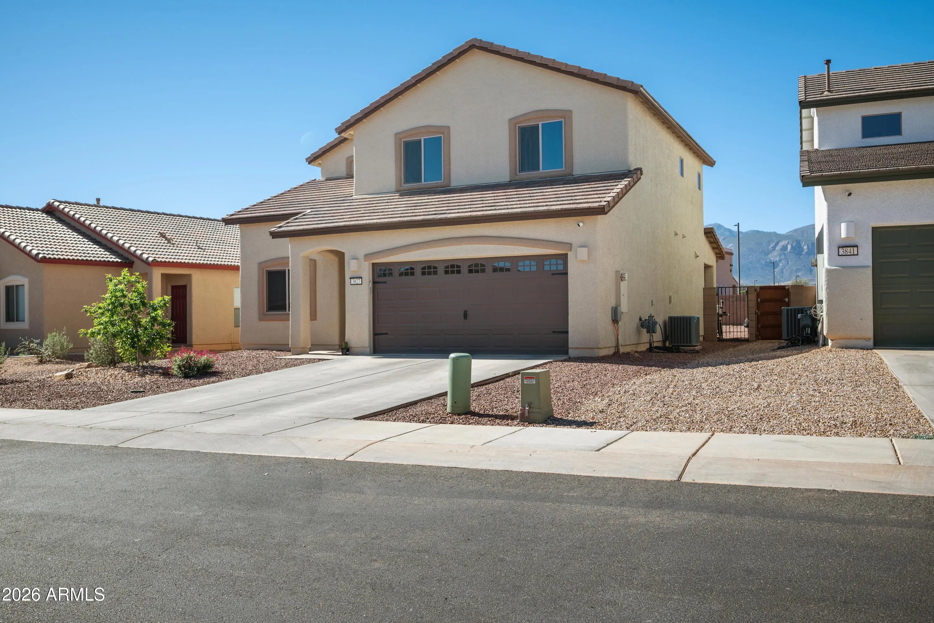THIS IS IT! Stunning newer construction in the desirable Holiday subdivision of Sierra Vista! Built in 2022, this thoughtfully designed 4-bedroom, 2.5-bath home offers the perfect blend of modern finishes, functional layout, and beautiful mountain views. Step inside to an open-concept living space featuring upgraded tile flooring, abundant natural light, and a stylish, contemporary feel throughout. The kitchen is a true centerpiece with gorgeous granite countertops, white cabinetry, stainless steel appliances, and a spacious island--perfect for entertaining or everyday living. The flexible floor plan includes one bedroom downstairs (no built in closet) that works perfectly as a guest room, home office, or den. Upstairs, you'll find three additional bedrooms including the spacious primary suite, creating a comfortable and private retreat. The living area flows seamlessly to the backyard, where you'll enjoy a low-maintenance landscape and plenty of space to customize or relax while taking in the surrounding mountain views and Arizona sunsets. Additional highlights include a durable tile roof, modern fixtures, and energy-efficient construction. Located in a well-maintained community with access to a pool and clubhouse, this home offers both comfort and convenience just minutes from shopping, dining, and Fort Huachuca. This move-in ready home checks all the boxes--schedule your showing today! Home Starts Here!