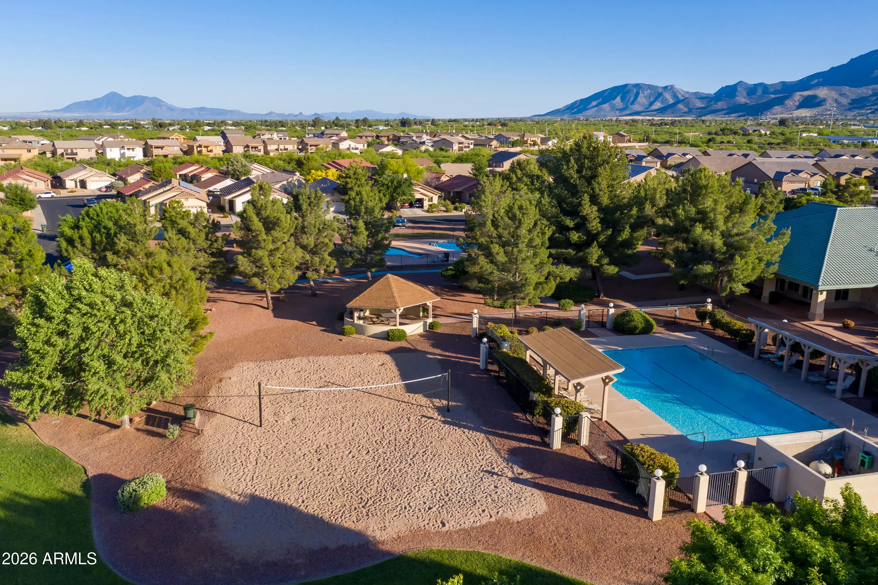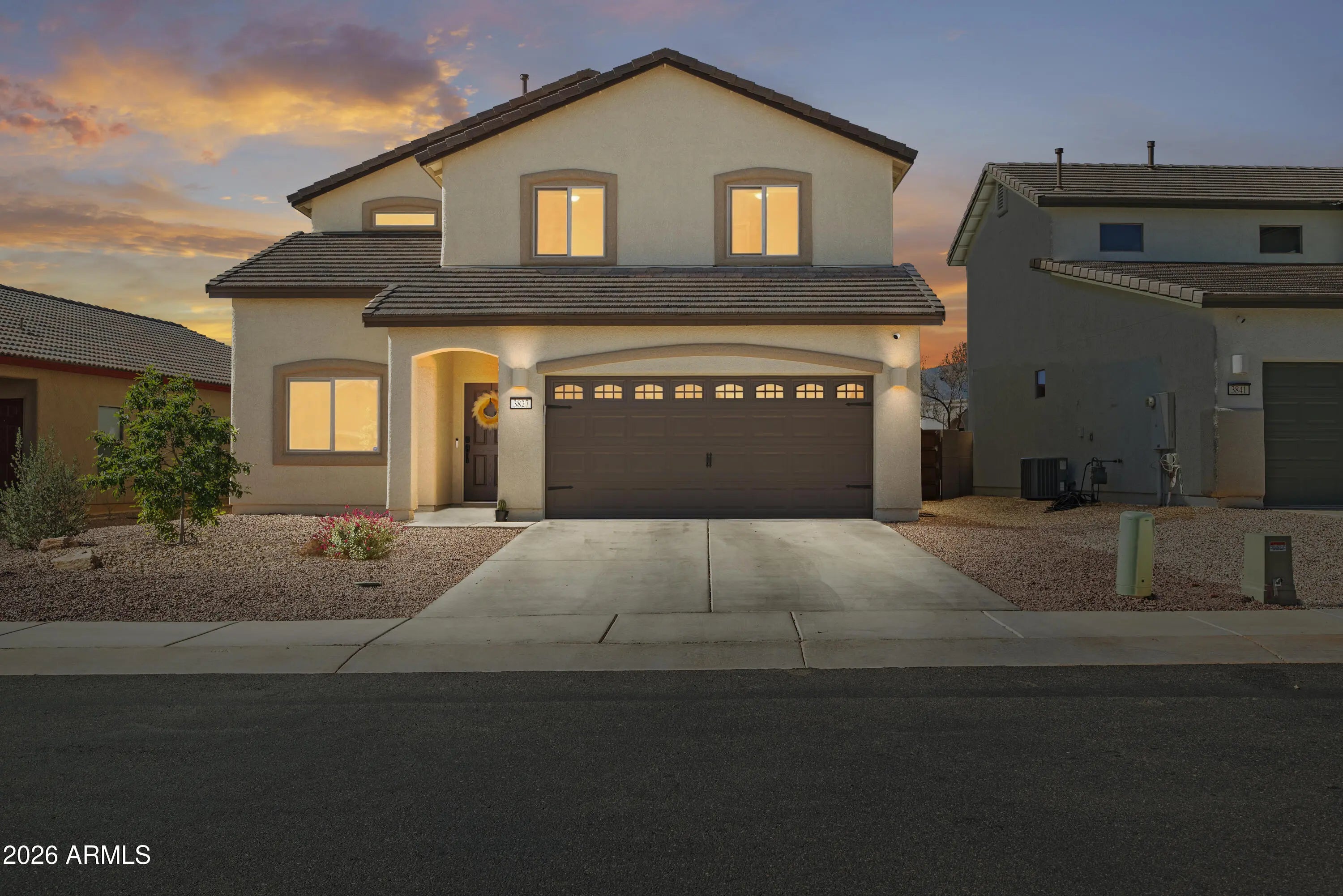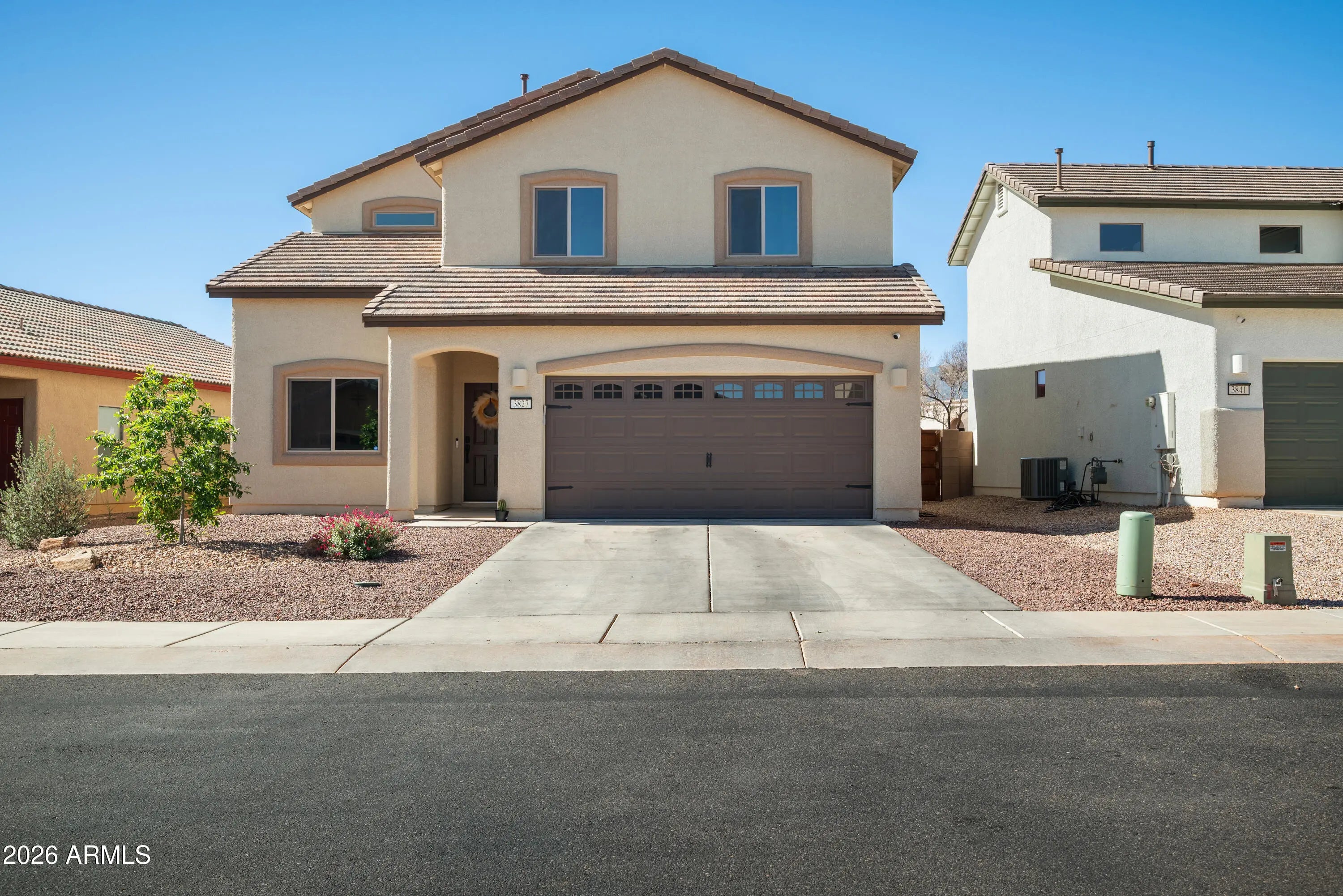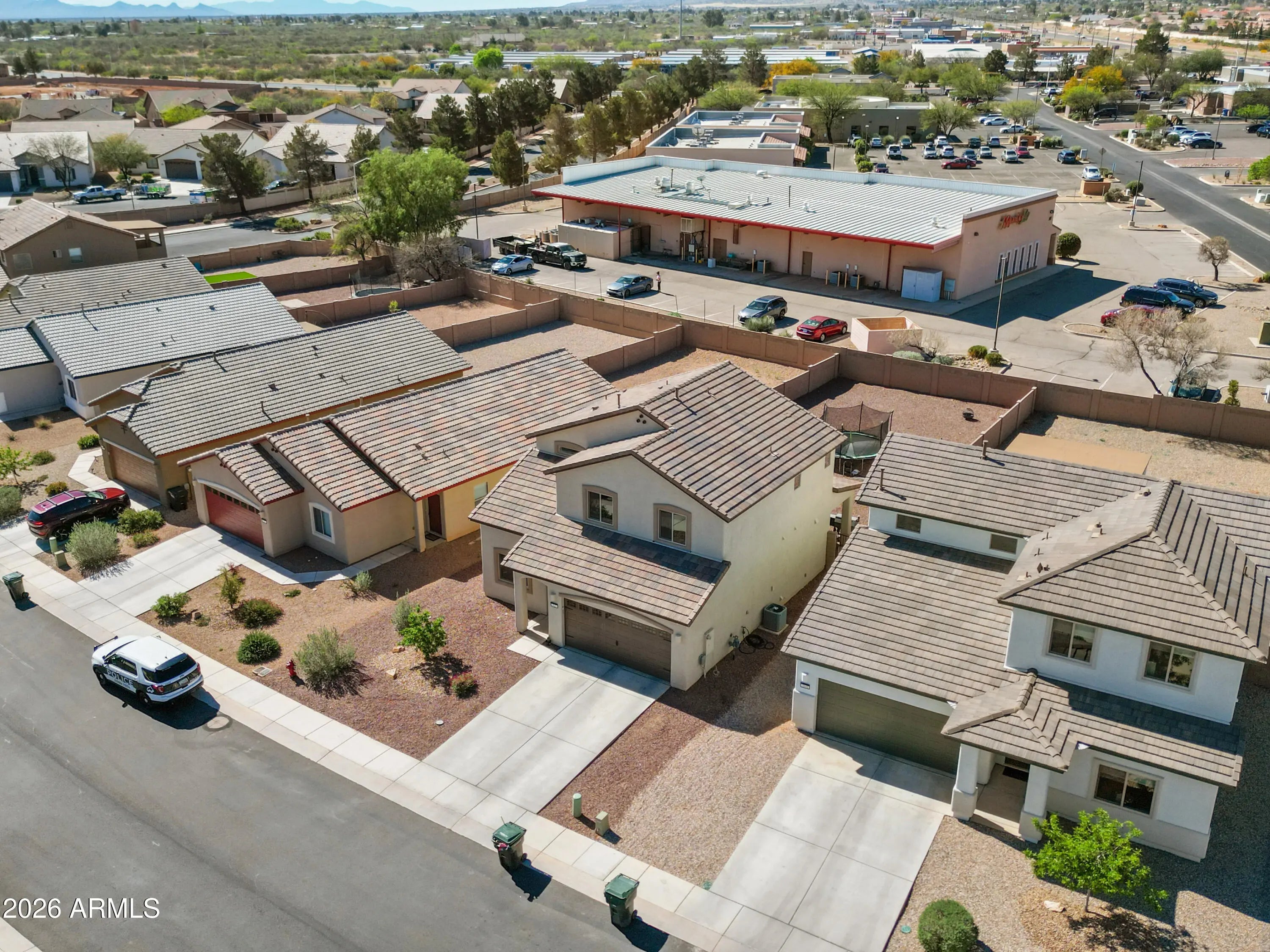 THIS IS IT! Stunning newer construction in the desirable Holiday subdivision of Sierra Vista! Built in 2022, this thoughtfully designed 4-bedroom, 2.5-bath home offers the perfect blend of modern finishes, functional layout, and beautiful mountain views. Step inside to an open-concept living space featuring upgraded tile flooring, abundant natural light, and a stylish, contemporary feel throughout. The kitchen is a true centerpiece with gorgeous granite countertops, white cabinetry, stainless steel appliances, and a spacious island--perfect for entertaining or everyday living. The flexible floor plan includes one bedroom downstairs (no built in closet) that works perfectly as a guest room, home office, or den. Upstairs, you'll find three additional bedrooms including the spacious primary suite, creating a comfortable and private retreat. The living area flows seamlessly to the backyard, where you'll enjoy a low-maintenance landscape and plenty of space to customize or relax while taking in the surrounding mountain views and Arizona sunsets. Additional highlights include a durable tile roof, modern fixtures, and energy-efficient construction. Located in a well-maintained community with access to a pool and clubhouse, this home offers both comfort and convenience just minutes from shopping, dining, and Fort Huachuca. This move-in ready home checks all the boxes--schedule your showing today! Home Starts Here!