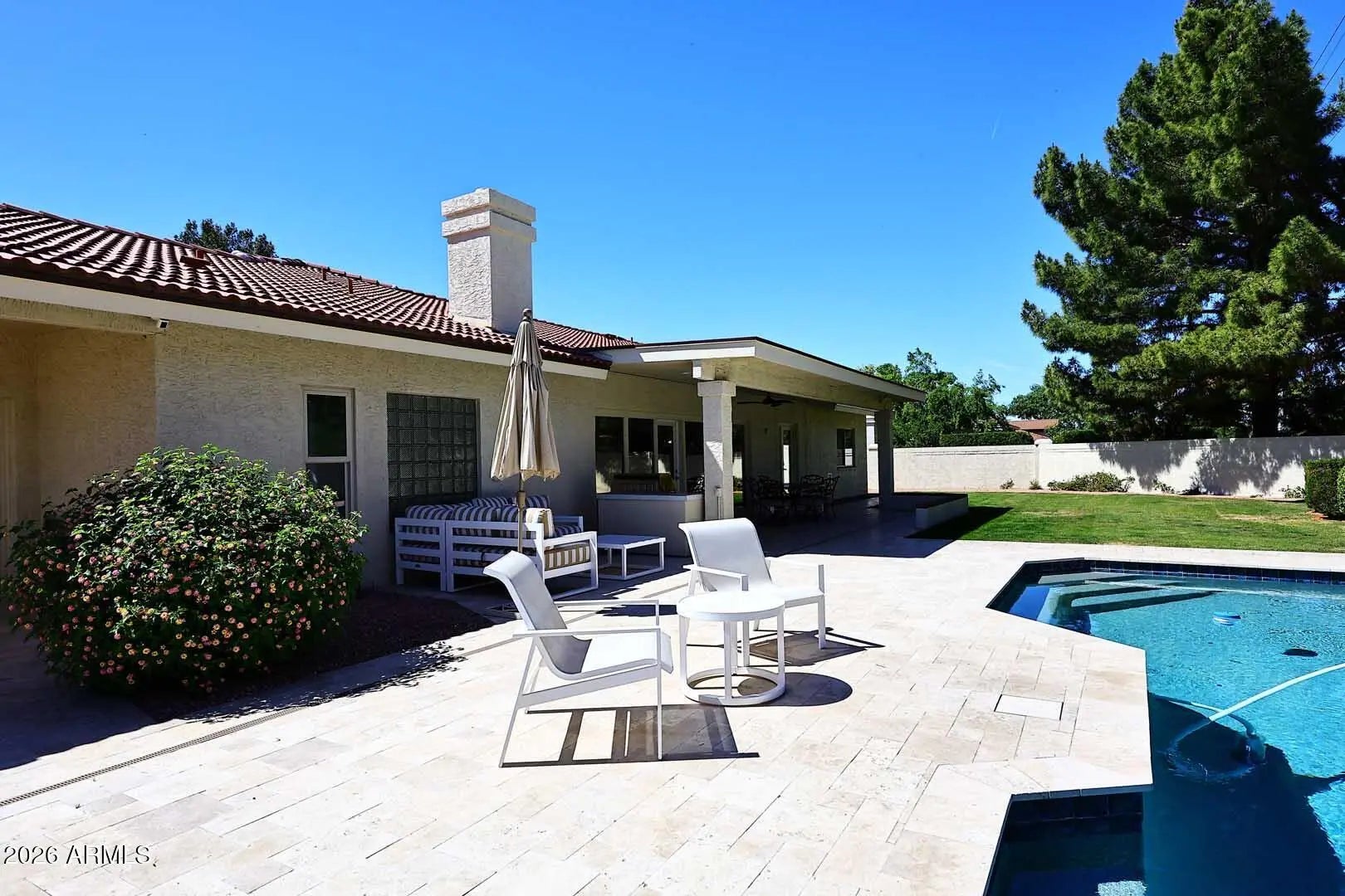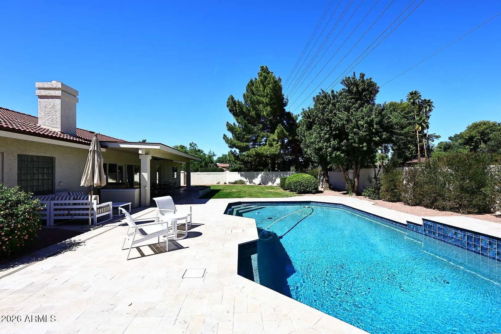 This beauriful home is located in a highly desirable neighborhood of custom homes on large lots with no HOA. It has 5 bedrooms and 3 bathrooms in a spacious split floor plan. There is a formal dining room, living room and family room. Interior features include large tile floors, vaulted and beamed ceilings and a cozy fireplace. The home is in immaculate condition and has been impeccably maintained. Every item in the home has been meticulously cared for and it shows. It has newer paint in and out. There are new stainless steel appliances (range/oven and dishwasher) plus an upgraded GE fridge and front loading washer and dryer. The home has been replumbed with PEX and has fantastic water pressure throughout. The roof is new including the concrete tile shingles and double layer underlayment. The AC is new as is the water heater and soft water system. The back yard is an oasis with a freshly remodeled sparkling pool and an expansive patio with tile throughout. You would think you were in a luxury resort setting. Enjoy summer gatherings and cookouts on the newer gas barbeque island. Lots of grass for your children and puppies to enjoy year round. It has a 3 car extra large garage with an electric car charger, room for a workbench and storage throughout with a wall of garage cabinets. This home is in the highly sought after 85254 zip code. It is close to all shopping along Tatum Rd on the west thru Scottsdale Rd on the east and also close to the freeway system. Come see this move in ready home and enjoy the experience.