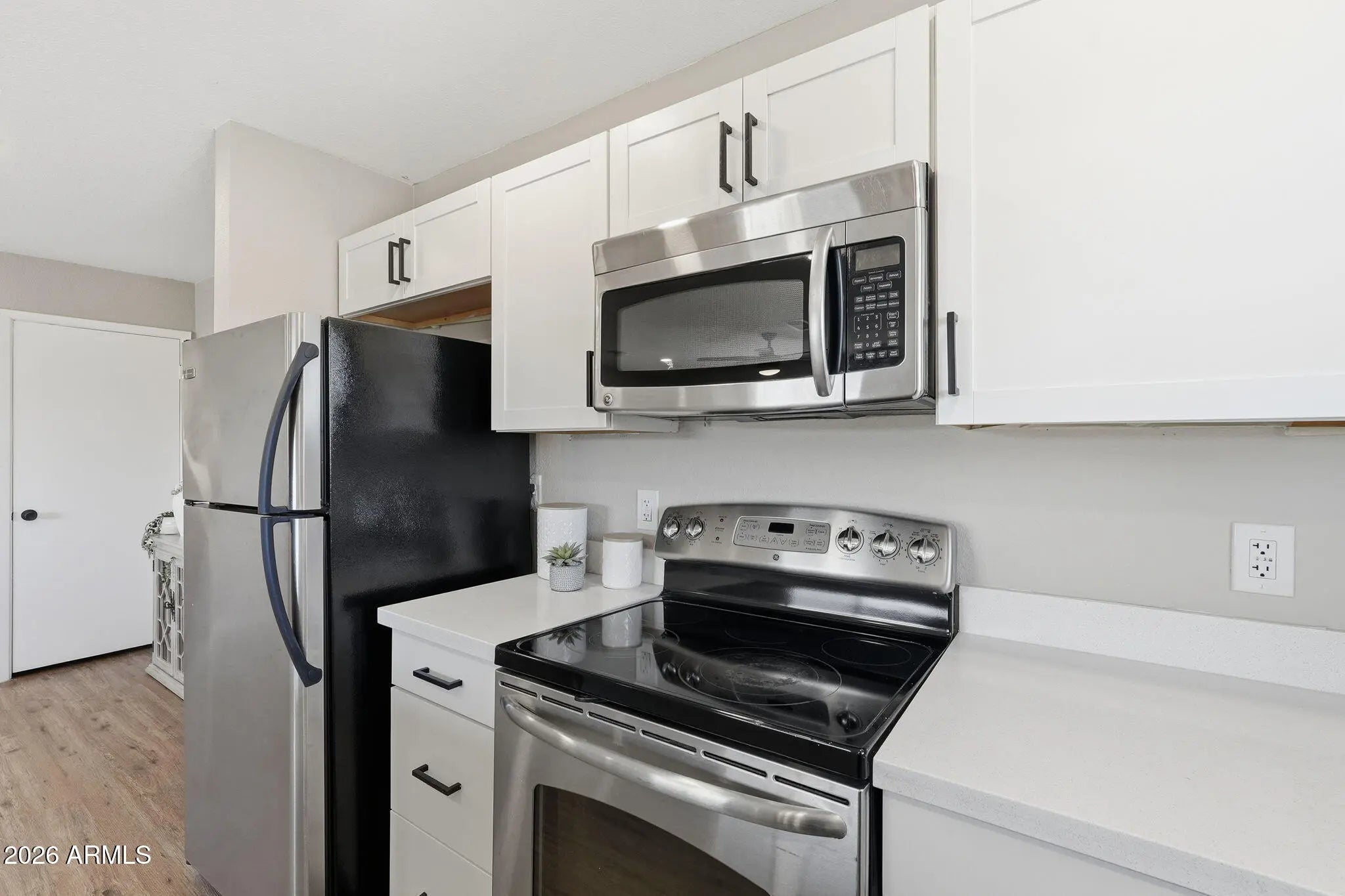 Tucked inside the gated Villa Verde community, this beautifully refreshed 2-bedroom townhome offers the kind of clean, updated look buyers are searching for. From the moment you walk in, the home feels bright and inviting, with a comfortable layout, great natural light, and a crisp, modern finish throughout. The living areas feel open and welcoming, creating an easy everyday flow. The kitchen has been thoughtfully redone with crisp cabinetry, sleek counters, and stainless appliances, giving the space a fresh, current feel. Laundry is conveniently located inside the unit, adding practical function to the long list of upgrades. The gated setting provides a sense of privacy, while the location puts you close to everything. Low maintenance living.