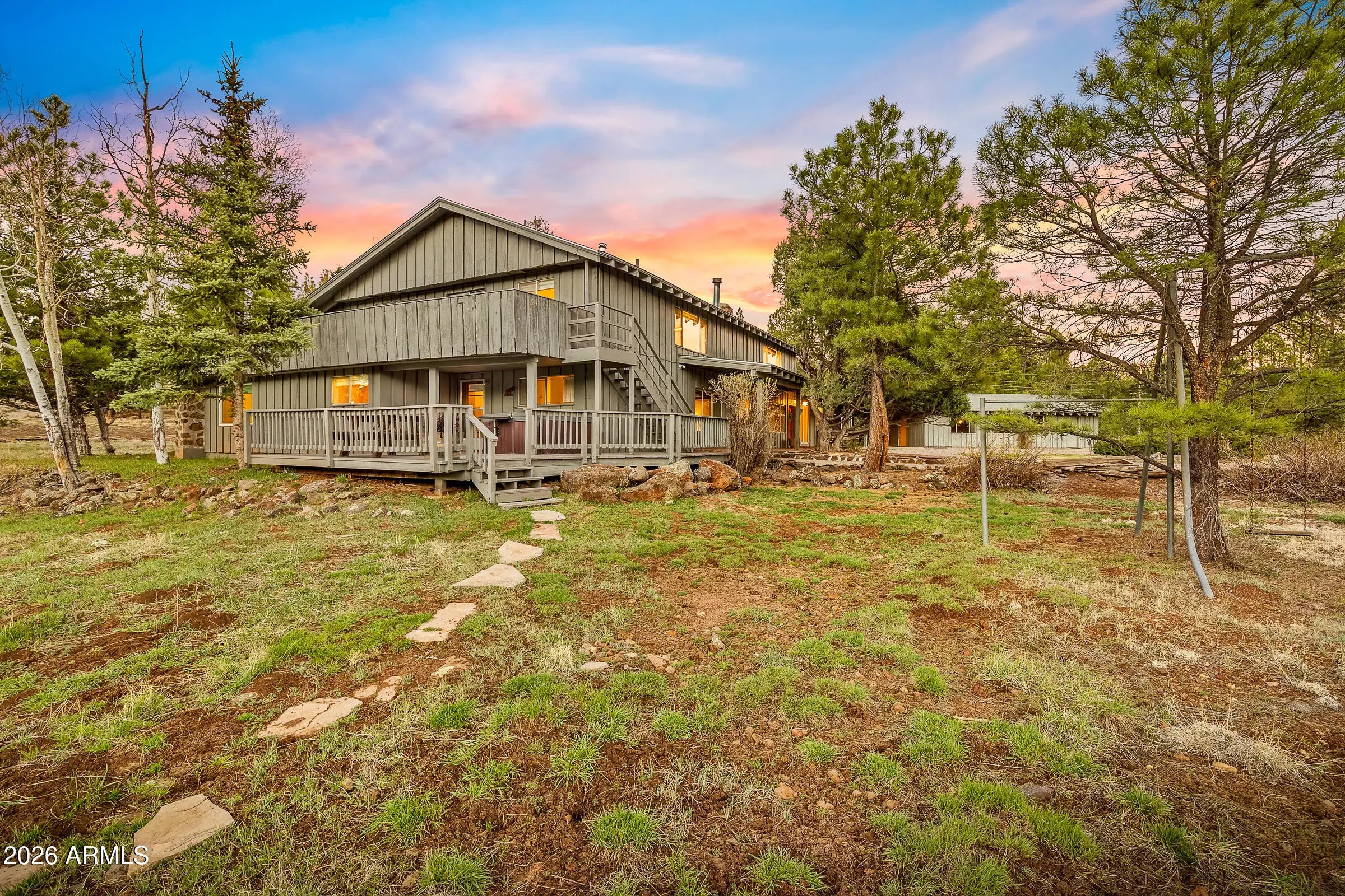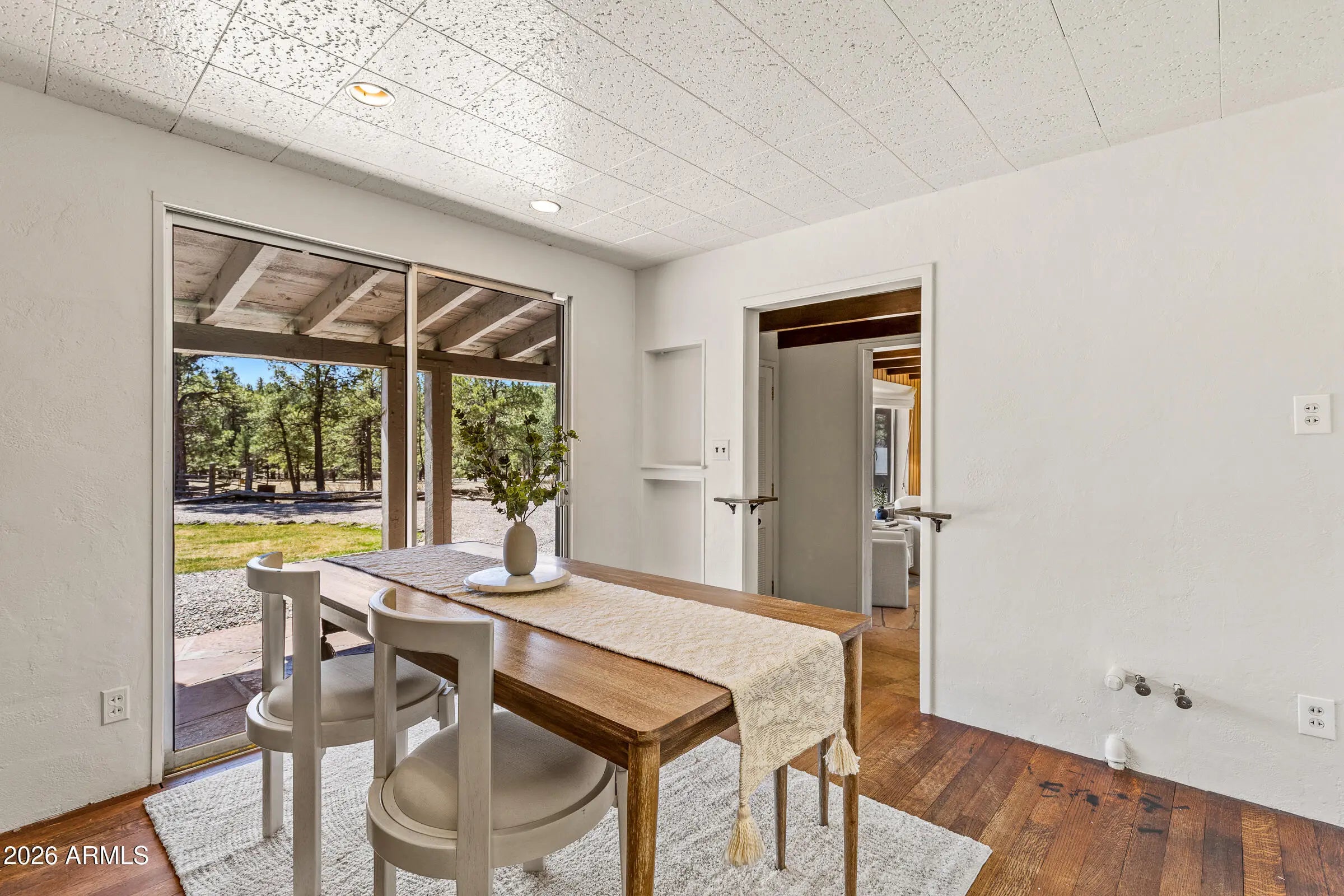 Tucked along iconic Fort Valley Road, this Flagstaff property offers space, setting, and a meaningful connection to the area's past. Originally built and held by the Poore family, the home reflects a time when Fort Valley was defined by open land, community, and long-term ownership. Set on a generous 1.8-acre parcel zoned Estate Residential with mature trees and room to breathe, the property captures true mountain living just minutes from downtown, Snowbowl, and endless trails. A functional layout provides comfortable living today, with opportunity to update or expand over time. Includes a classic barn and is a charming setting along the Rio de Flag with views of the San Fransico Peaks. A rare chance to own a property rooted in Flagstaff's history, ready for its next chapter.