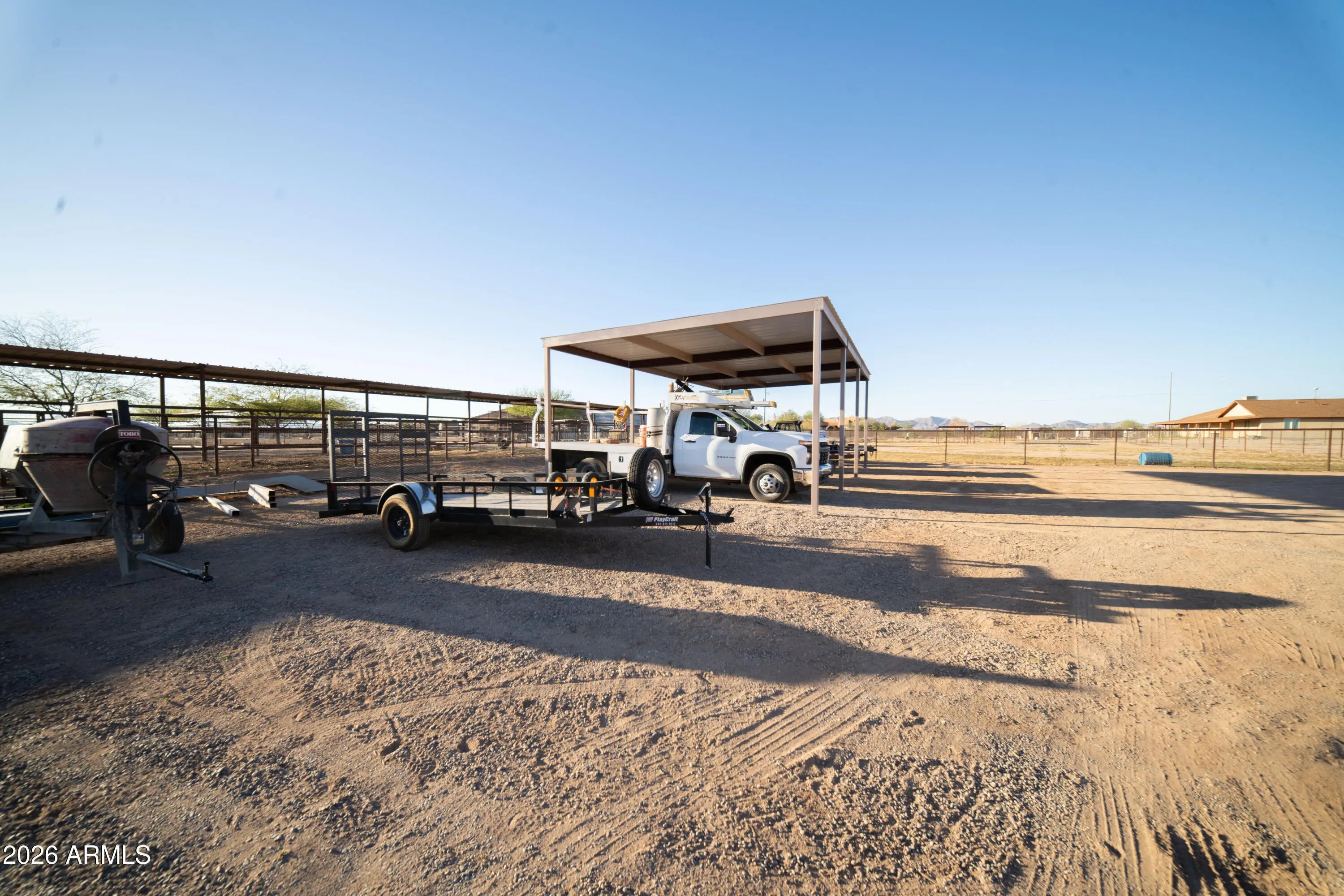 Discover the perfect blend of space, style, and ranch-style living in Tonopah, Az with this stunning 2023 built home which sets on a full 1 acre lot with no HOA. Fully fenced with no-climb fencing and for added convenience a private electric gate, this 2,100 sq ft horse property offers privacy and flexibility to fit your lifestyle. Enjoy a bright open concept layout, 3 spacious bedrooms plus a flexible bonus room, and a serene primary suite with a walk-in closet. Outdoors, a custom 4 car shaded structure and additional covered space in the backyard create endless options for animals, hobbies, or entertaining. A charming paver entry and front porch welcomes you home, while the 2 car garage adds everyday convenience. Space, Comfort, and opportunity all in one exceptional property.