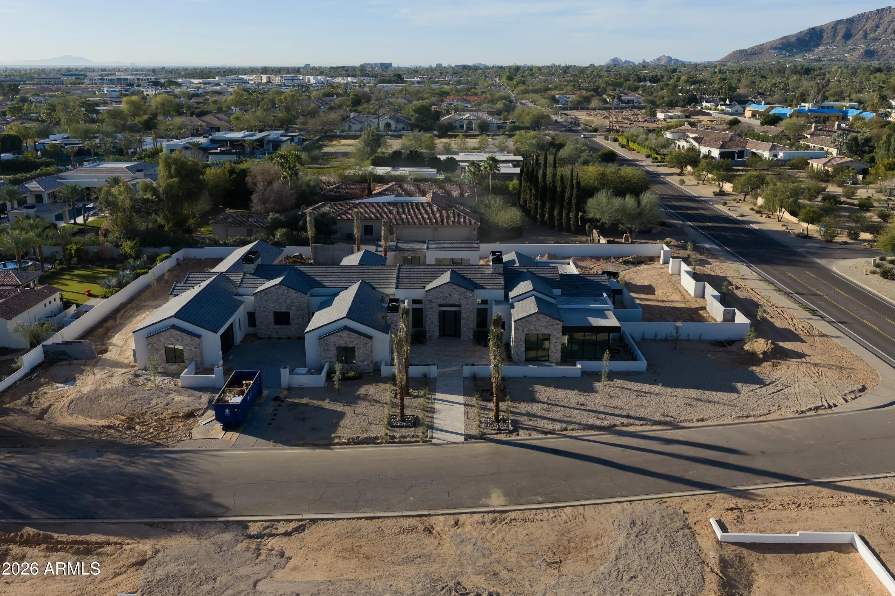 Welcome to 7301 N Mockingbird Ln. A 9,052 sq ft new build on over an acre in Paradise Valley. Completion May 2026. Set on over an acre this custom estate blends modern scale with natural materials. The floor plan is designed for grand-scale entertaining and comfortable daily living. The main area features a sprawling great room that flows into a morning room and formal dining space. The chef's kitchen is equipped with dual islands, a walk-in pantry, and a fully outfitted butler's pantry. A custom bar and private game room provide additional spaces for hosting. The estate offers five bedrooms and five full bathrooms, plus powder and pool baths in the main home plus a detached guest home with an additional full bedroom and bathroom. The primary suite is a private sanctuary with a firep and expansive walk-in closet. Guests are accommodated in a detached wing featuring a living room, full bathroom, and bedroom suite. Outside, the 48,302-square-foot lot maximizes the Arizona lifestyle. The resort-style backyard centers around a large pool and spa, complemented by a custom ramada and a full outdoor kitchen. The property includes dual two-car garages connected by a beautiful privately gated motor-court.