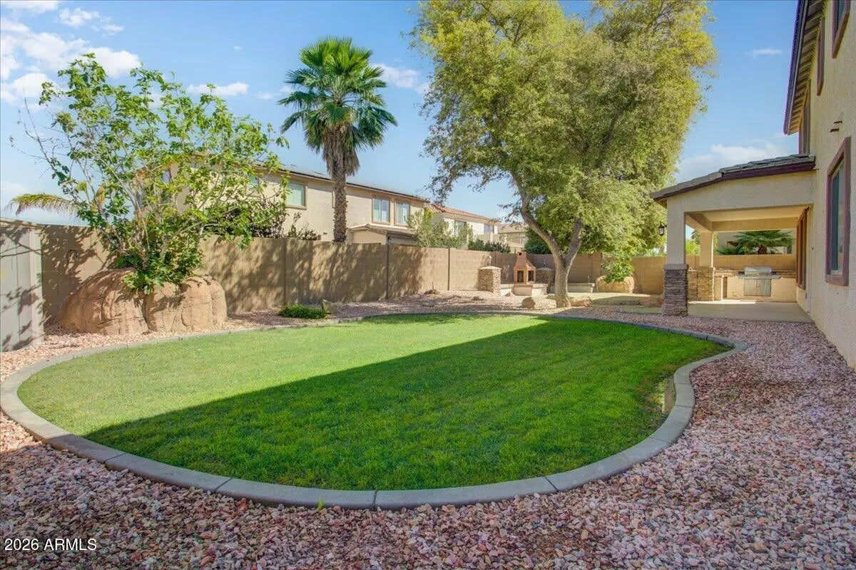 Welcome to this stunning 4-bedroom, 4.5-bathroom home in Marbella Vineyards offering perfect blend of comfort, and convenience. The spacious and inviting living areas feature soaring ceilings and stacked stone features creating a warm and airy ambiance throughout the home. The formal dining room and charming courtyard are perfect for entertaining and creating lasting memories with friends and family. A versatile office space is ideal for those who work from home or need a quiet place to focus. The heart of the home is the well-appointed kitchen, complete with pantry, ample storage space, and center island. The kitchen overlooks both the cozy den and large family room. Upstairs, you'll discover a large loft with built in desk perfect for work, study, or hobbies. The primary suite boasts a large sitting area, his & hers walk-in closets, and a luxurious ensuite bathroom with dual sinks, a soaking tub, and a separate shower providing the perfect oasis. Low maintenance backyard featuring built-in grill and fireplace--perfect for relaxing or entertaining. Children's playground located at the end of the street and near Chandler Regional Park with pickleball, tennis, splash pad, basketball and more.