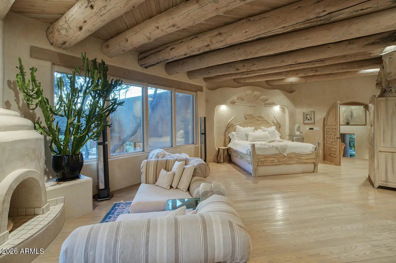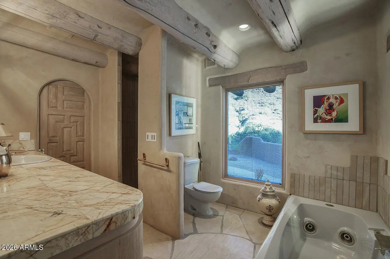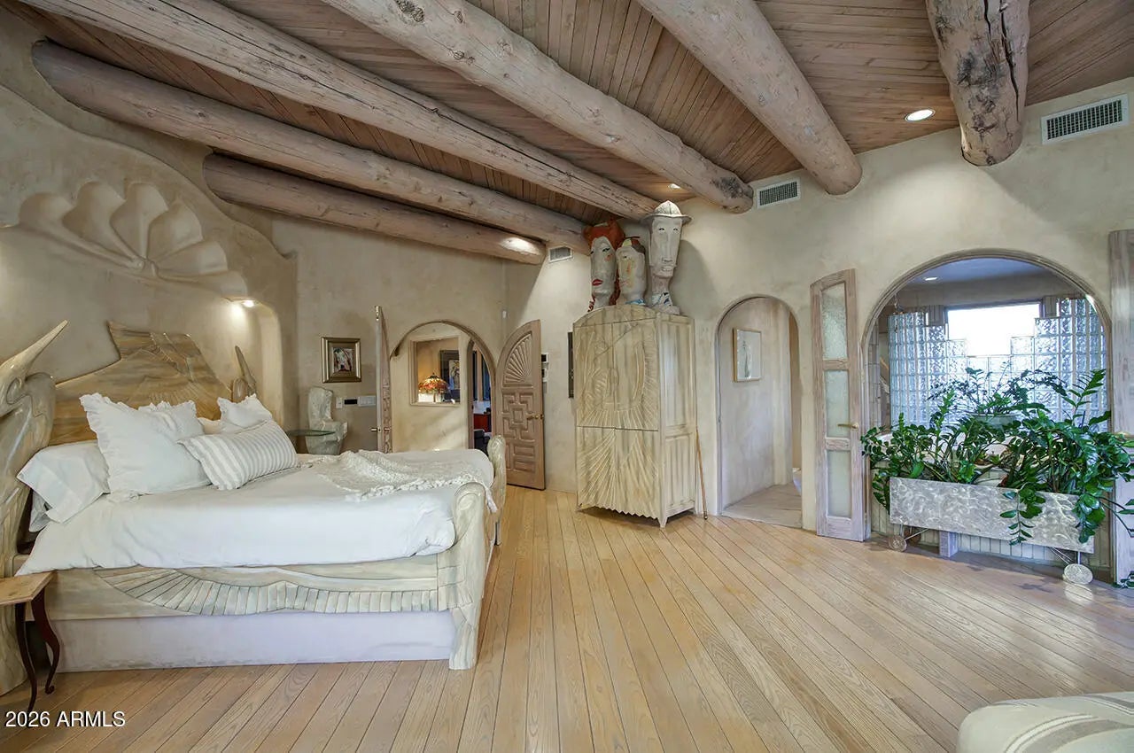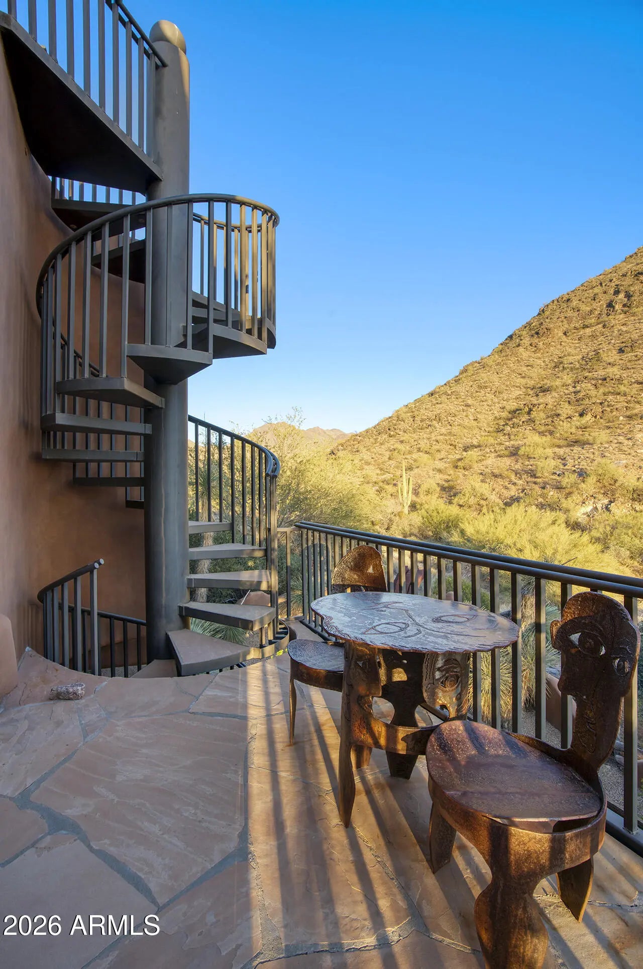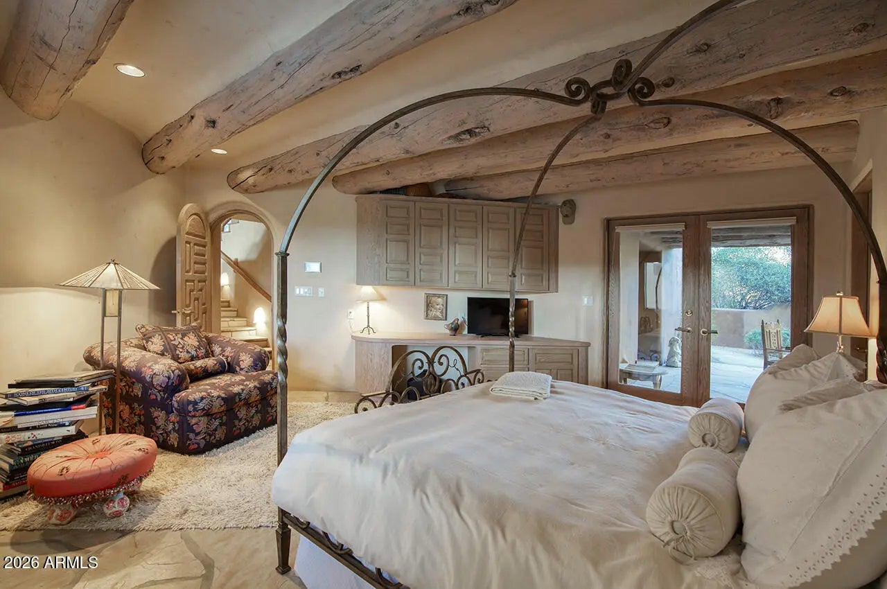 Tucked within the esteemed custom-home community of Pinnacle Peak Heights, Desert Tears is a truly extraordinary gated estate set on nearly seven acres at the base of the McDowell Mountains, where the land rises into one of the area's peaks and captures sweeping panoramic city-light views and the beauty of the Sonoran Desert. Rich with character and timeless charm, this one-of-a-kind residence is defined by artisan craftsmanship and distinctive architectural details throughout. Its name, Desert Tears, offers a subtle nod to the beauty and stillness of the desert landscape that inspired its creation. Thoughtfully designed for both elevated entertaining and comfortable everyday living, the home offers a desirable and dynamic layout. The primary suite is privately situated on the upper level opening to breathtaking valley, city-light, and mountain views--creating a serene retreat that feels both elevated and connected to the surrounding landscape. Two additional en-suite bedrooms are located on the main level, along with a separate guest house on the property, providing ideal accommodations for family and guests. At the heart of the home, a truly exceptional commercial-grade kitchen caters to the culinary enthusiast, featuring top-tier Montague appliances, infrared gas broilers, a French hot top with wok ring, six-burner configuration, and three ovens. A striking horseshoe bar seamlessly connects the kitchen and main living spaces, enhancing the home's natural flow and creating an inviting environment for gathering and entertaining. A 1,000-bottle temperature-controlled wine cellar further elevates the experience. Seamless indoor-outdoor living is showcased through a beautiful Arizona room that opens to expansive desert and city views beyond. Throughout the home, richly layered finishes include custom beamed ceilings, domed brickwork, and extensive stone elements--remarkably sourced directly from the property itself--creating an authentic connection to the surrounding McDowell Mountain terrain. The grounds are equally captivating, featuring seven fireplaces, two fire pits, and a stunning heated all-tile pool and spa designed for both relaxation and recreation. The approximately 9.5-foot diving pool is complemented by a sculptural, custom-designed diving feature, while an intriguing fire feature at the entry gate creates a dramatic and memorable arrival. A sunken, lighted tennis court--recently refurbished and thoughtfully designed for both tennis and pickleball--adds to the estate's exceptional recreational offerings. Car enthusiasts will appreciate the impressive 13-car garage capacity, highlighted by a show-stopping nine-car showcase garage complete with a modular kitchen and extensive storage, creating a truly unique space for display, entertaining, and functionality. Private, distinctive, and masterfully crafted, Desert Tears is a rare Scottsdale estate that blends architectural soul, natural beauty, and exceptional livability into an offering of uncommon significance.