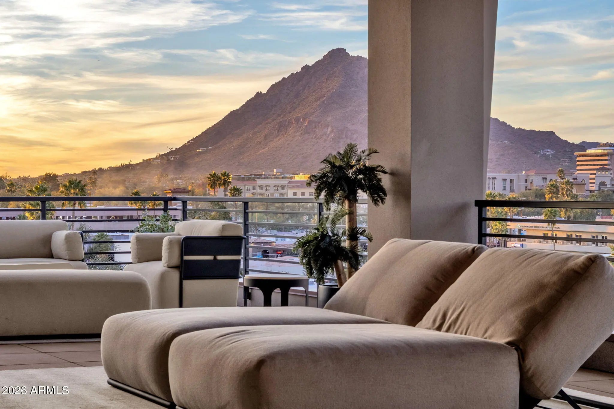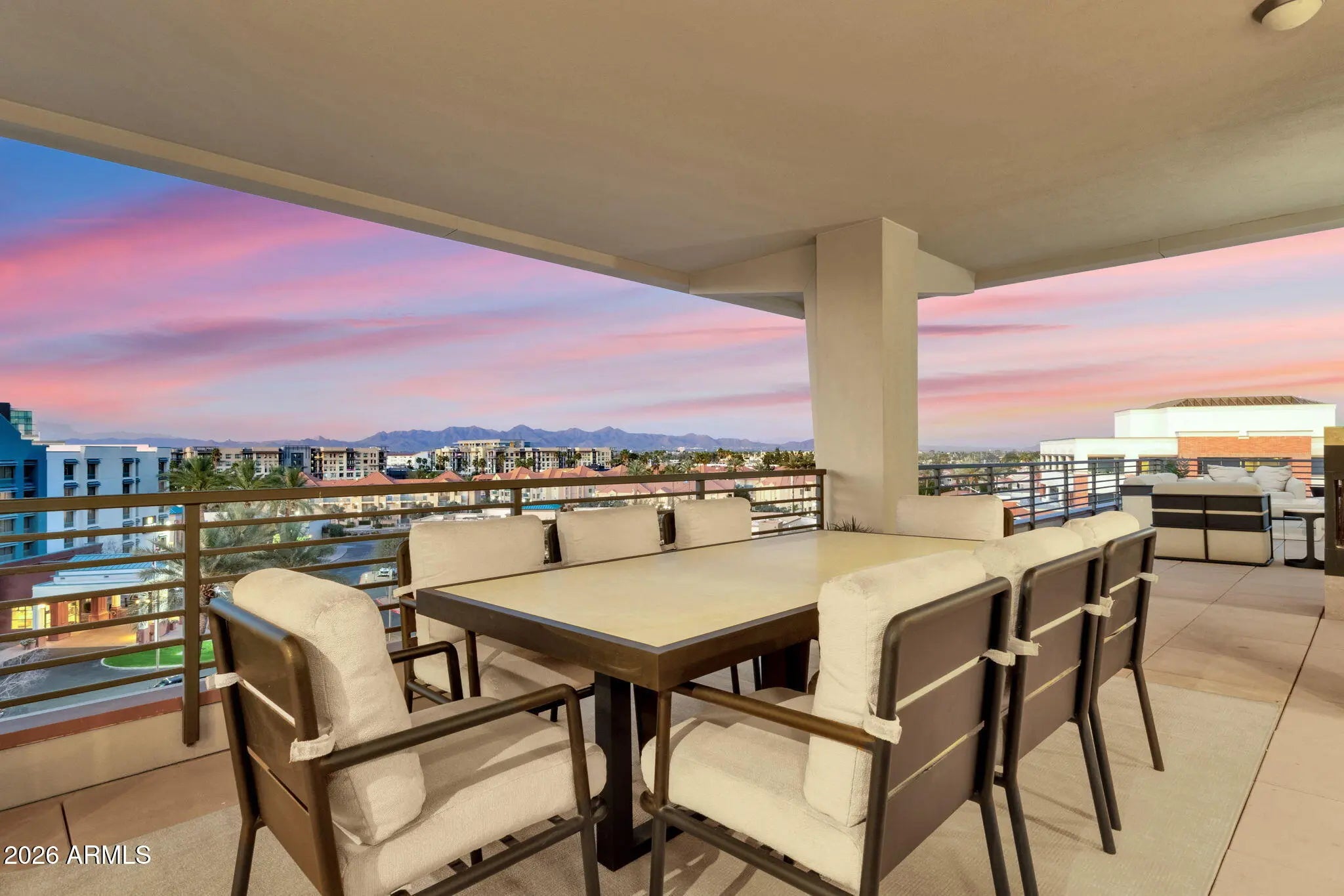 Rare 8.5-car garage, private elevator, and unobstructed Camelback Mountain views set this one-of-a-kind Old Town Scottsdale Penthouse apart, offering over 6,400 sq ft of luxury living. Floor-to-ceiling glass frames the views, creating a dramatic backdrop throughout. The garage includes a private enclosed 2.5-car space plus 6 adjacent secured spaces--ideal for collectors. Designed for elevated living and entertaining, the residence features an open chef's kitchen, Viking appliances, and a butler's pantry with private entrance. Nearly 2,900 sq ft north-facing terrace--the largest in Old Town--creates seamless indoor-outdoor living, with concrete and steel construction, full concierge service, resort-style pool, spa, and gym. Walk to Fashion Square, top restaurants, and night life in minutes