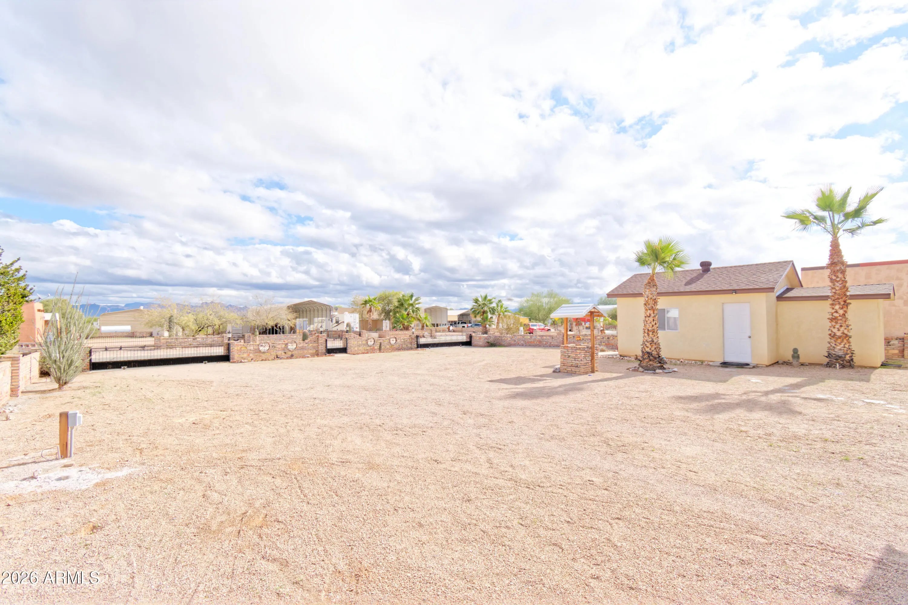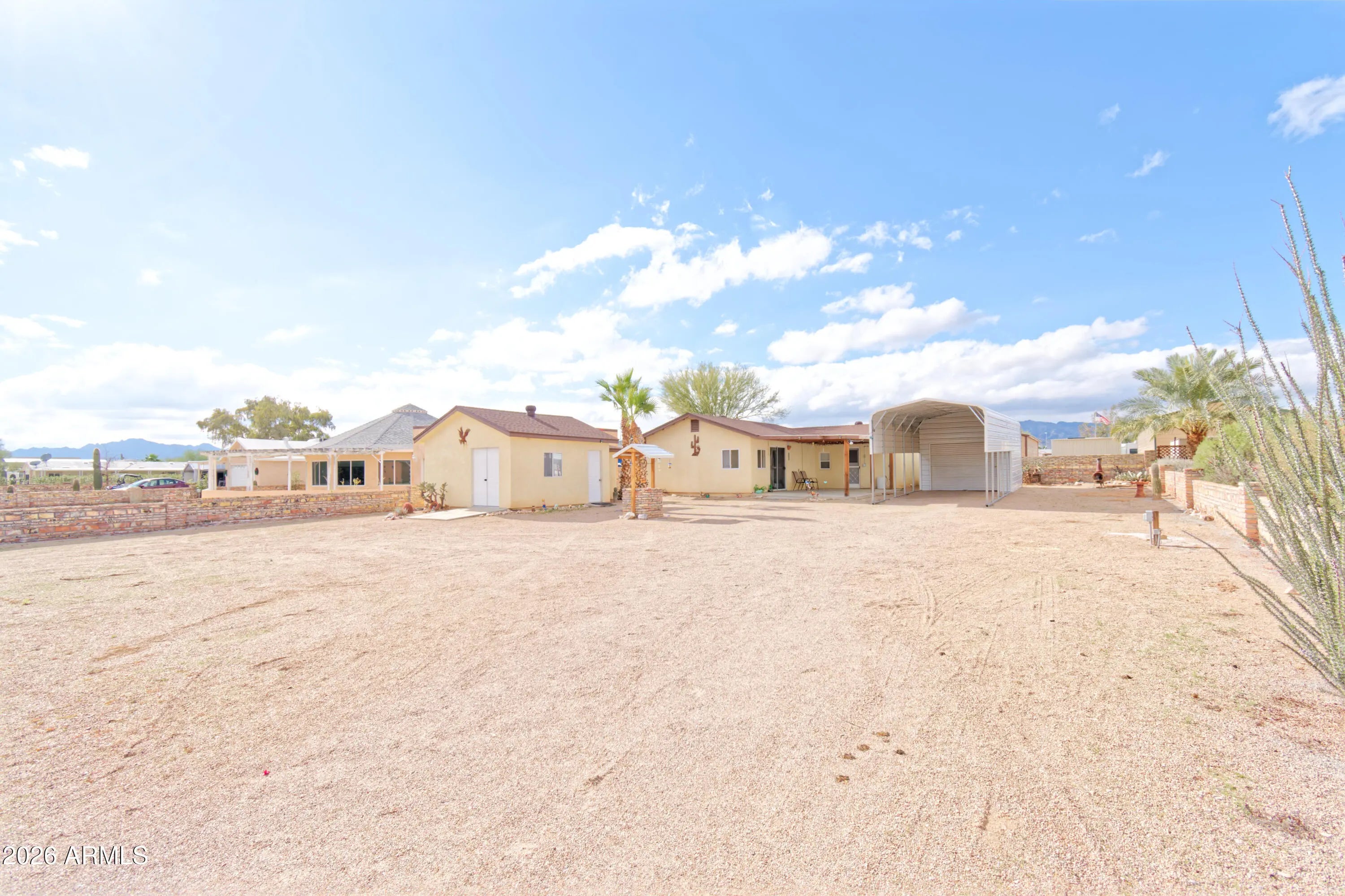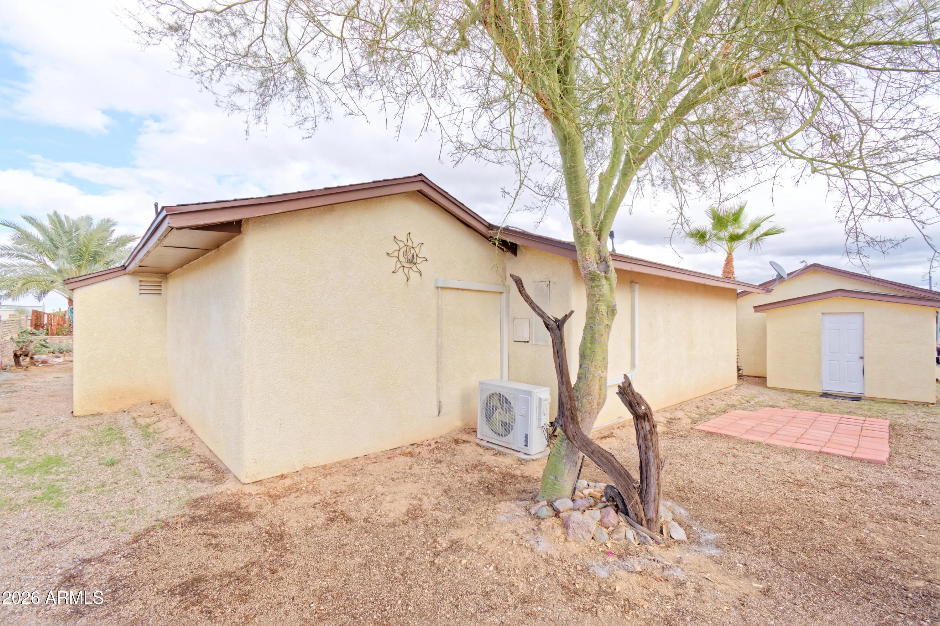 Turn-Key Desert Retreat in Rainbow Acres - Workshop, Casita & RV-Ready! Experience the ultimate Quartzsite adventure in this beautifully refreshed 1BR/1BA stucco home, perfectly situated in the sought-after Rainbow Acres community. Featuring brand-new luxury vinyl plank (LVP) flooring and a crisp interior paint palette, this residence offers a modern, clean slate for your seasonal or year-round living. The main home is designed for comfort and efficiency with energy-saving mini-split systems throughout and a walk-in closet with an adjacent utility room for all your storage needs. All major appliances are included--refrigerator, stove, washer, and dryer--plus additional mini-fridges for convenience. Your guests will love the fully decorated detached casita, complete with its own full bath.