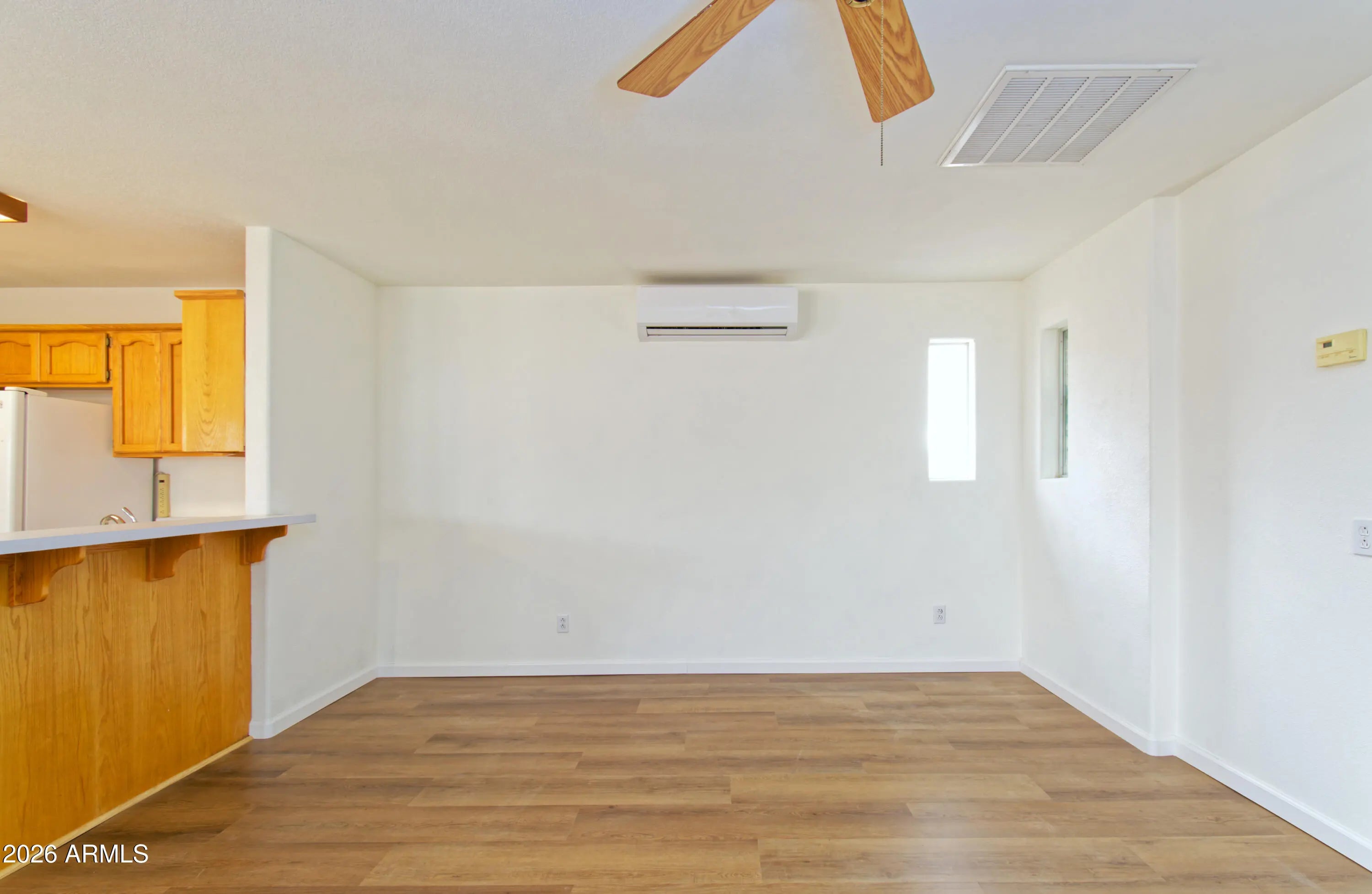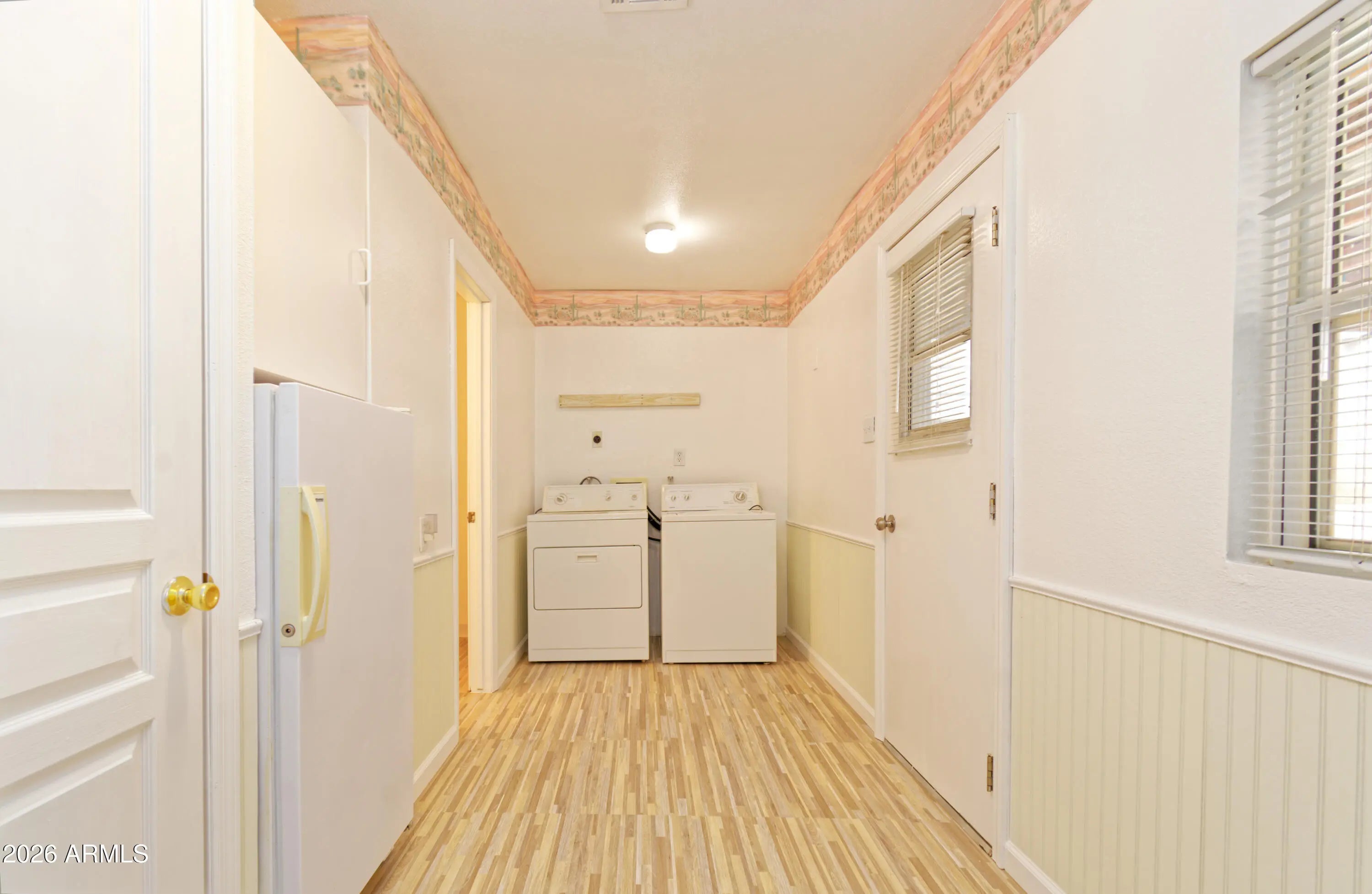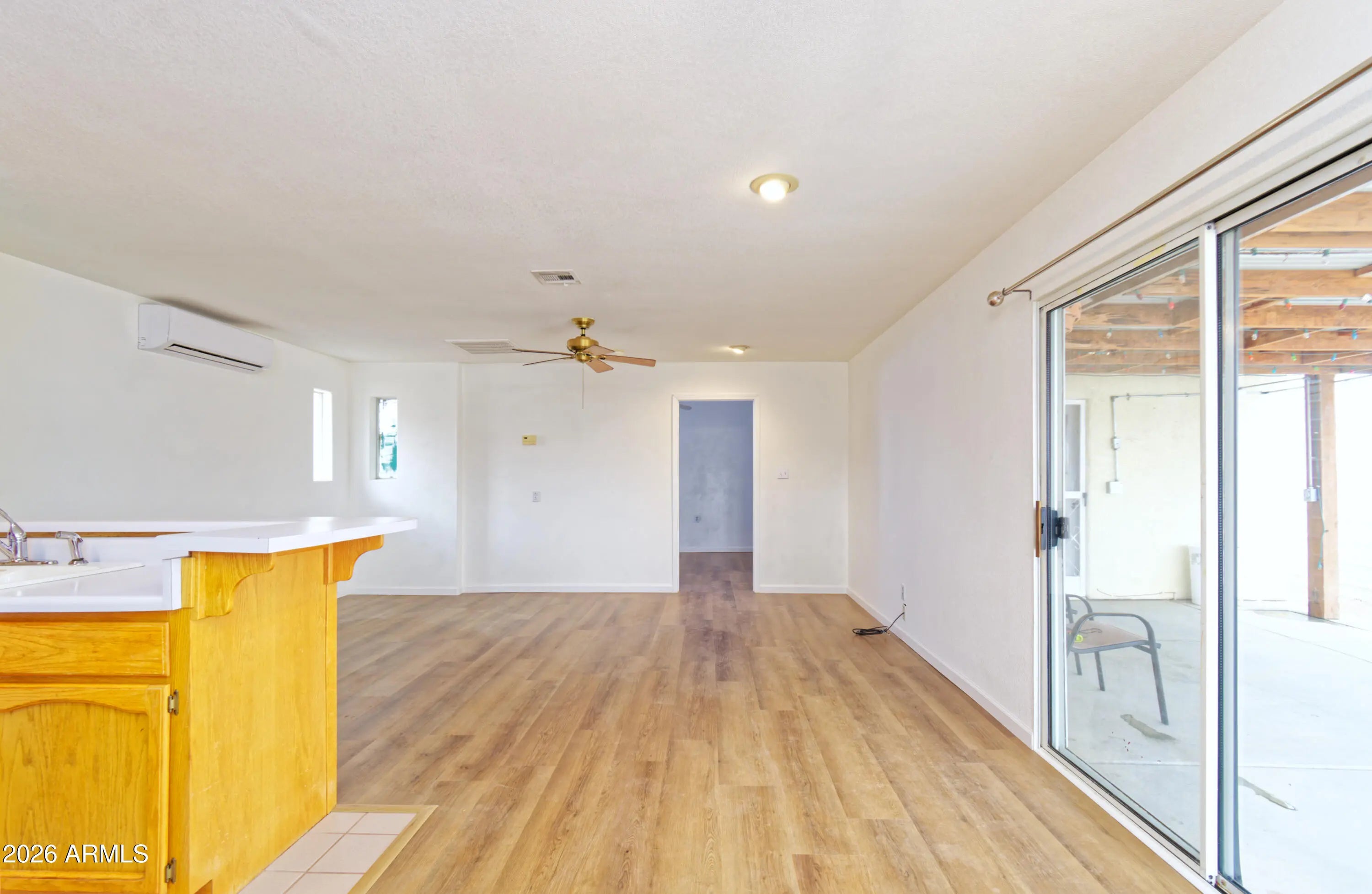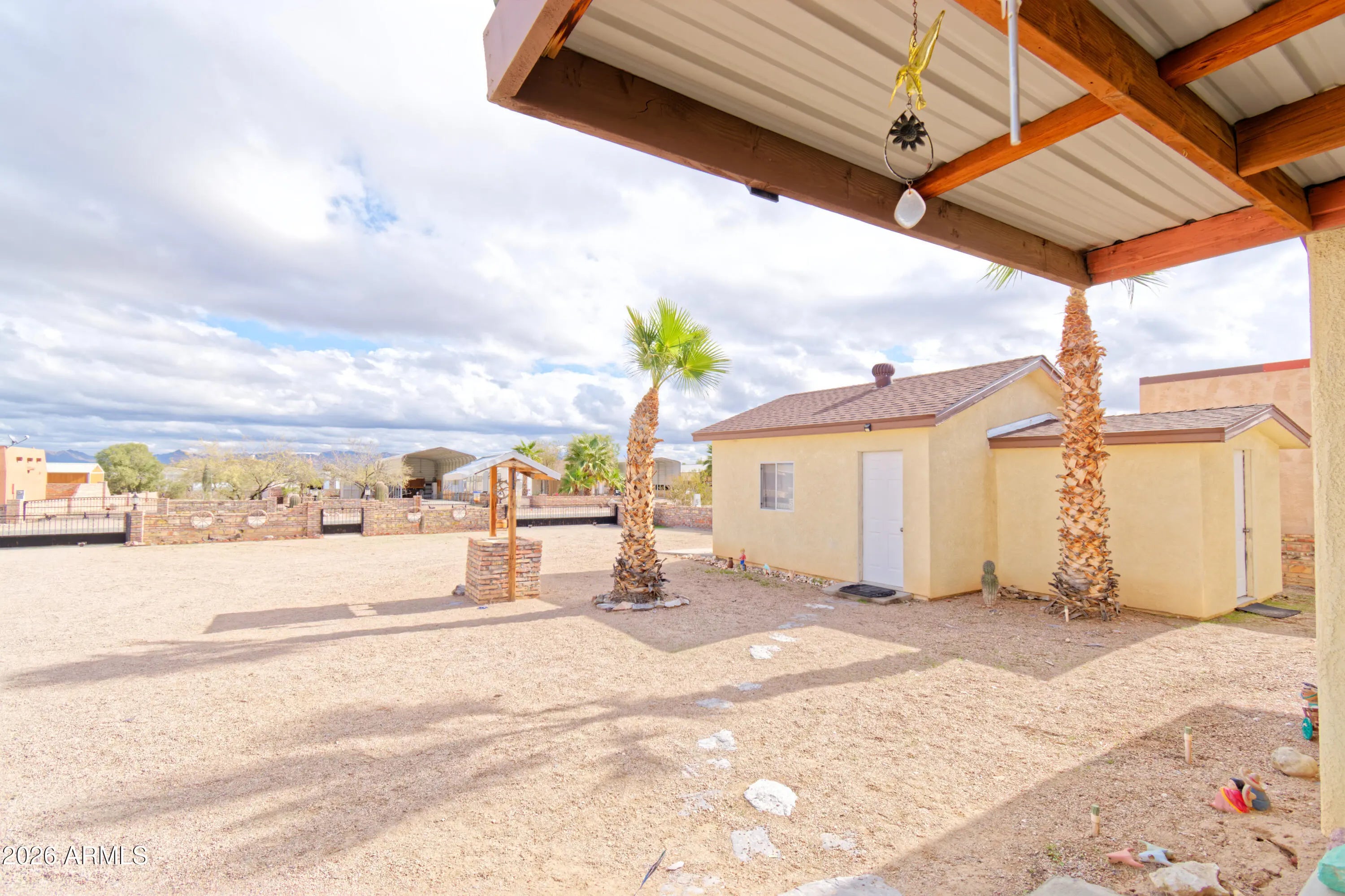 Turn-Key Desert Retreat in Rainbow Acres - Workshop, Casita & RV-Ready! Experience the ultimate Quartzsite adventure in this beautifully refreshed 1BR/1BA stucco home, perfectly situated in the sought-after Rainbow Acres community. Featuring brand-new luxury vinyl plank (LVP) flooring and a crisp interior paint palette, this residence offers a modern, clean slate for your seasonal or year-round living. The main home is designed for comfort and efficiency with energy-saving mini-split systems throughout and a walk-in closet with an adjacent utility room for all your storage needs. All major appliances are included--refrigerator, stove, washer, and dryer--plus additional mini-fridges for convenience. Your guests will love the fully decorated detached casita, complete with its own full bath.