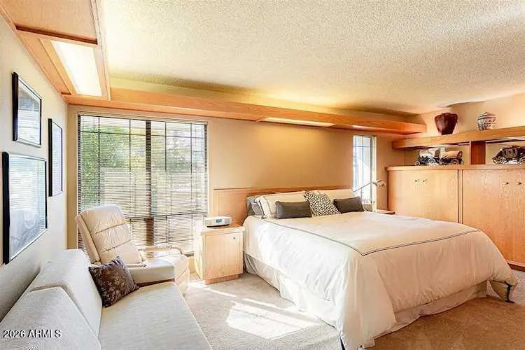 A wonderful opportunity to rent A TRUE PIECE OF HISTORY FOR A FRANK LLOYD WRIGHT ENTHUSIAST * THE INTERIOR OF THIS UNIT WAS DESIGNED BY JOHN HOWE, FLW'S MAIN DRAFTSMAN OF 32 YEARS who drew Falling Water & Guggenheim Museum * This unit has many custom pieces of solid oak furniture and drop down ceiling detail. The Cloisters offers an incredible Biltmore lifestyle * located adjacent to the Biltmore Fashion Park with pedestrian gates leading to shopping, dining and more * 2 community pools * tennis courts * lush grounds * The Cloisters also sits within A.B.E.V.A. (Arizona Biltmore Estates Association) which includes the Biltmore's security patrol.