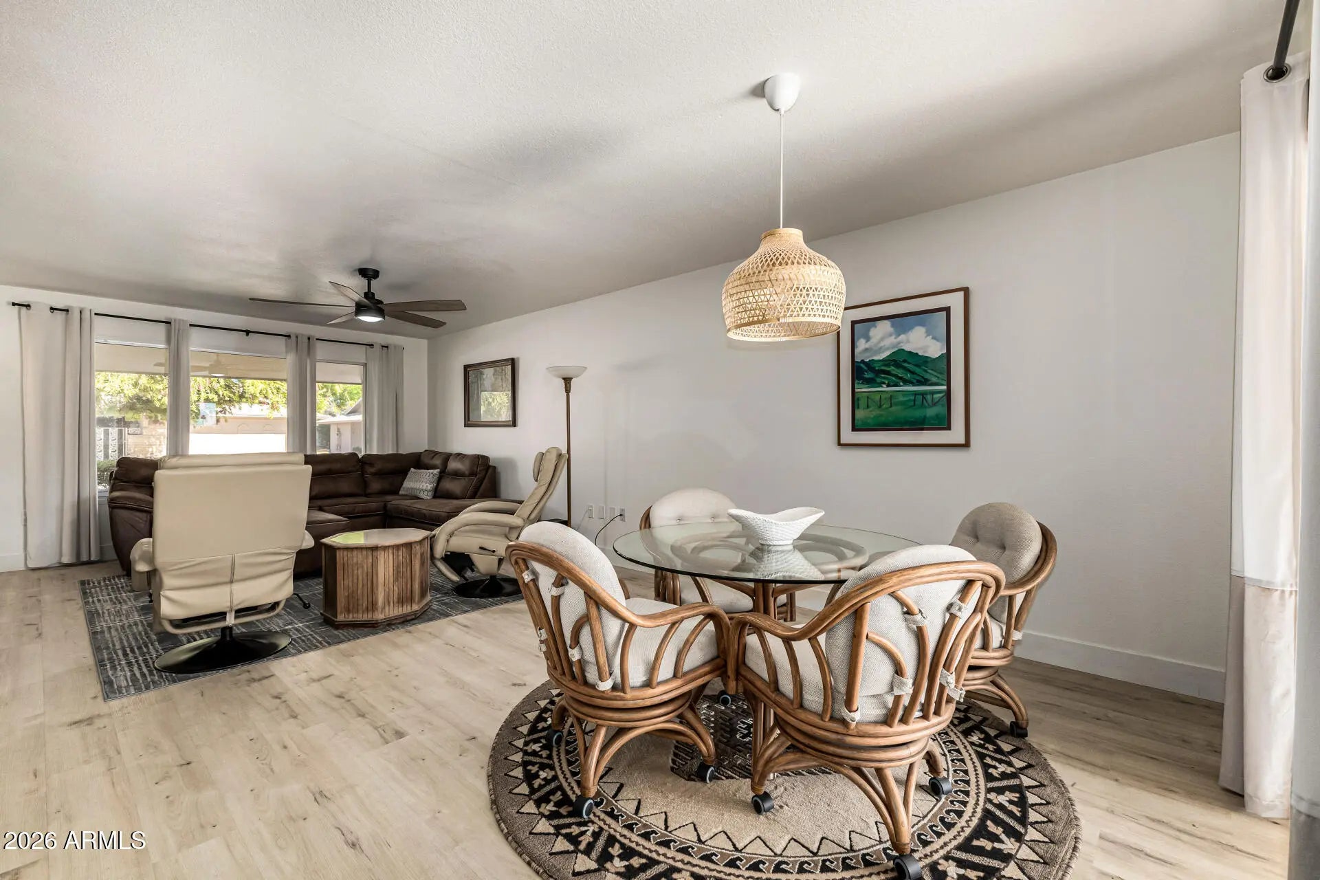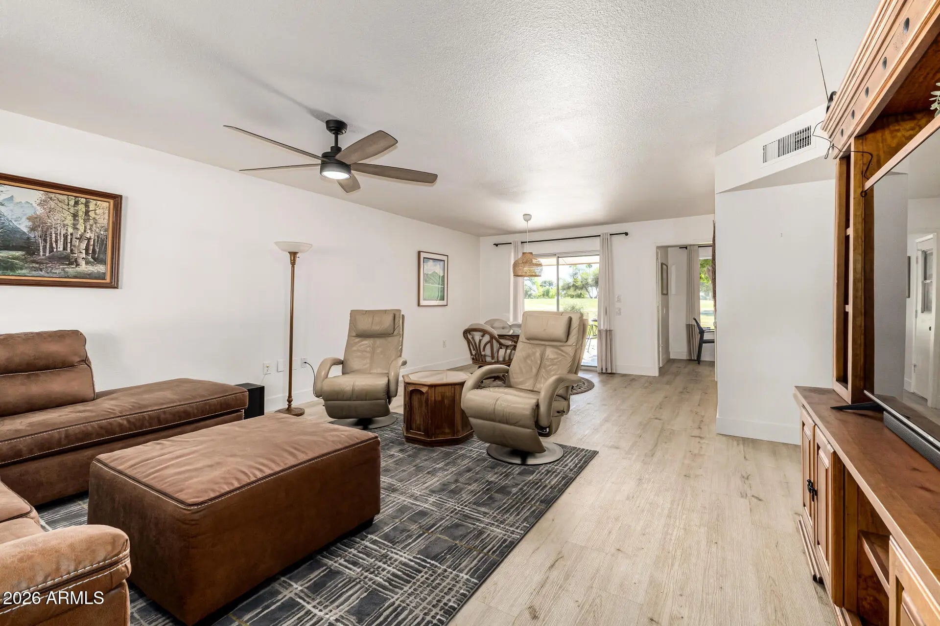 Fully remodeled golf course home with breathtaking fairway views in Sun City's Phase 3 active adult community. This move-in ready property features modern flooring, a beautifully updated kitchen with quartz countertops, and refreshed bathrooms throughout. The open layout offers comfortable living and seamless entertaining. Step outside to a covered patio perfectly positioned to enjoy stunning Arizona sunsets. Offered fully furnished, this home is ideal as a full-time residence or lock-and-leave retreat. Enjoy resort-style amenities including golf, pools, fitness centers, and an active social lifestyle.