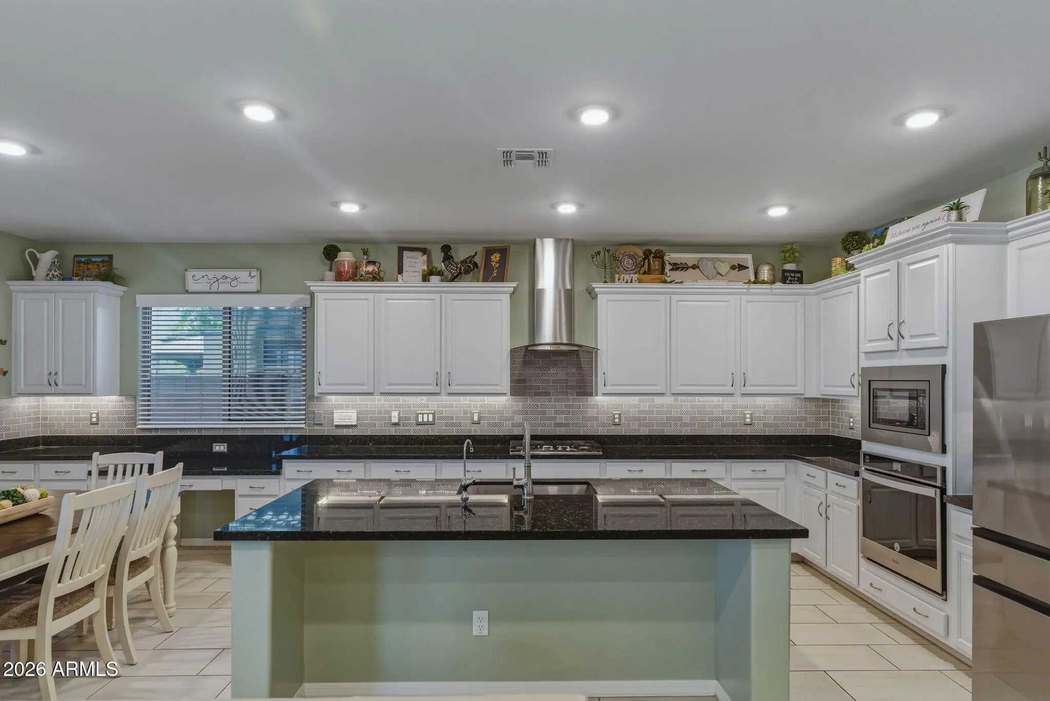 *SPACIOUS GREATROOM FLOORPLAN W/SPLIT MASTER* LOADED WITH FEATURES: TILE FLOORING, OPEN KITCHEN WITH BIG ISLAND & BAR, WHITE RAISED PANEL CABINETRY W/SATIN NICKEL PULLS & ACCENT TILE BACKSPLASH, STAINLESS APPLIANCES INCLUDING WALL OVEN AND GAS RANGE (FRIDGE STAYS TOO), GRANITE C/TOPS, INSIDE LAUNDRY ROOM W/STORAGE, CEILING FANS, SPEAKER PRE-WIRES, WINDOW TREATMENTS, 8-FOOT DOORS THROUGHOUT, SECURITY SCREEN DOOR, SIDE GARAGE SERVICE DOOR, DUAL SINKS IN GUEST BATHROOM, WALK-IN CLOSETS FOR EACH BEDROOM, MASTER BATH WITH SEPARATE TUB/SHOWER (TILED) AND MULTIPLE VANITIES. INSTANT CURB APPEAL W/BRICK VENEER & COACH LIGHTING PLUS LARGE COVERED PATIO OUT BACK W/FAN & GAS STUB. LOCATED NOT FAR FROM NEW RESTAURANTS, SHOPPING & LOOP 303 FREEWAY CORRIDOR. + WHITE TANK MOUNTAIN HIKING & TRAILS. KINETICO WATER SOFTENER/SYSTEM AND TANKLESS WATER HEATER.
