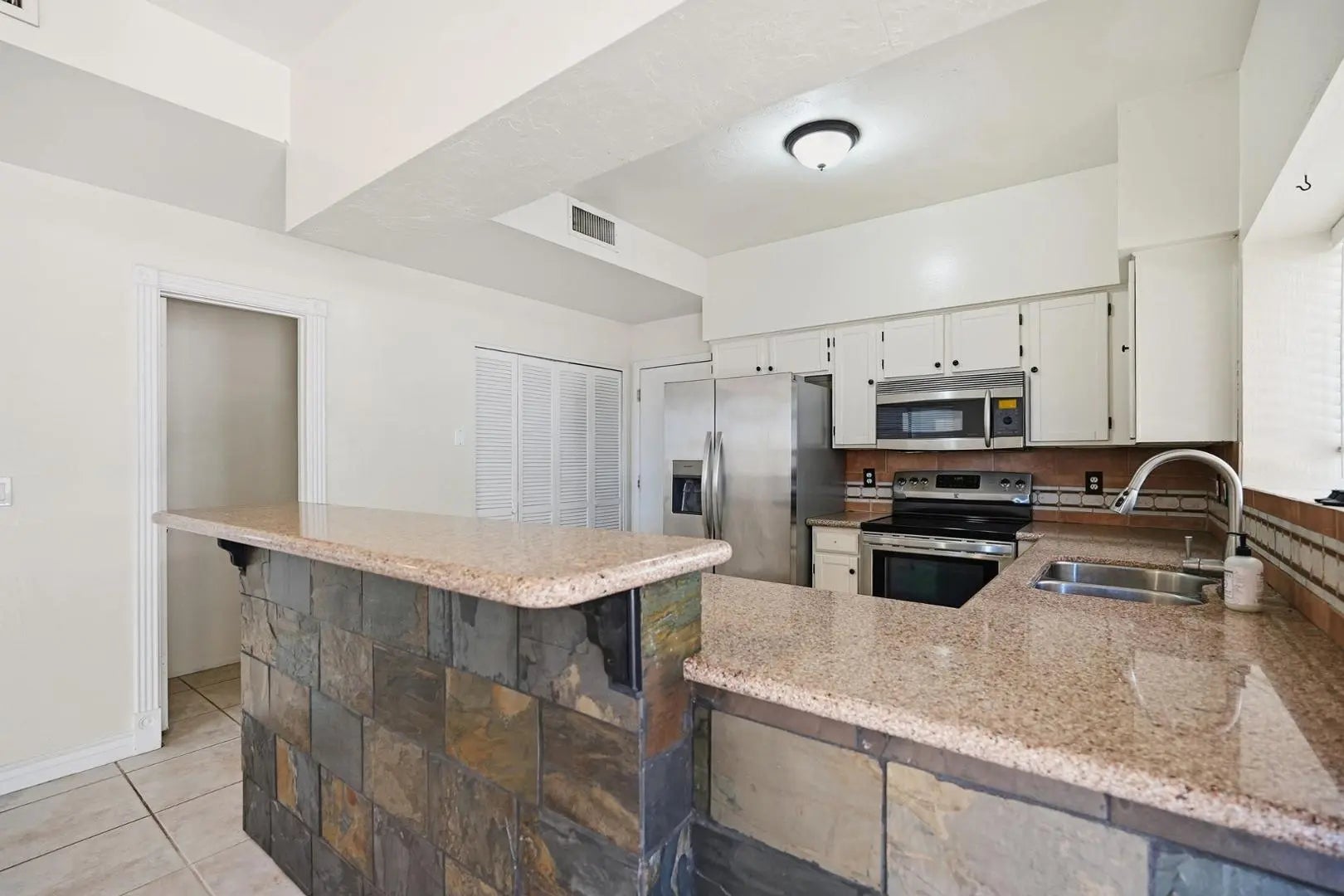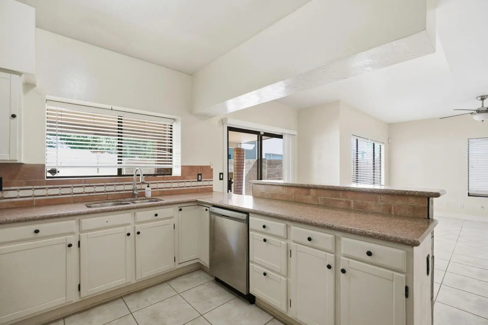 Great rental home located in charming, Gilbert neighborhood w/community pool. Dramatic vaulted ceiling as you enter the home. Updated cabinets, quartz counter tops w/under mount sink, large pantry, stainless steel appliances including refrigerator in kitchen. Dual facing fireplace on the first floor can be enjoyed in two rooms. All bathrooms have been tastefully updated. washer and dryer included. House has been overhauled with a deep cleaning, grout cleaned, backyard landscaping added, carpets cleaned etc. This lovely house is just minutes away from Downtown Gilbert, shopping, and the freeway.