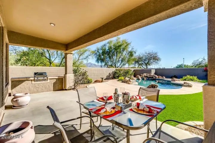 FULLY FURNISHED!! IMMACULATE MODERN REMODEL IN RESTORATION HARDWARE DECOR. NEARLY EVERYTHING NEWER. LIGHT & OPEN FLOORPLAN WITH GORGEOUS UNIQUE GRANITE COUNTERTOPS, BEAUTIFUL RECLAIMED ASH PORCELAIN TILE THROUGHOUT, NEWER UPGRADED CARPET IN 2 BEDROOMS. ELEGANT WHITE CABINETS WITH X LARGE DESIGNER SCHWINN HANDLES. NEWER CEILING FANS, NEWER PAINT, NEWER DOOR HANDLES, NEW FIXTURES. SPACIOUS KITCHEN FEATURES NEWLY EXTENDED BAR TOP, NEWER LARGE STAINLESS UNDER MOUNT SINK & GE STAINLESS STEEL APPLIANCES. SPACIOUS MASTER SUITE WITH NEW DUAL WHITE PORCELAIN UNDER MOUNT SINKS, LARGE WALK-IN CLOSET. 3 LARGE TV'S THROUGHOUT. HUGE BACKYARD FEATURING A SPARKLING PRIVATE HEATED POOL WITH WATERFALL, X-LARGE GRASSY PLAY AREA, COVERED PATIO WITH MOUNTAIN Views, Built in BQ WITH GRANITE TOP. N/S LOT IN A GREAT NEIGHBORHOOD. Walking distance to several great restaurants, shopping, schools, Boys & Girls Club, Parks, Hospital. JUST MINUTES AWAY FROM WORLD CLASS GOLF AT TPC -Home of the PHOENIX OPEN, SILVERLEAF, D.C. RANCH & GRAYHAWK! DIAMONDBACKS SPRING TRAINING BASEBALL FACILITY, SCOTTSDALE AIRPORT, WESTWORLD- Home to Barrett Jackson Car Show & other major events, KIERLAND COMMONS, THE AQUARIUM, BUTTERFLY WONDERLAND ALL WITHIN 10 MINUTES DRIVE. Lease Price INCLUDES: WATER, SEWER, TRASH, HIGH SPEED INTERNET, CABLE, WEEKLY POOL MAINTENANCE, MONTHLY LANDSCAPE MAINTENANCE. List price is for 4/18/26 - 10/31/26.