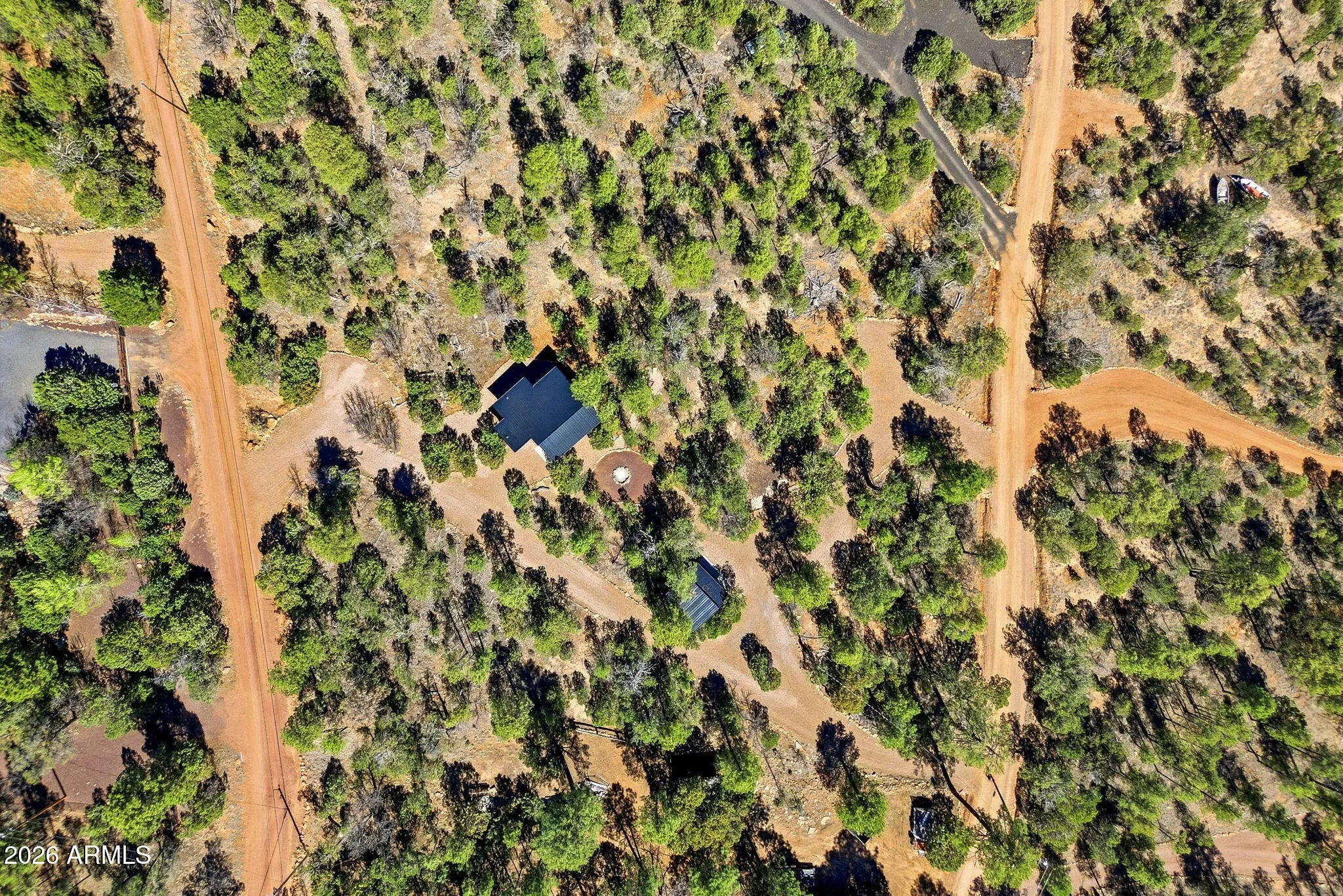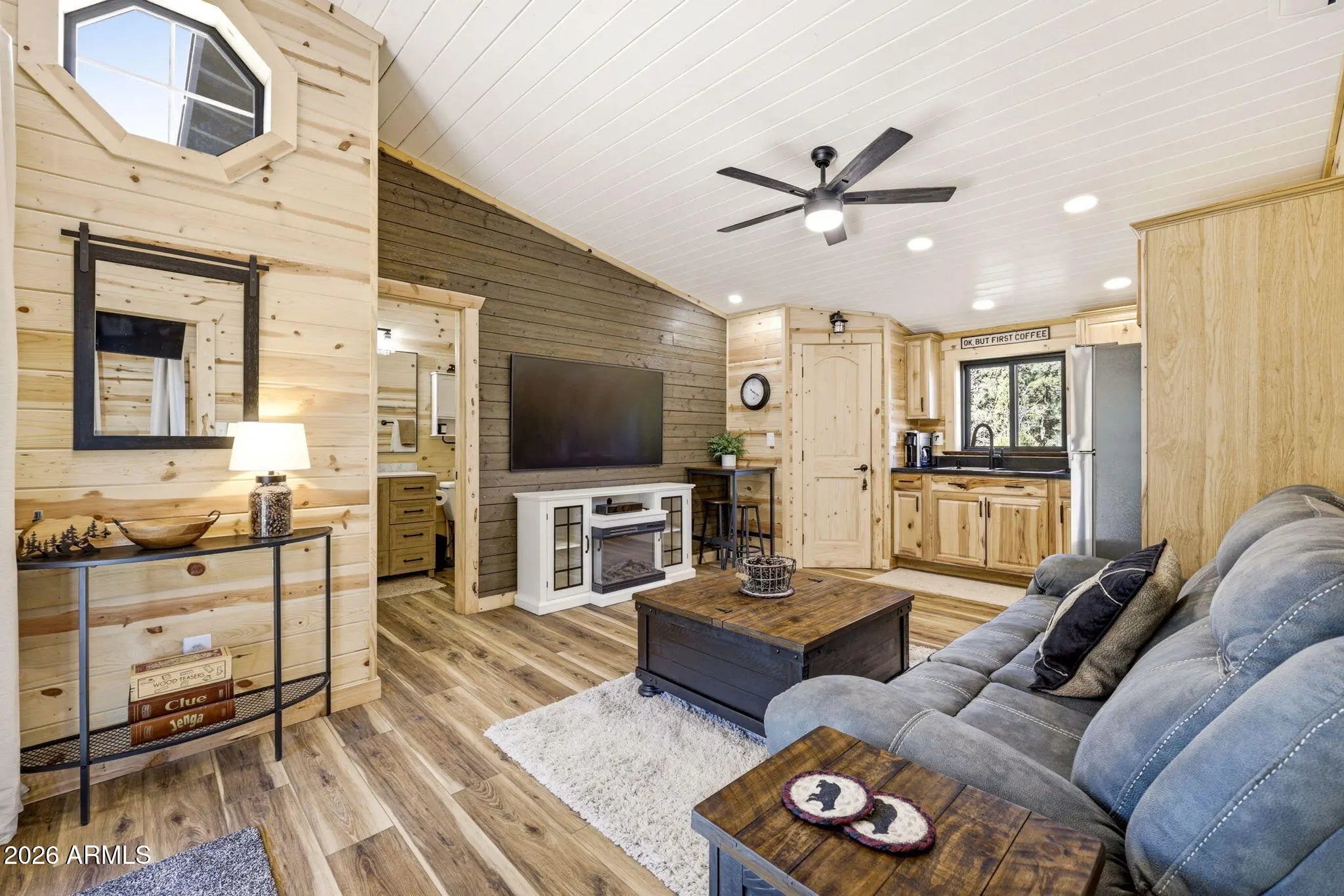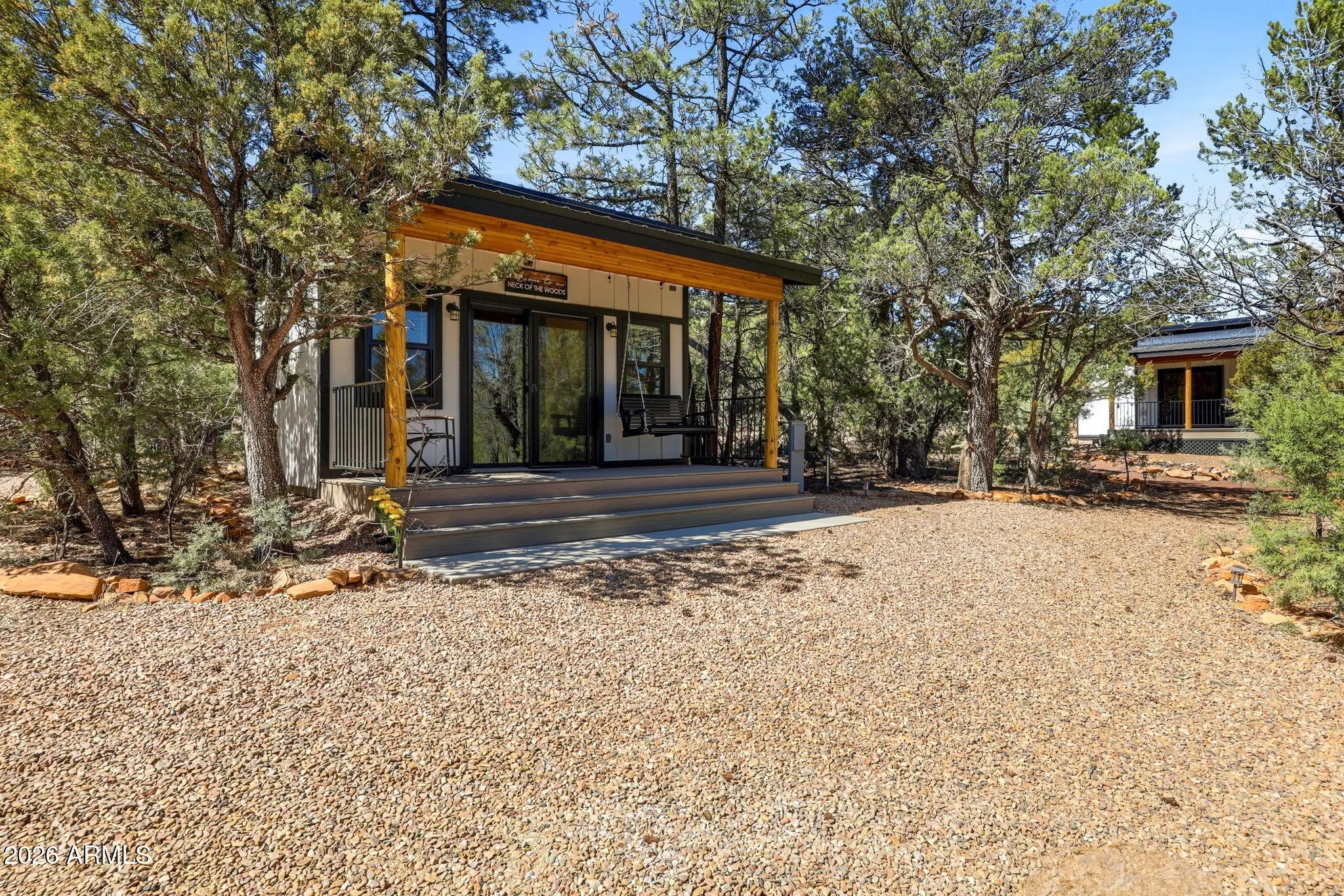 Rare opportunity to own 2.05 acres featuring two homes, main home was built in 2024, and the casita in 2025 The main home offers 529 sq ft of thoughtfully designed living space with vaulted ceilings and beautiful rustic finishes throughout. Enjoy knotty pine wall accents and custom peel pole log railing details that create a warm, inviting feel. A tankless water heater adds modern efficiency and convenience. A charming path leads to the 192 sq ft casita, built in 2025--perfect for guests, rental income, or a private retreat. Both homes feature durable metal roofs for long-lasting quality and low maintenance. This property is fully equipped for modern living and outdoor enjoyment, including an RV hookup, EV hookup for your electric vehicle, and a cozy fire pit. Offered fully furnished and truly turn-key, this property is ready for immediate enjoyment or investment. Situated on 2.05 acres with plenty of room to expand or relax and take in the peaceful surroundings, this one-of-a-kind property offers versatility, charm, and endless potential--must see!