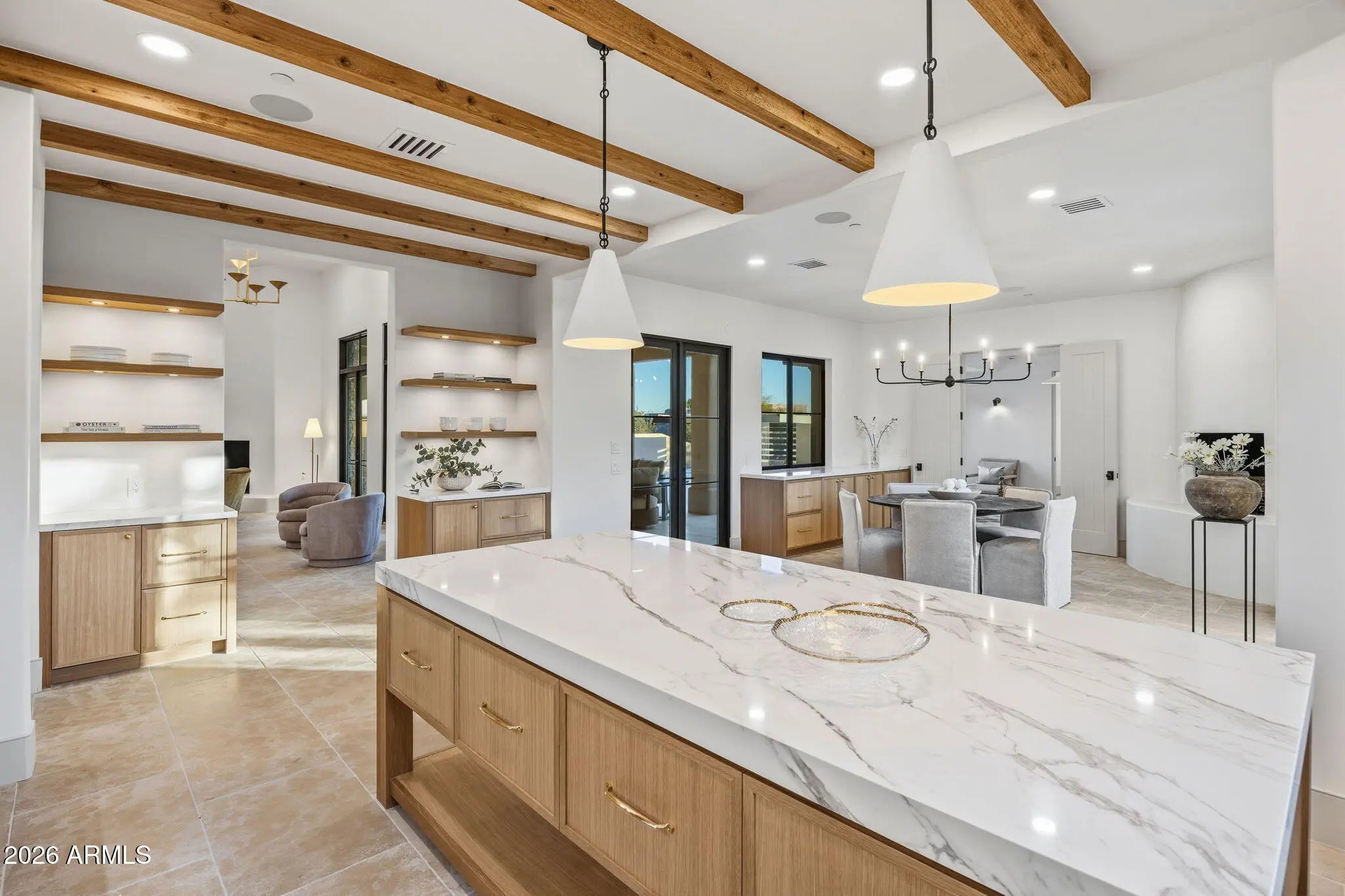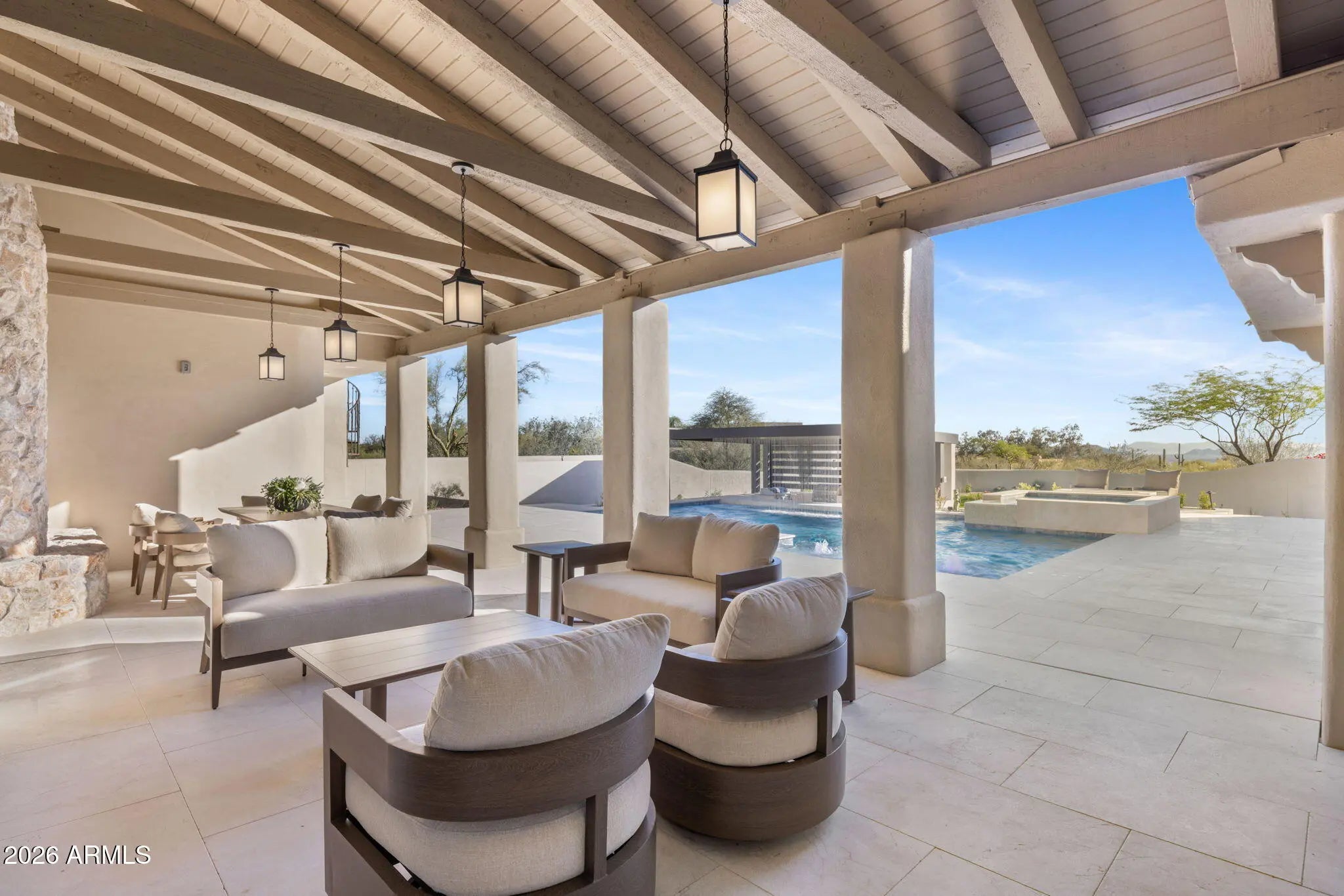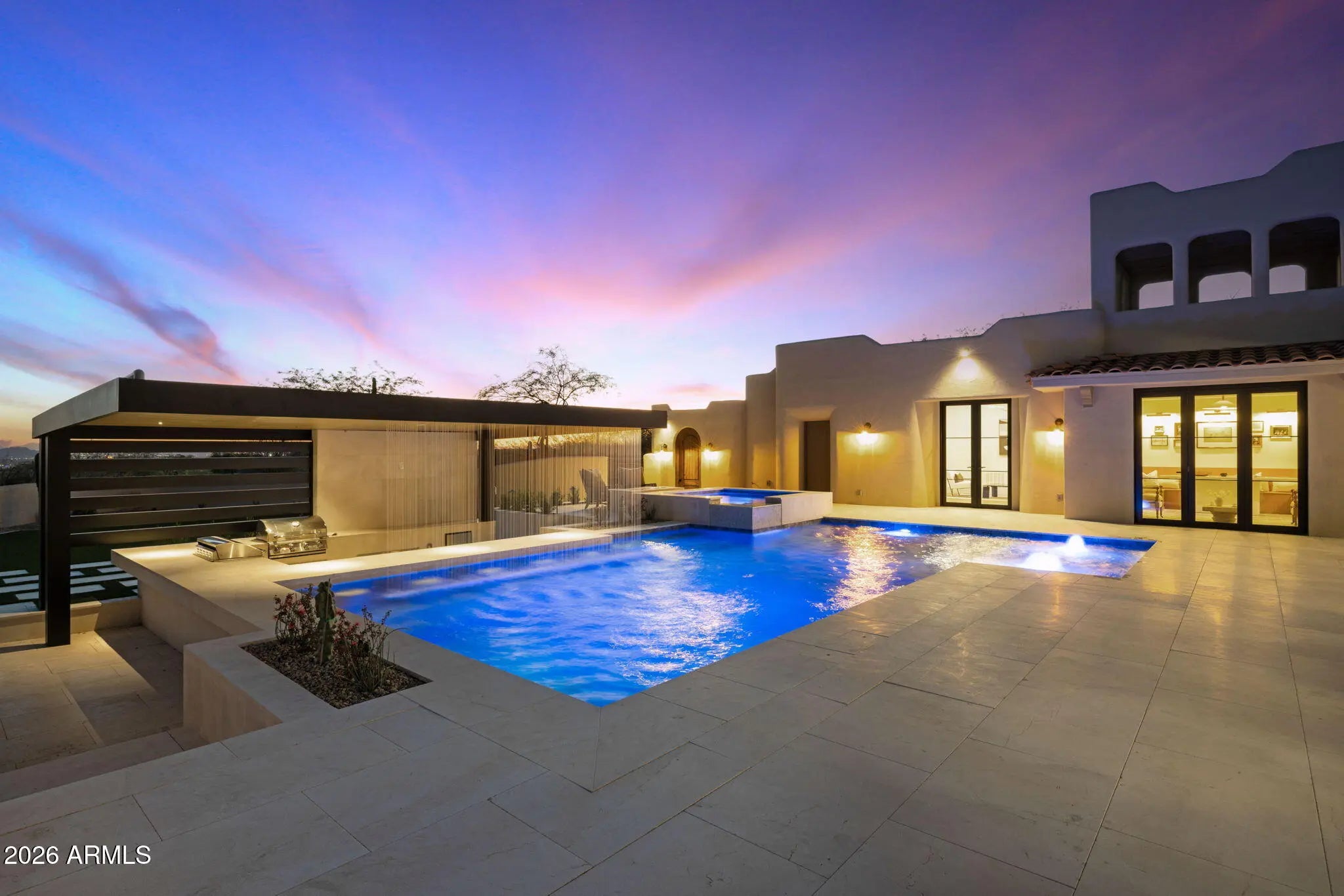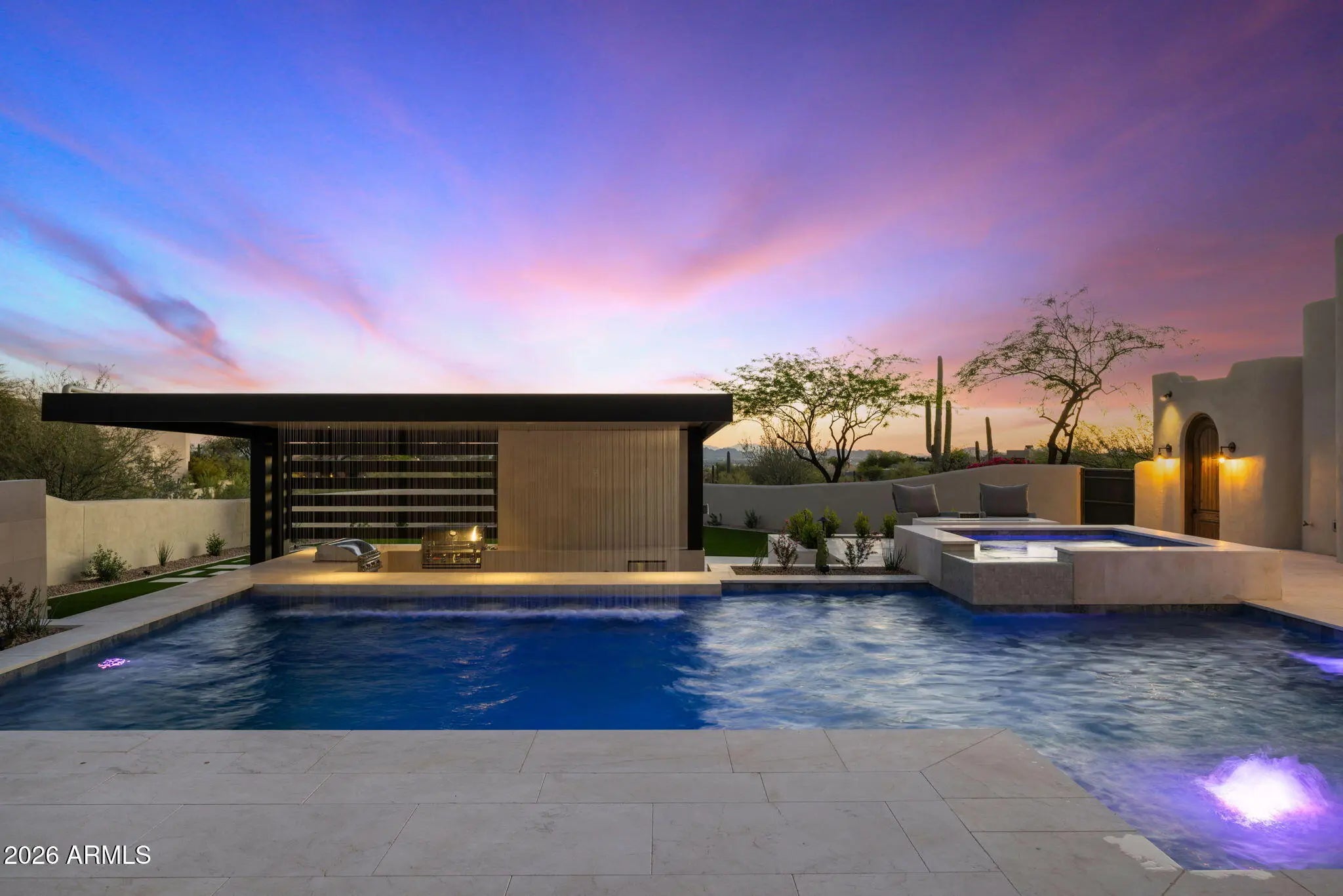 Two years in the making and finally arriving, this is the kind of property buyers wait for--and rarely see come to market. Perched on nearly two acres in the highly desirable Pinnacle Peak Vistas of North Scottsdale, one of the most sought-after areas in the Valley today, with unobstructed mountain and city light views, this one-of-a-kind residence has been completely transformed through a collaborative effort between an architectural team and interior designer--resulting in a true organic modern showpiece where every detail was intentionally crafted. Taken down to the studs, the home features all-new systems, high-performance doors and windows, natural stone flooring, and custom white oak cabinetry throughout. The interiors are anchored by a refined, cohesive material palette... ...with sculptural fireplaces finished in limewashed Venetian plaster and thoughtfully curated textures that create warmth and depth. The chef's kitchen is outfitted with professional-grade Sub-Zero, Wolf, and Cove appliances, complemented by Rejuvenation hardware in uncoated burnished brass designed to develop a rich patina over time. The expansive primary suite offers a true retreat with a spa-quality bathroom featuring elevated finishes and premium fixtures, while the secondary spaces continue the same level of design with designer tile and high-end materials throughout. A curated lighting package enhances each space, creating a layered and elevated living experience. The outdoor living is a true showpiece, completely redesigned to match the level of the interior. Enjoy a resort-style pool and spa, sunken swim-up bar, and a covered pergola lounge with a cascading waterfall feature. A brand-new elevated party deck captures sweeping panoramic views of the desert, mountains, and city lights--creating an unforgettable setting for entertaining. Ideally located in Pinnacle Peak Vistas, the property offers convenient access to world-class golf at Troon North, Grayhawk, and TPC Scottsdale--home of the renowned Waste Management Phoenix Open. Just minutes away, you'll find upscale dining, shopping, and entertainment at Kierland Commons, Scottsdale Quarter, and Market Street at DC Ranch, along with hiking at Pinnacle Peak and year-round events that define the Scottsdale lifestyle. All of this with remarkably low HOA dues of just $400 annually--an uncommon advantage for a luxury North Scottsdale community. Two years in the making and now finally complete, this is more than just a home--it's a statement. A rare, architecturally driven North Scottsdale estate designed to impress, built for entertaining, and nearly impossible to replicate.