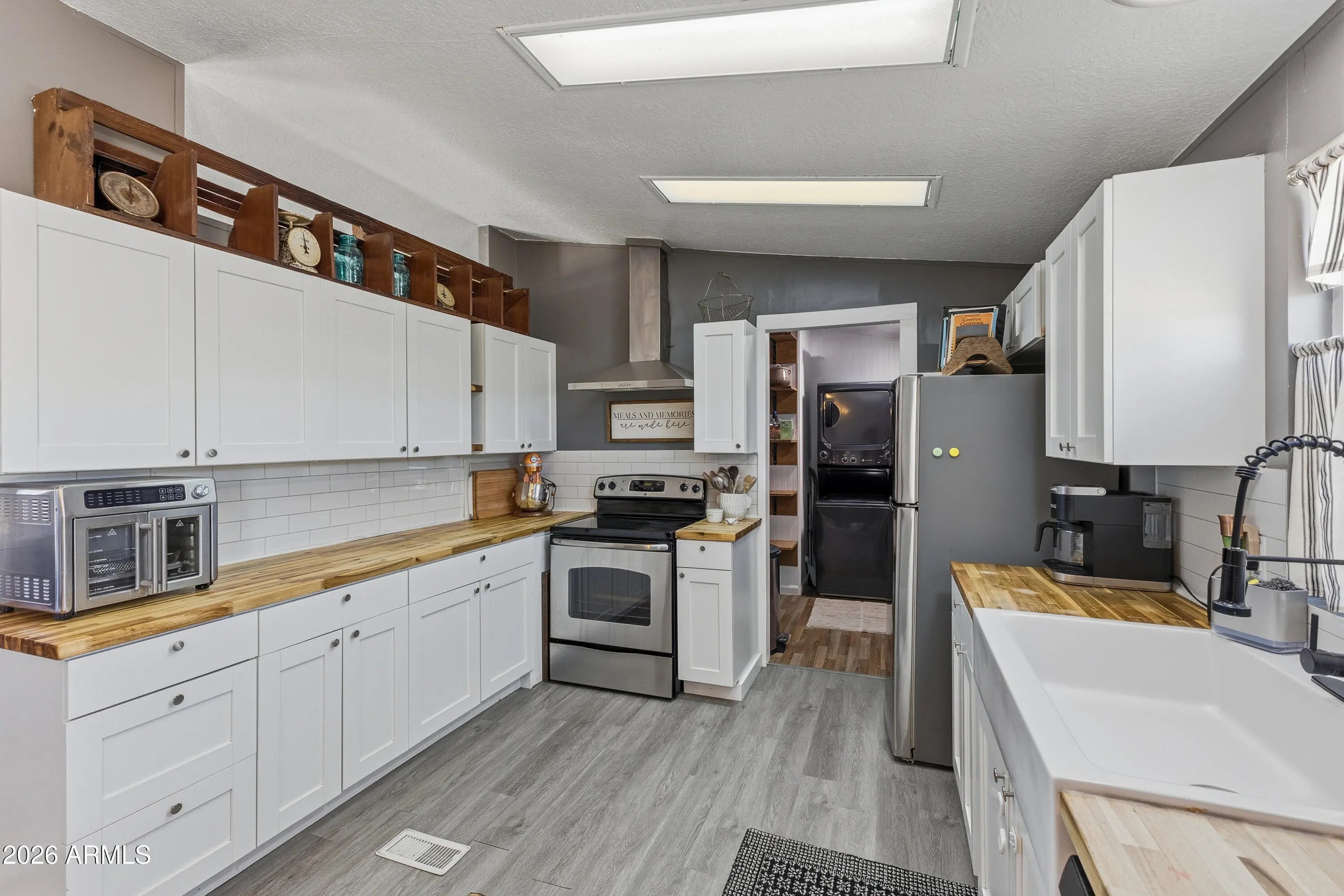 Stacked Washer/Dryer, Refrigerator, Dishwasher, Disposal, Electric Range