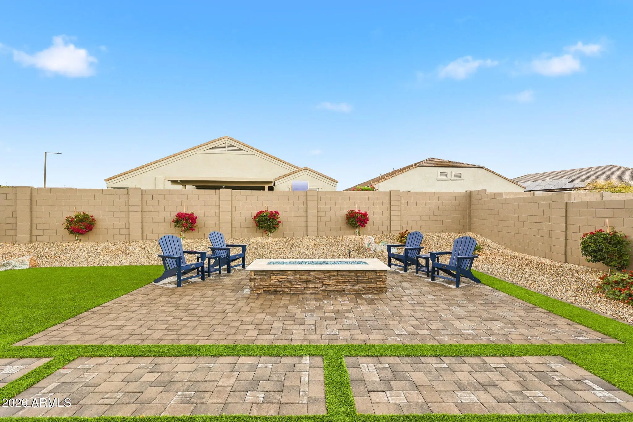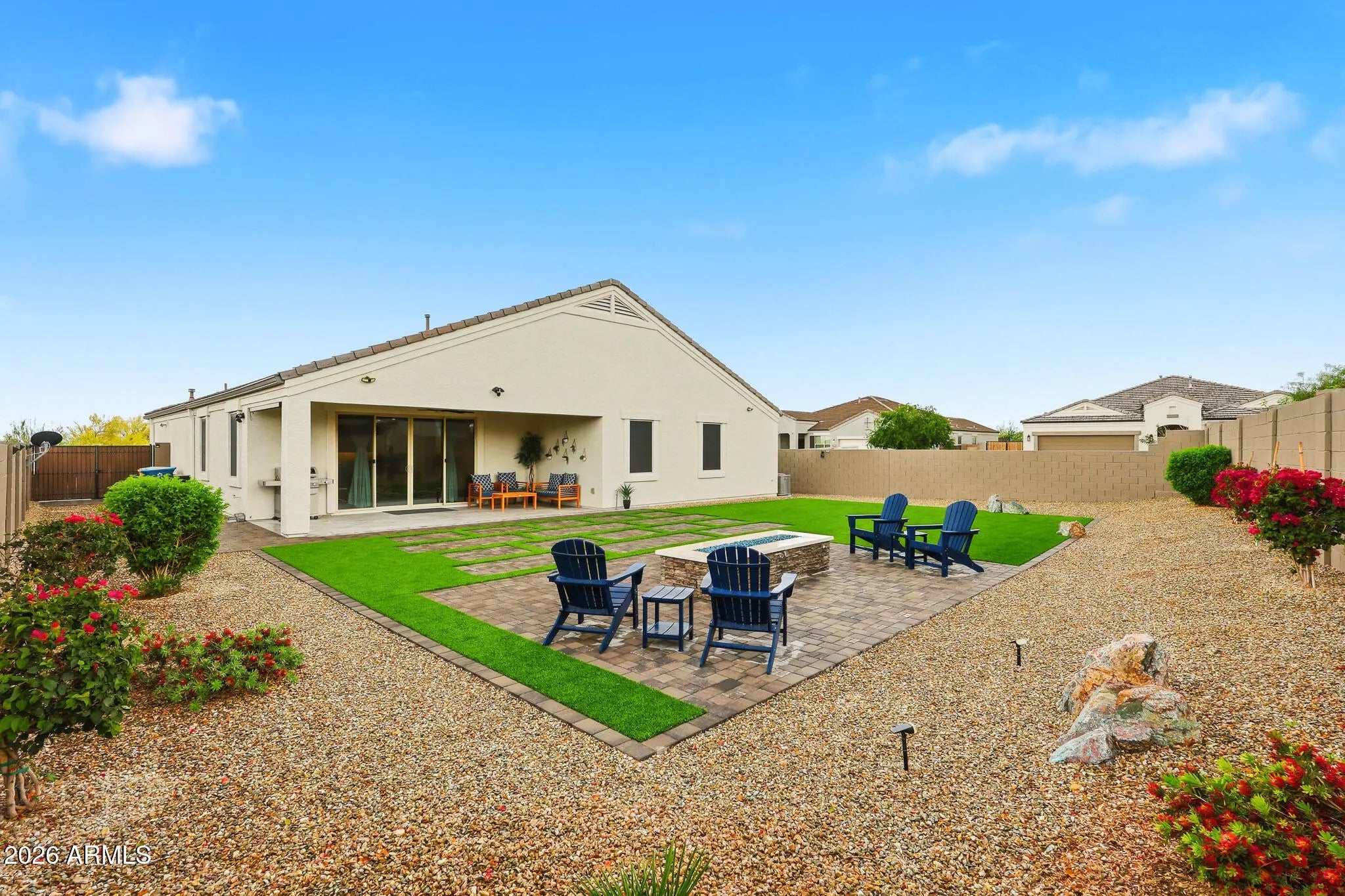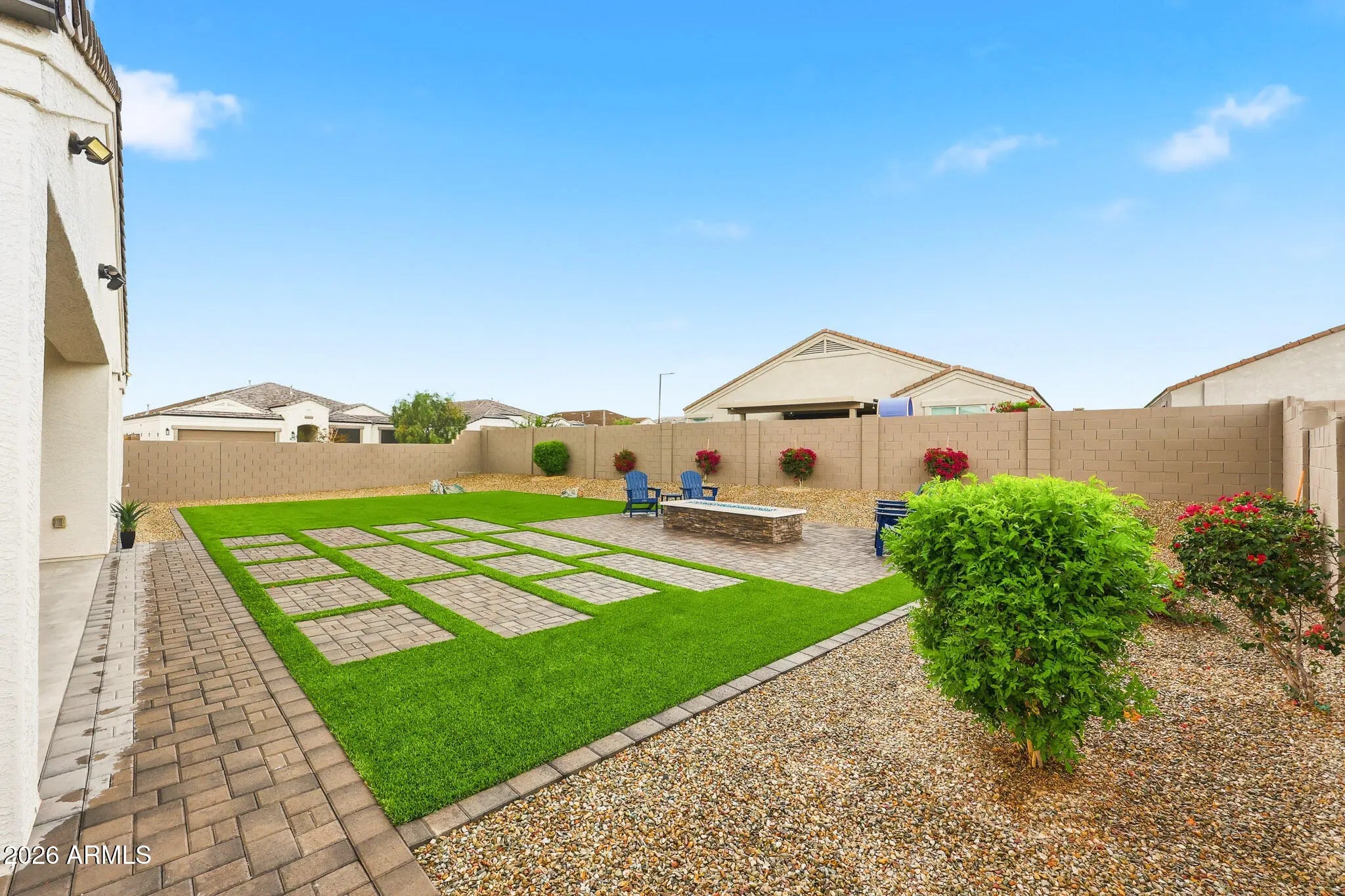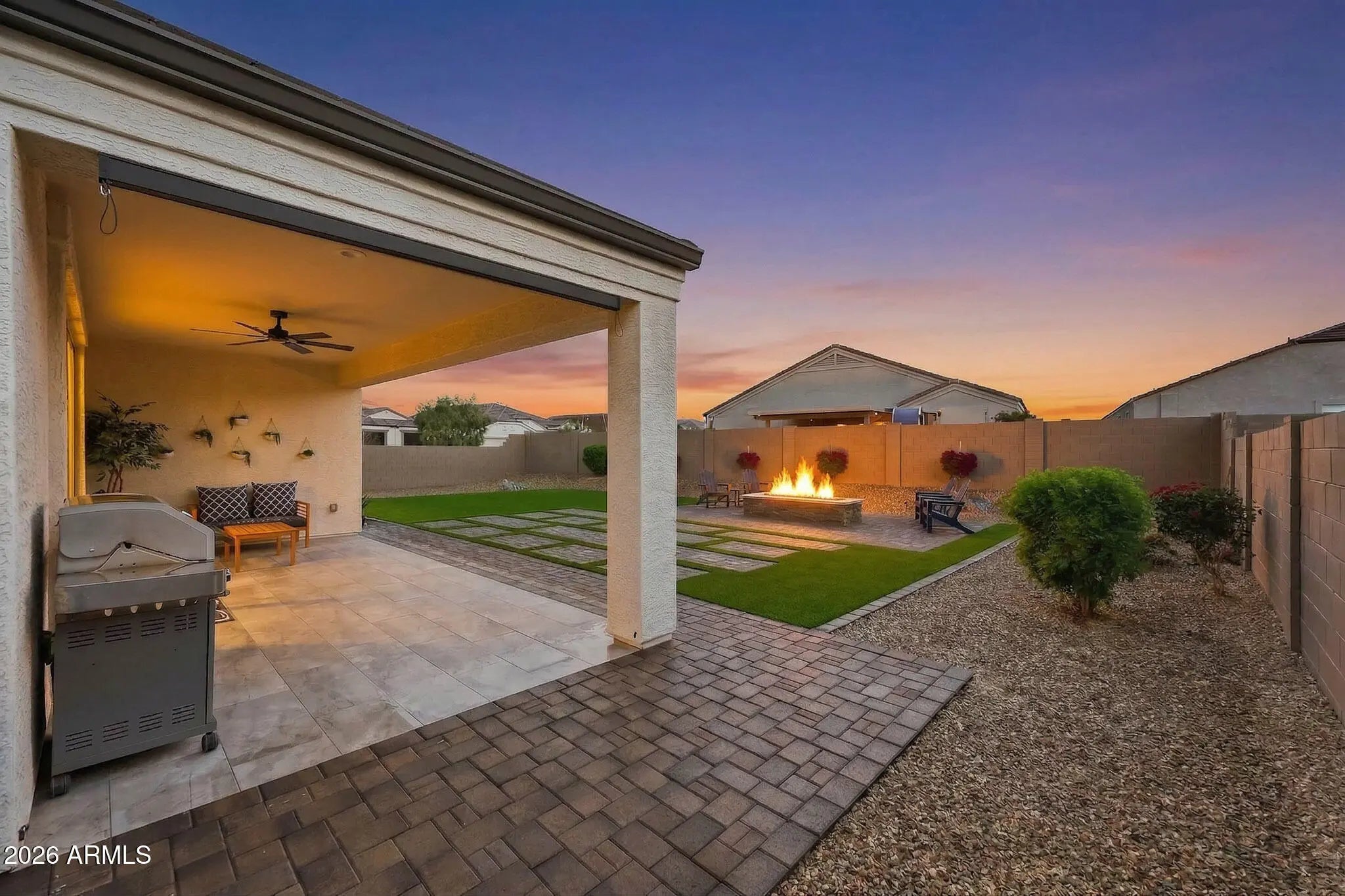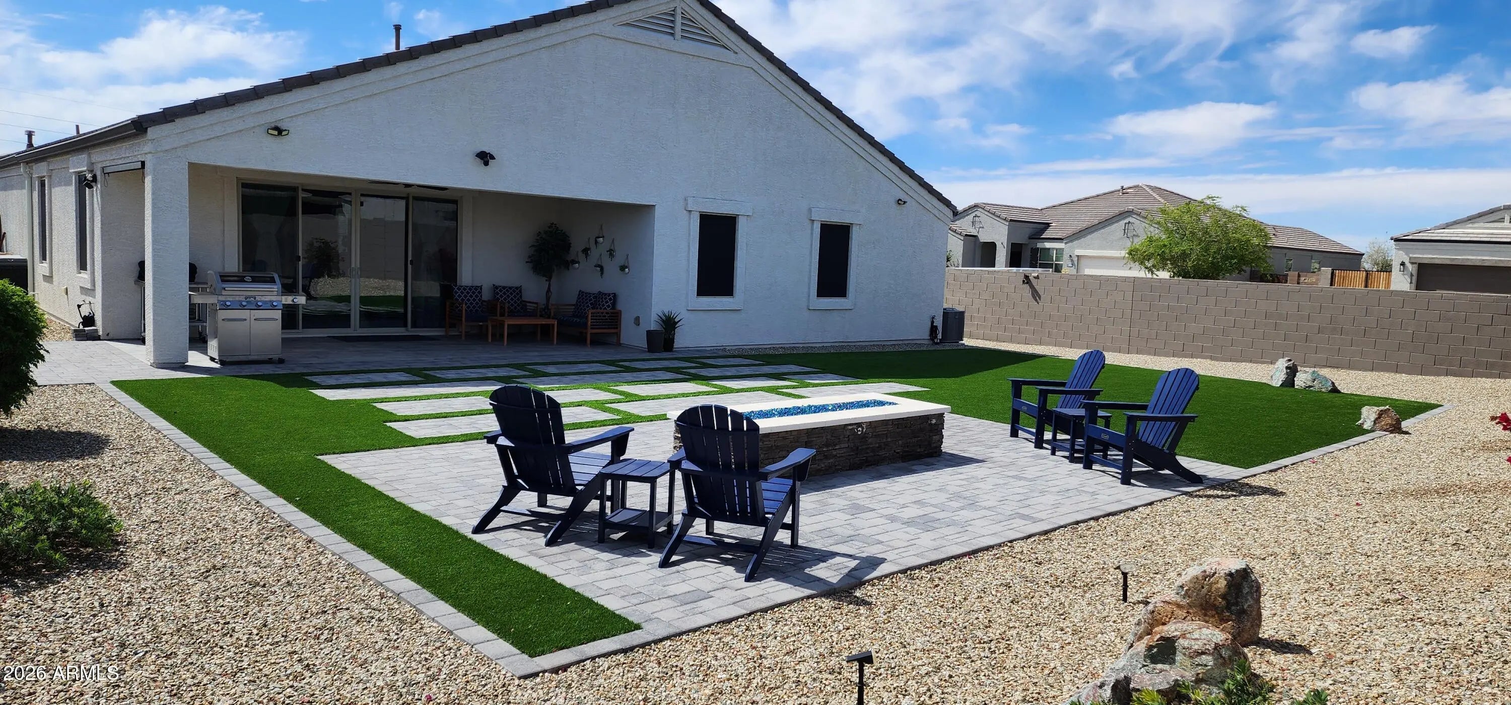 TURN-KEY CORNER LOT GEM WITH OVER $60,000 IN UPGRADES. CUSTOM-BUILT FIREPIT IN TARTESSO! This move-in ready property features 4 Bedrooms, 3 full bathrooms. Versatile Bonus room perfect for a Home Office, Gym or Flex space. Step inside to discover elegant tile flooring, 9 ft. flat ceilings and a bright, open concept layout designed for modern living. The upgraded kitchen boast Hardwood cabinets, a stylish backsplash , Quartz counter-tops, Pendant lighting, sleek Black stainless steel appliances, convenient pull-out shelving in kitchen and bathrooms. The Primary walk-in closet is customed designed by ''Closets by Design''. For a list of upgrades and features please check the supplement. UPGRADES AND SPECIAL FEATURES!!! THIS HOME IS PACKED WITH HIGH-END UPGRADES, INCLUDING: WHOLE-HOME WATER SOFTENER, AND RO DRINKING SYSTEM. HONEYWELL T6 SMART THERMOSTATS AND WI-FI CERTIFIED. SMART HOME FEATURES. SOLAR SUNSCREENS FOR ENERGY EFFICIENCY. DUAL-PANE, LOW-E WINDOWS AND RADIANT BARRIER ROOFING. TAEXX BUILT-IN PEST CONTROL SYSTEM AND FRESH AIR INTAKE. ENJOY ADDED COMFORT AND STYLE WITH NEW CEILINGS FANS, MODERN LIGHT FIXTURES, UPGRADED BATHROOM FEATURES (INCLUDING FAN TIMERS AND NIGHT LIGHTS), AND A KWIKSET Z WAVE FRONT DOOR SMART LOCK. THE SPACIOUS GARAGE IS A STANDOUT, FEATURING POLYASPARTIC COATED FLOORS, BUILT IN CABINETS, A SINK, AND AN EXTENDED 24-FOOT LENGTH GARAGE, PERFECT FOR STORAGE, HOBBIES, OR A WORKSHOP. STEP OUTSIDE TO YOUR PRIVATE BACKYARD RETREAT, FEATURING A CUSTOM-BUILT OUTDOOR FIREPIT, PERFECT FOR COZY EVENINGS, ENTERTAINING GUESTS, AND ENJOYING ARIZONA LIVING ALL YEAR-ROUND. ADDITIONAL EXTERIOR UPGRADES INCLUDE A CONCRETE FENCE WITH PRIMER AND PAINT, ALUMINUM GLASS STORM DOOR, GUTTERS, PREFAB GATE SLATS, AND TASTEFUL WINDOW TREATMENTS THROUGHOUT. HVAC SYSTEM HAS RECEIVED SEMI-ANNUAL PREVENTIVE MAINTENANCE SINCE BEING BUILT. A PROFESSIONAL PEST CONTROL SERVICE HAS BEEN USED FROM THE START OF OCCUPYING THE HOME. WASHER & DRYER ARE INCLUDED MAKING THIS TRULY A TURN-KEY OPPORTUNITY.