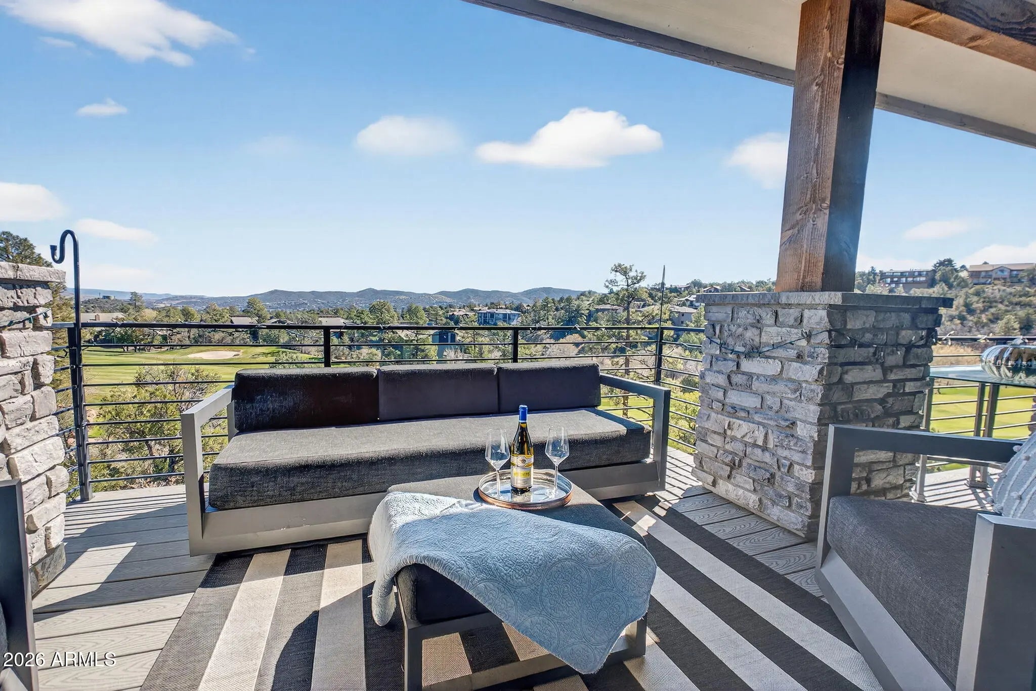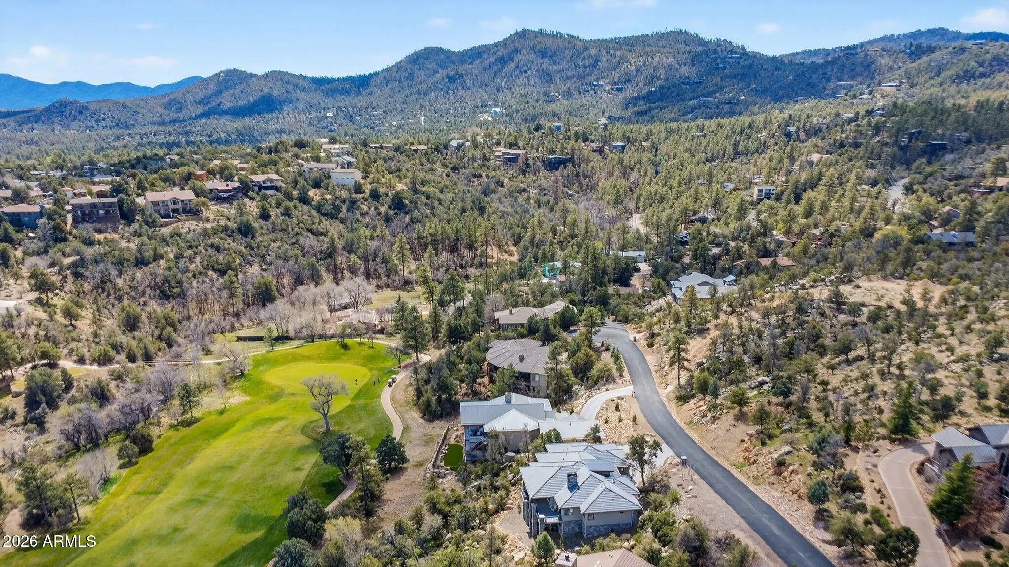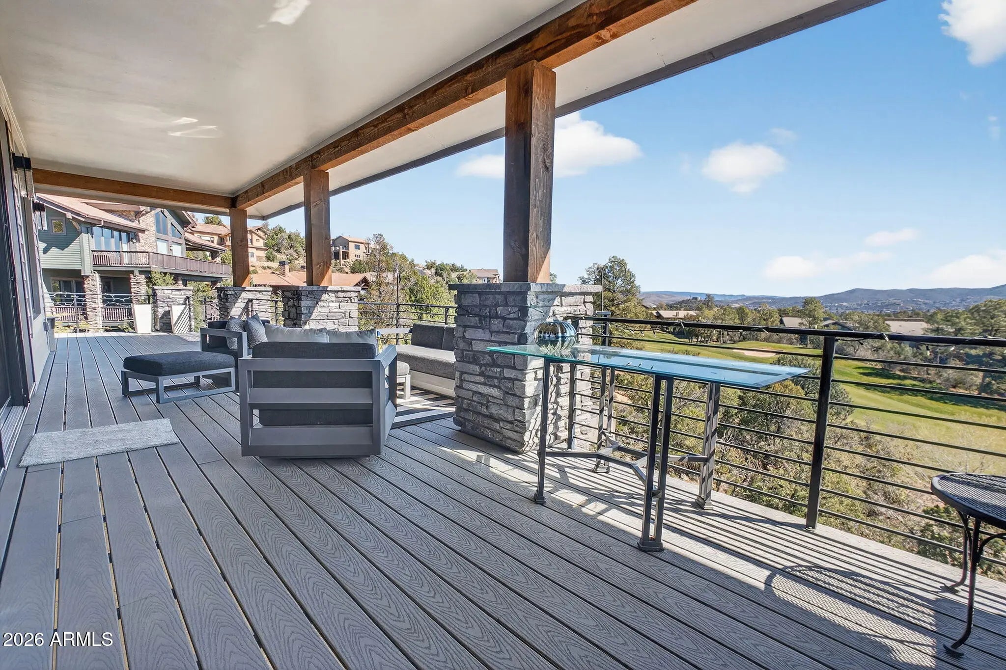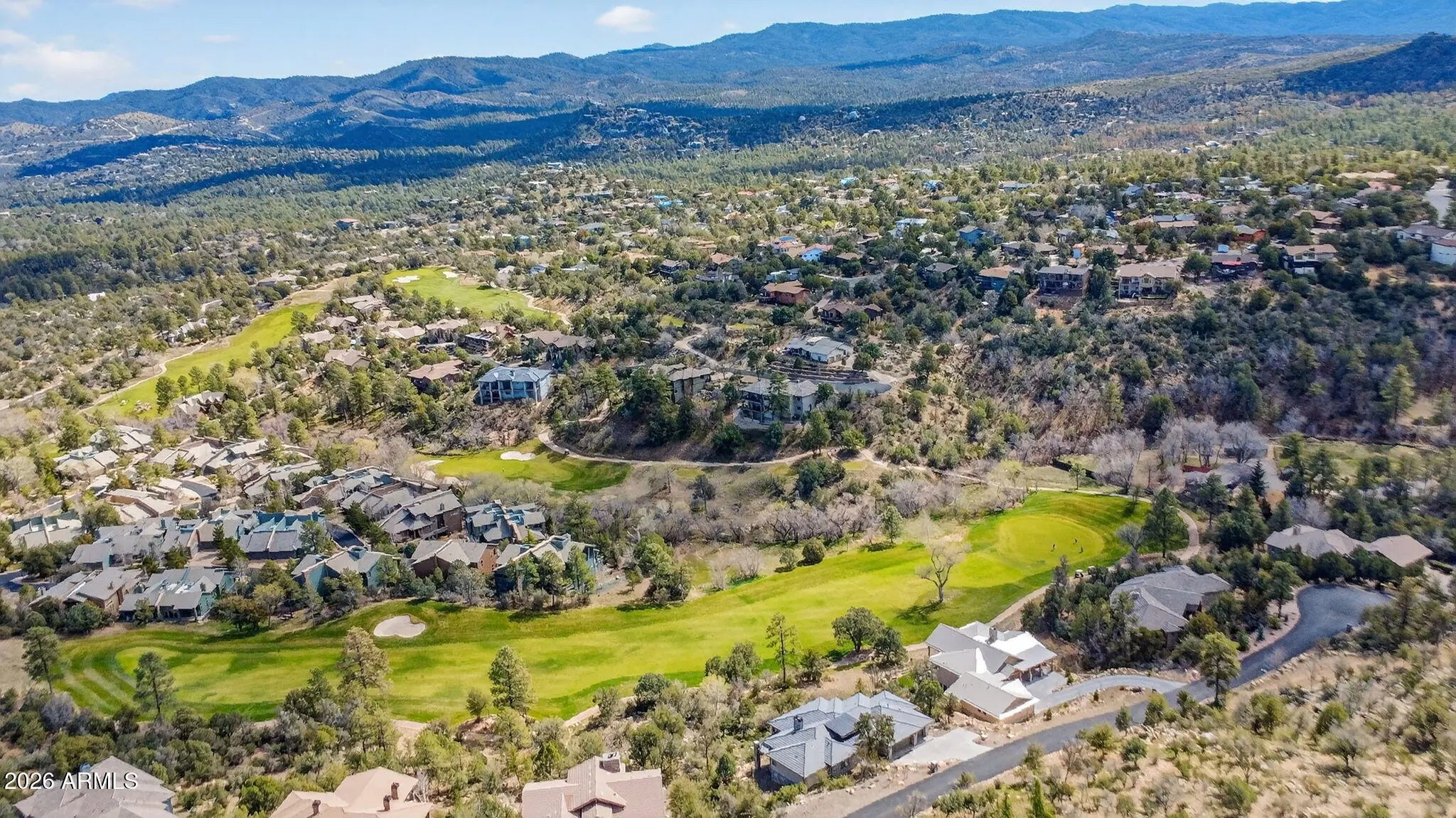 Step inside and take a deep breath -- this is the kind of home that makes you slow down to take it all in! From the double doors to the sweeping deck, every space frames the views: mountains, boulders, trees, and the peaceful sight of Hole #2 at Capital Canyon Club just below. On clear nights the sky goes dark and the Milky Way pops into view -- it feels like your own private retreat, yet downtown Prescott and its energy are just a short drive away. This house was built elegantly for everyday comfort and for sharing good times. The main level offers a Primary Bedroom plus two more bedrooms with walk-in closets, and a cozy den/bonus living area for main level living. Downstairs, you'll find two more bedrooms with walk-in closets and a family room -- great for all to enjoy. Both levels are brighten by lots of natural light and their own large decks, giving you a place to step outside and enjoy the outdoors at all times. Heating and cooling are zoned for extra comfort. If you love to cook, this kitchen will make you smile: Wolf dual-fuel range, pot filler, big island that seats four, built-in wine cooler, Bosch dishwasher, disposal and a large walk-in pantry that with enough outlets for all your appliances. Quartzite and quartz counters finish the space beautifully. The primary suite is a calm, spa-like spot with his-and-hers vanities, a soaking tub, and a generous shower. You will love the tiled walls and chandelier over the free standing tub. Thoughtful touches like motion-sensor lights under the floating vanities and custom closet organizers make daily life easier. Practical things were handled with care: three oversized garage bays with natural light, built-in storage, epoxy flooring and a French drain; a roomy laundry with utility sink and cabinets; two large storage rooms that could be adapted for an elevator. The community is Firewise and the home was built to meet those standards -- HOA inspections keep the neighborhood compliant with the Firewise requirements. Club membership at Capital Canyon Club is optional and the clubhouse is a short distance away. This home whispers calm, elegance, nature home where you can watch wildlife, host friends on a deck for sunset, and still be close to Prescott's shops and restaurants -- this is the one for you.