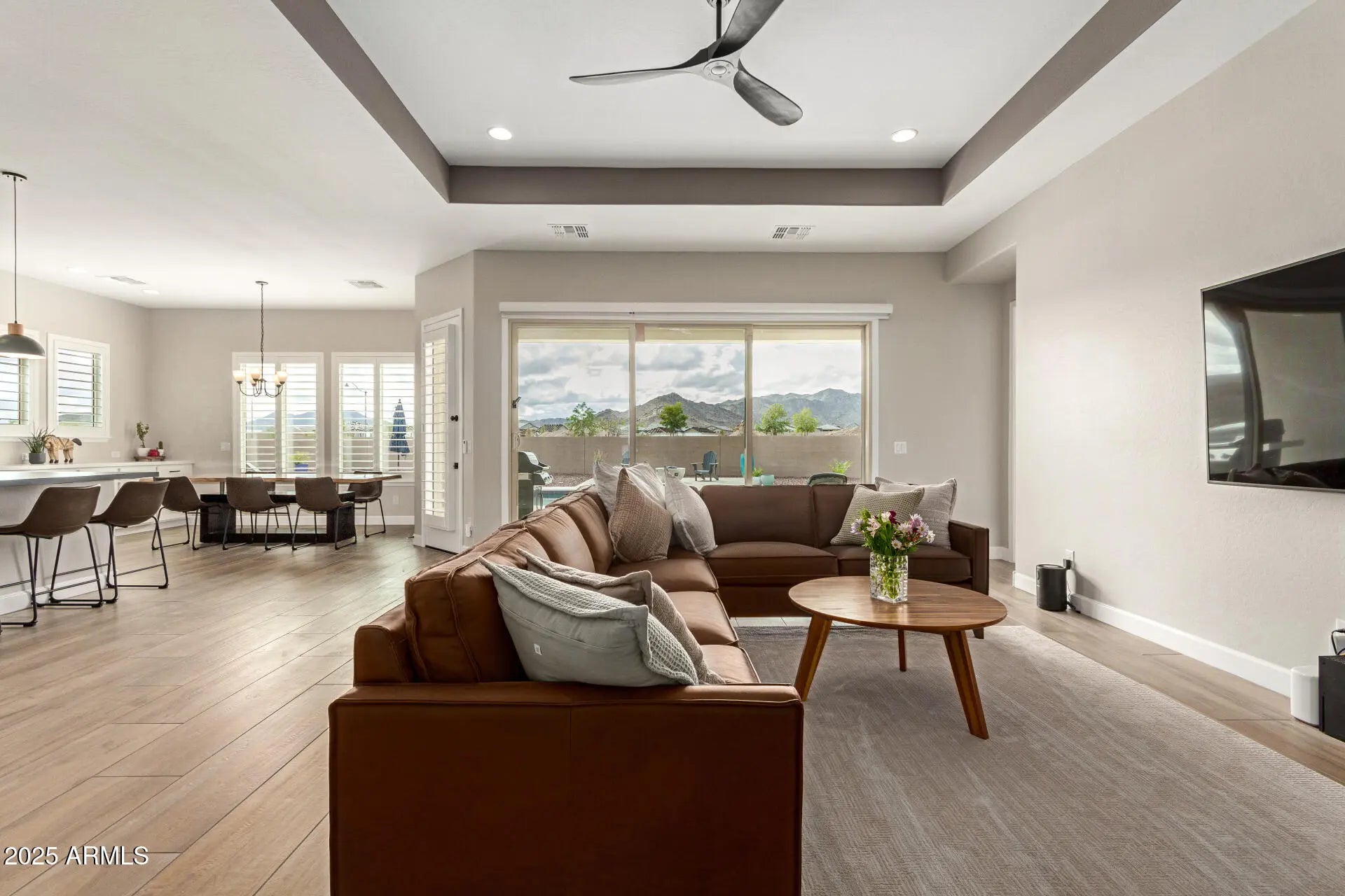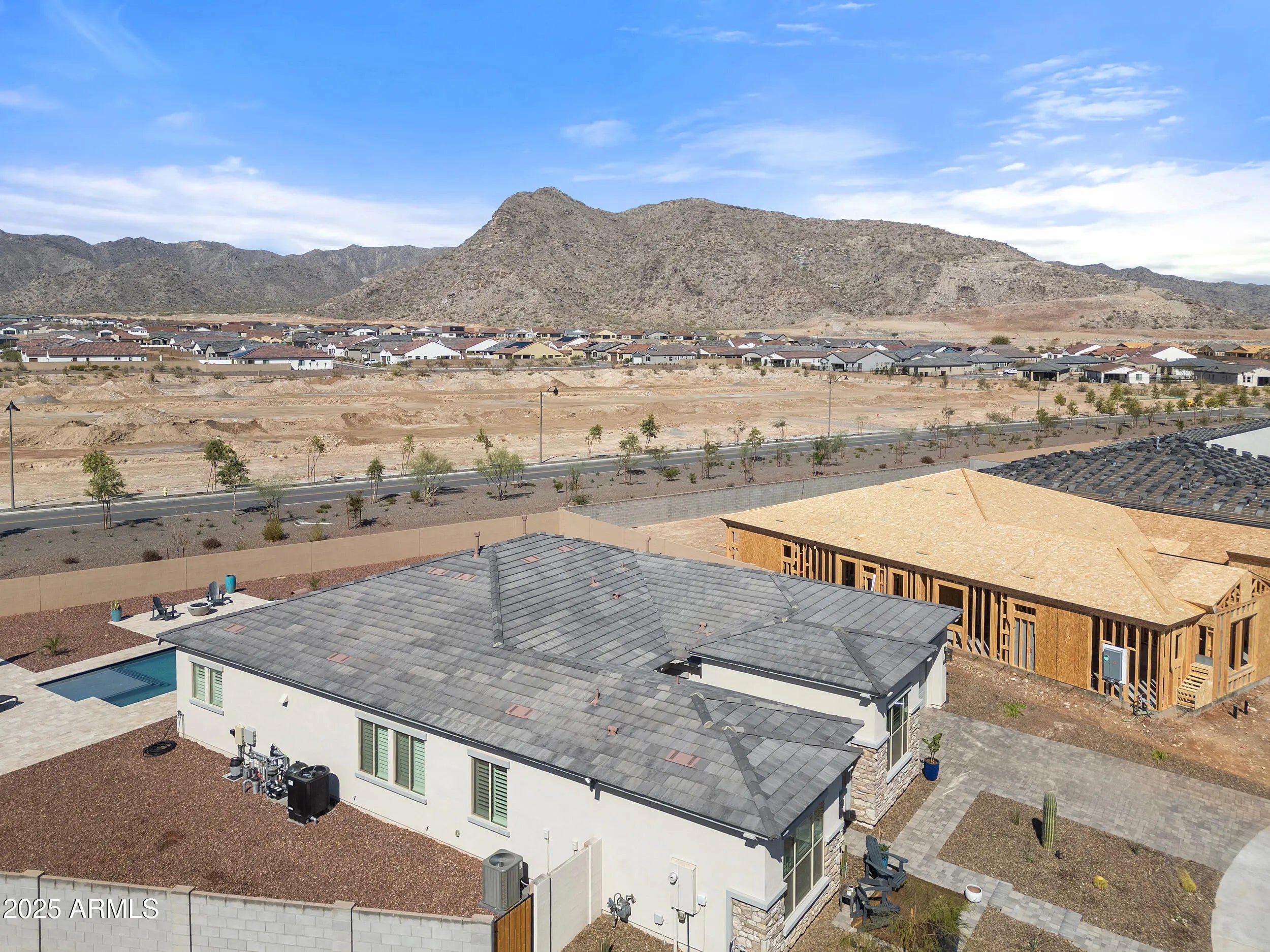 Better than new and loaded with upgrades! This stunning 4-bedroom, 3.5-bath home offers an open floor plan and breathtaking mountain views on a huge lot. Over $100,000 in builder upgrades throughout. The gourmet kitchen features high-end finishes, abundant cabinetry, and a walk-in pantry. The spacious primary suite includes a supershower and dual sinks. Two bedrooms share a Jack & Jill bath, while another offers a private en-suite. A 12-ft multi-slider with electronic shade creates seamless indoor-outdoor living, opening to a heated saltwater pool with swimming lane and travertine surround. Work from home in the study with French doors. Epoxy garage flooring and EV charging included.