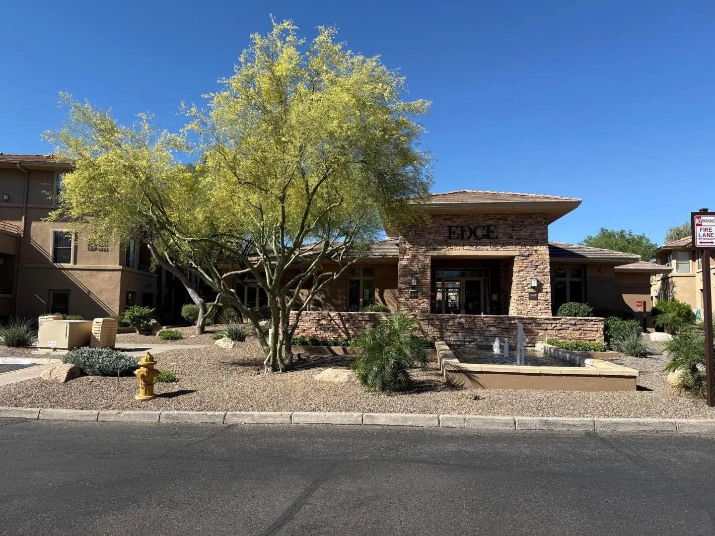 Resort style living! The Edge at Grayhawk is a beautiful and vibrant community. 1 bed/1 bath condo, first floor. Wood plank tile throughout. Shutters on all windows. Fridge, washer, and dryer are included. Granite countertops, pantry. Walk-in shower. Gated community. Heated pool and spa. Tucked away yet near BBQ's, the Fitness Center. Clubhouse, and mailboxes. Conveniently located near Kierland, Scottsdale Quarter, Desert Ridge, theaters, coffee shops, and grocery stores. Desert landscape scenery and McDowell Mountains outside the door. A pleasant view to see when approaching the front door.