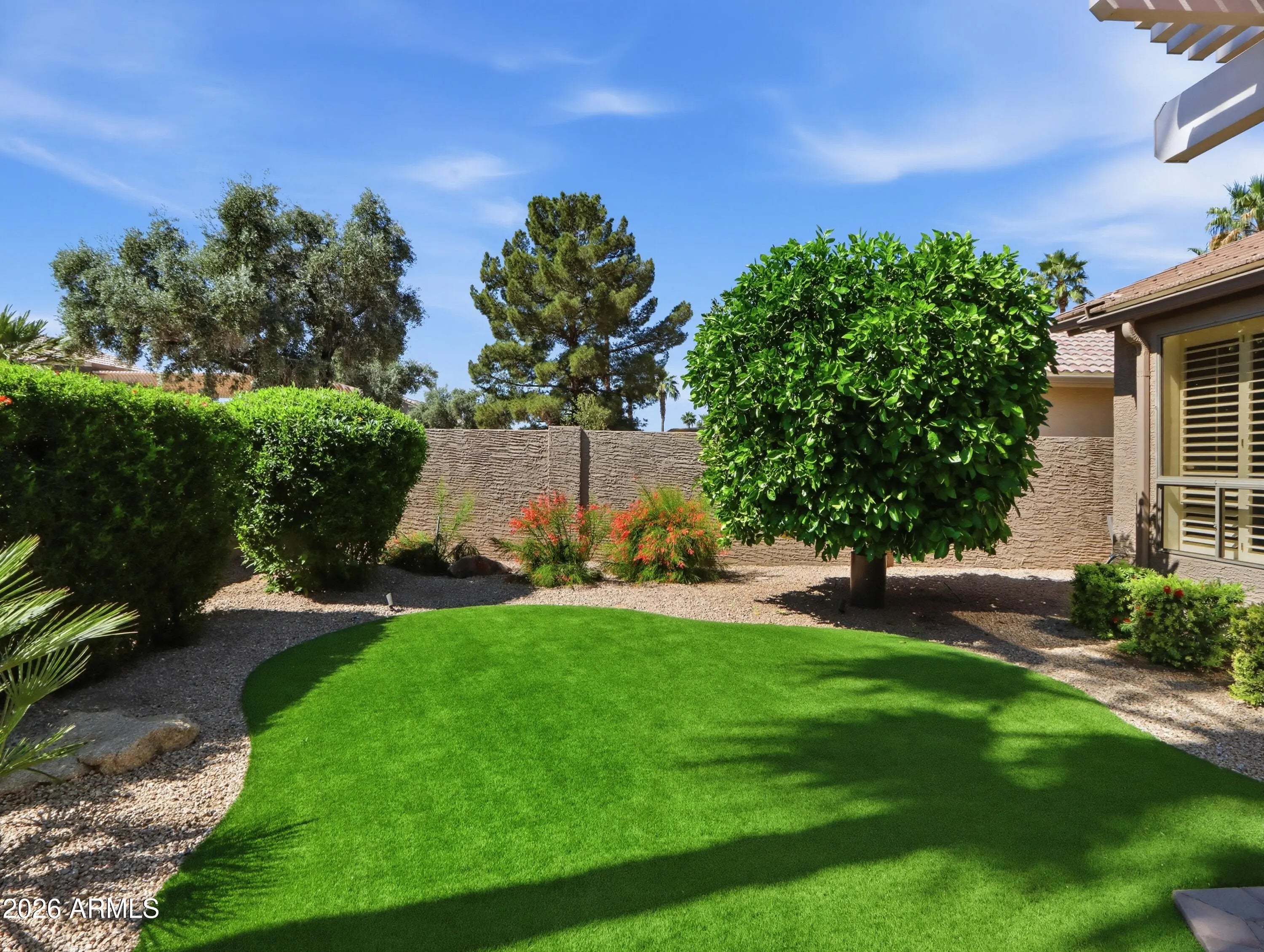 North/South Exposure, Sprinklers In Rear, Sprinklers In Front, Desert Front, Gravel/Stone Back, Synthetic Grass Frnt