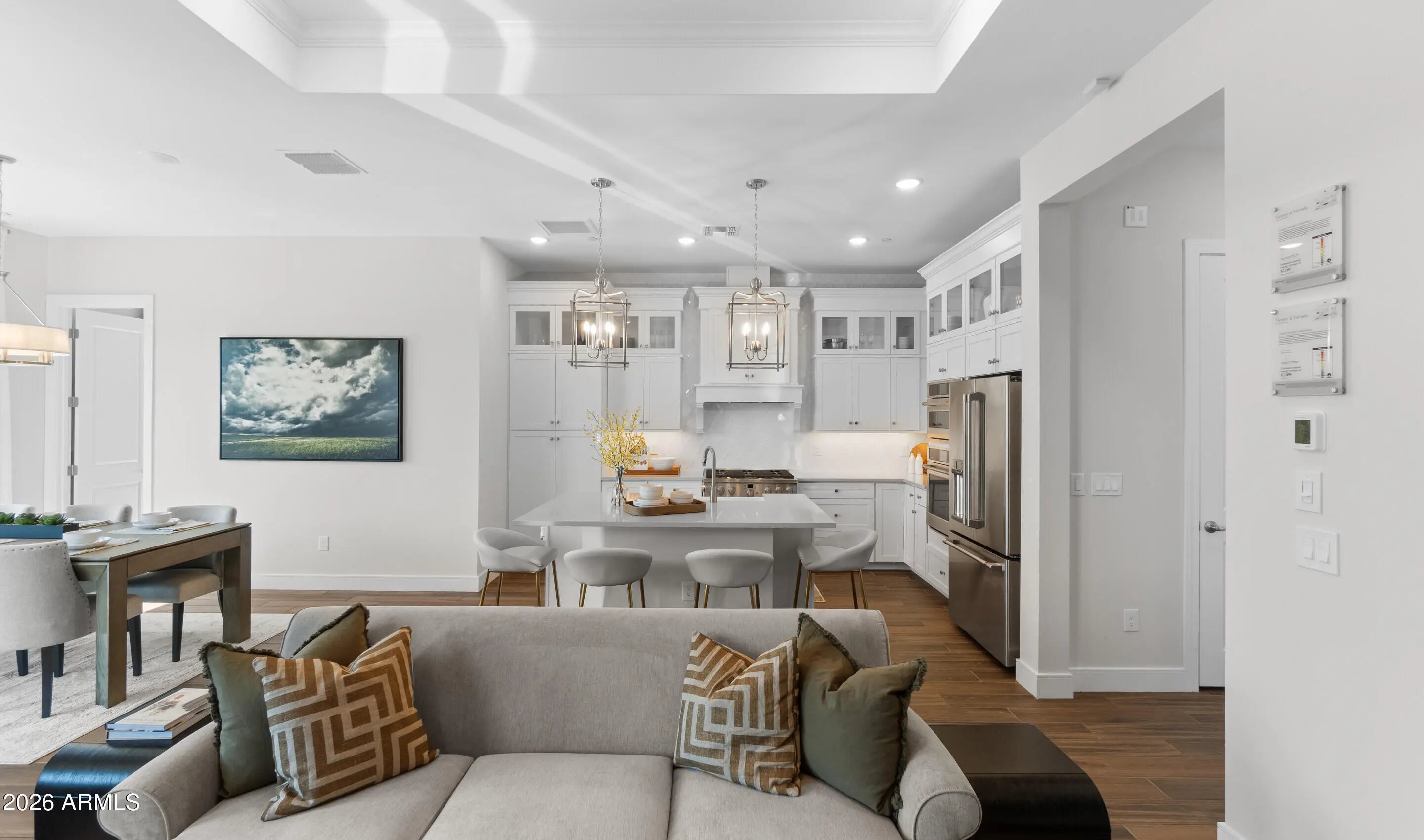 Discover elevated 55+ living in Victory at Verrado, where resort-style amenities and a vibrant, active lifestyle set the tone. The thoughtfully crafted Clyde plan showcases timeless, designer-curated finishes throughout. The gourmet kitchen impresses with a spacious island, Soapstone Mist quartz countertops, crisp white cabinetry with satin nickel hardware, and GE Profile stainless steel appliances with a wall oven. An open great room, highlighted by a coffered ceiling, flows effortlessly to a covered patio for seamless indoor-outdoor living. A versatile home office offers space for work or fitness, while the private primary suite features a dual vanity, step-free shower, and walk-in closet. Low-maintenance living at its finest. ^^Up to 6% of Base Price can be applied towards closing cost and/or short-long-term interest rate buydowns when choosing our preferred Lender. Additional eligibility and limited time restrictions apply. Ask for more information!