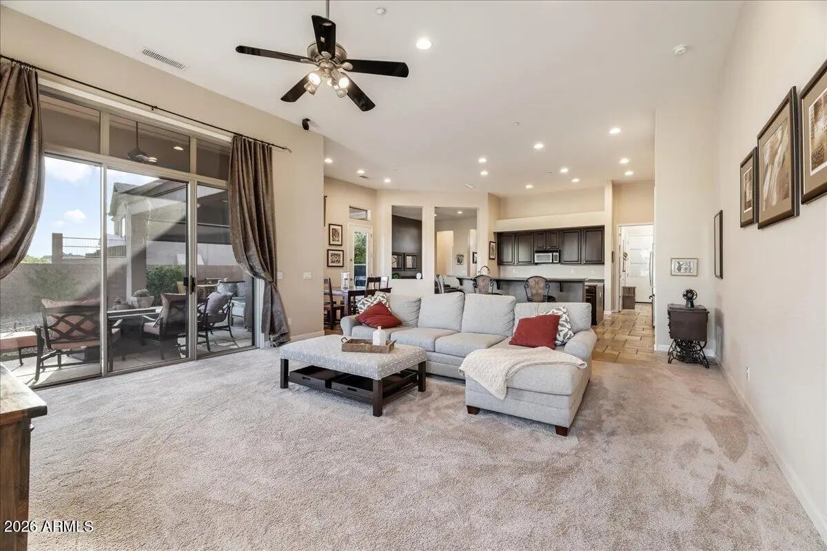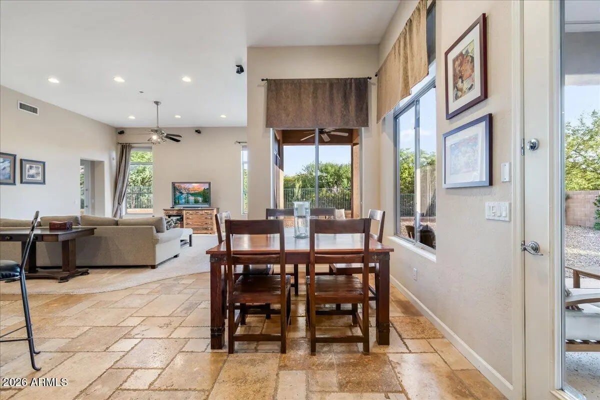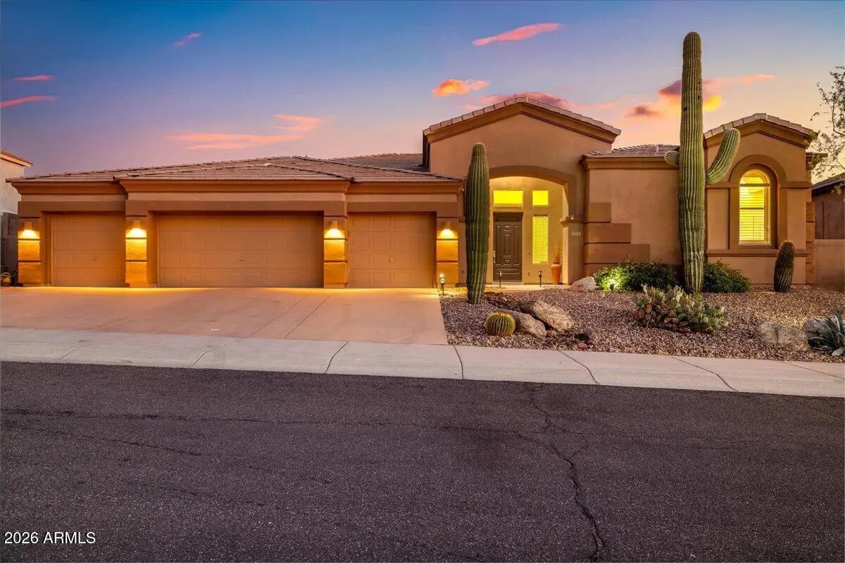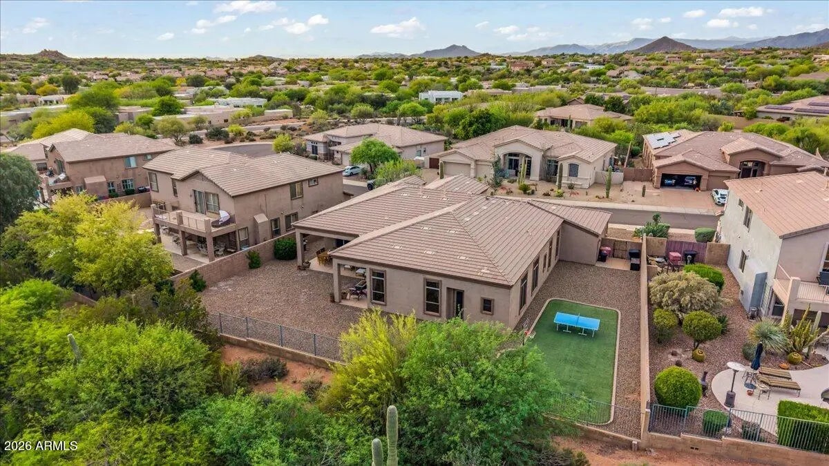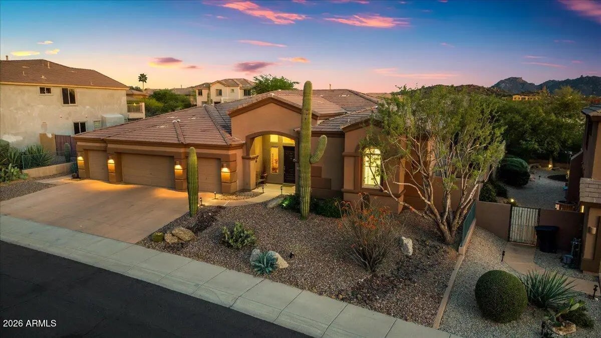 Experience refined desert living in this beautifully maintained single-level home tucked away on a quiet cul-de-sac in North Scottsdale's sought-after Desert Vista community.Designed with both comfort and functionality in mind, this split floor plan offers 4 bedrooms, 3 full baths, a private den, and an exceptional 4-car garage--ideal for storage, hobbies, or car enthusiasts. At the heart of the home, the expansive kitchen opens effortlessly to the main living spaces, creating a seamless setting for entertaining and everyday living, complete with stainless steel appliances and generous prep space. The primary suite is a peaceful retreat, featuring dual walk-in closets and a thoughtfully redesigned bathroom with sleek walk-in shower, freestanding soaking tub, contemporary vanities, granite surfaces, and wood-look tile flooring. Step outside and unwind in your backyard sanctuary, where sweeping views of Pinnacle Peak and Troon Mountain provide a stunning desert backdrop. Perfectly positioned near Troon North Golf Club and some of Scottsdale's most iconic hiking destinations--including Pinnacle Peak, Brown's Ranch, and Tom's Thumb--this home offers a rare blend of privacy, convenience, and natural beauty. Enjoy the best of North Scottsdale living in a home that truly has it all.