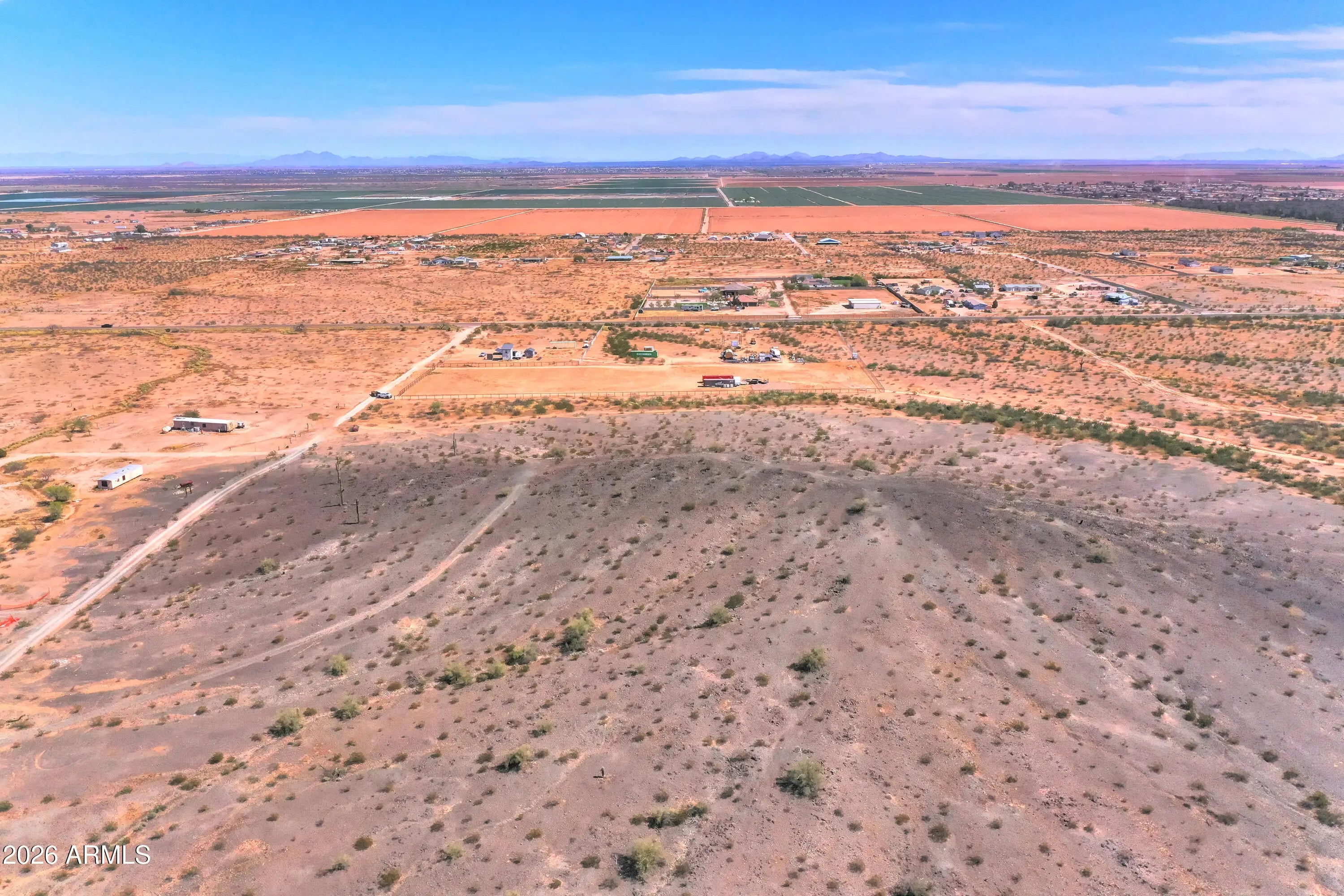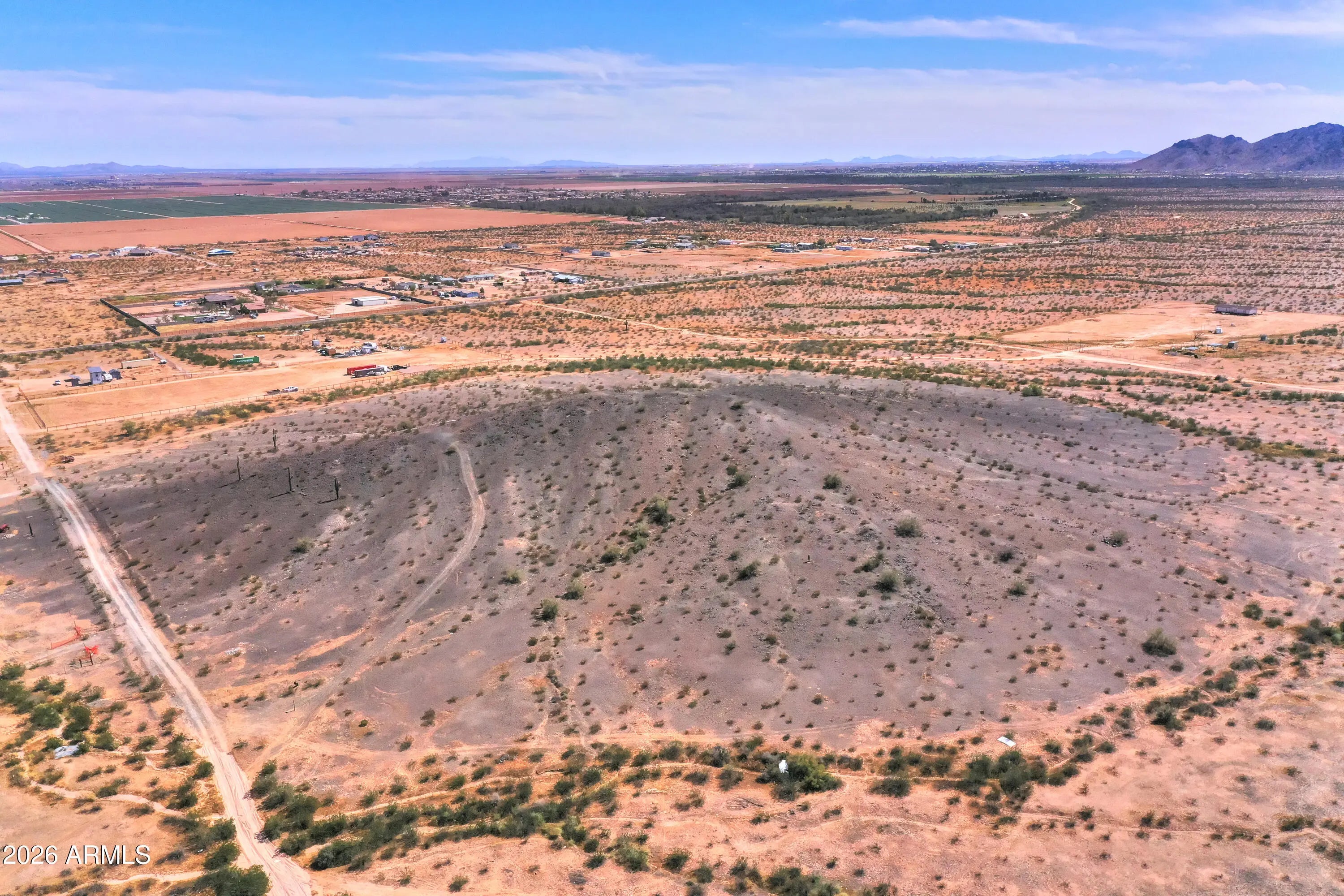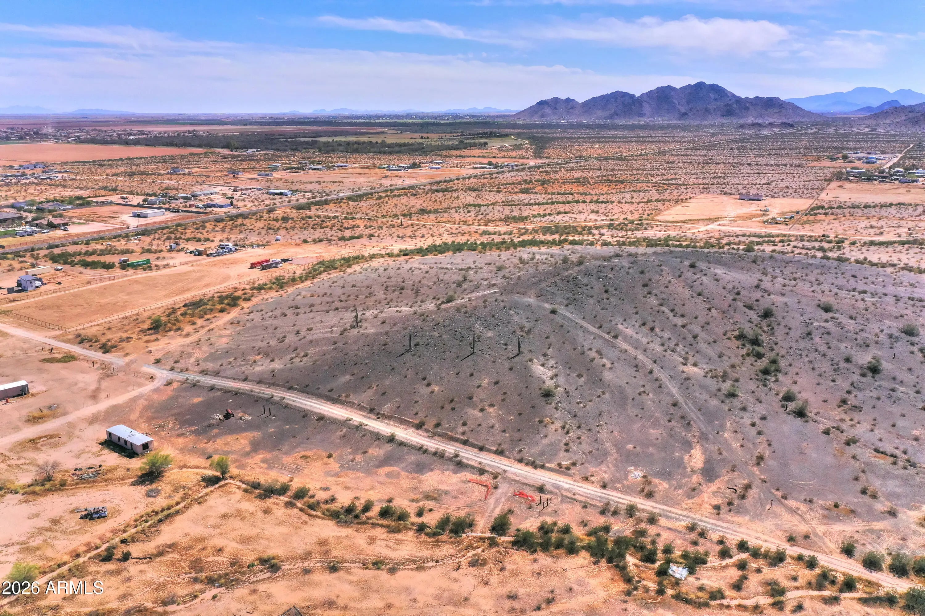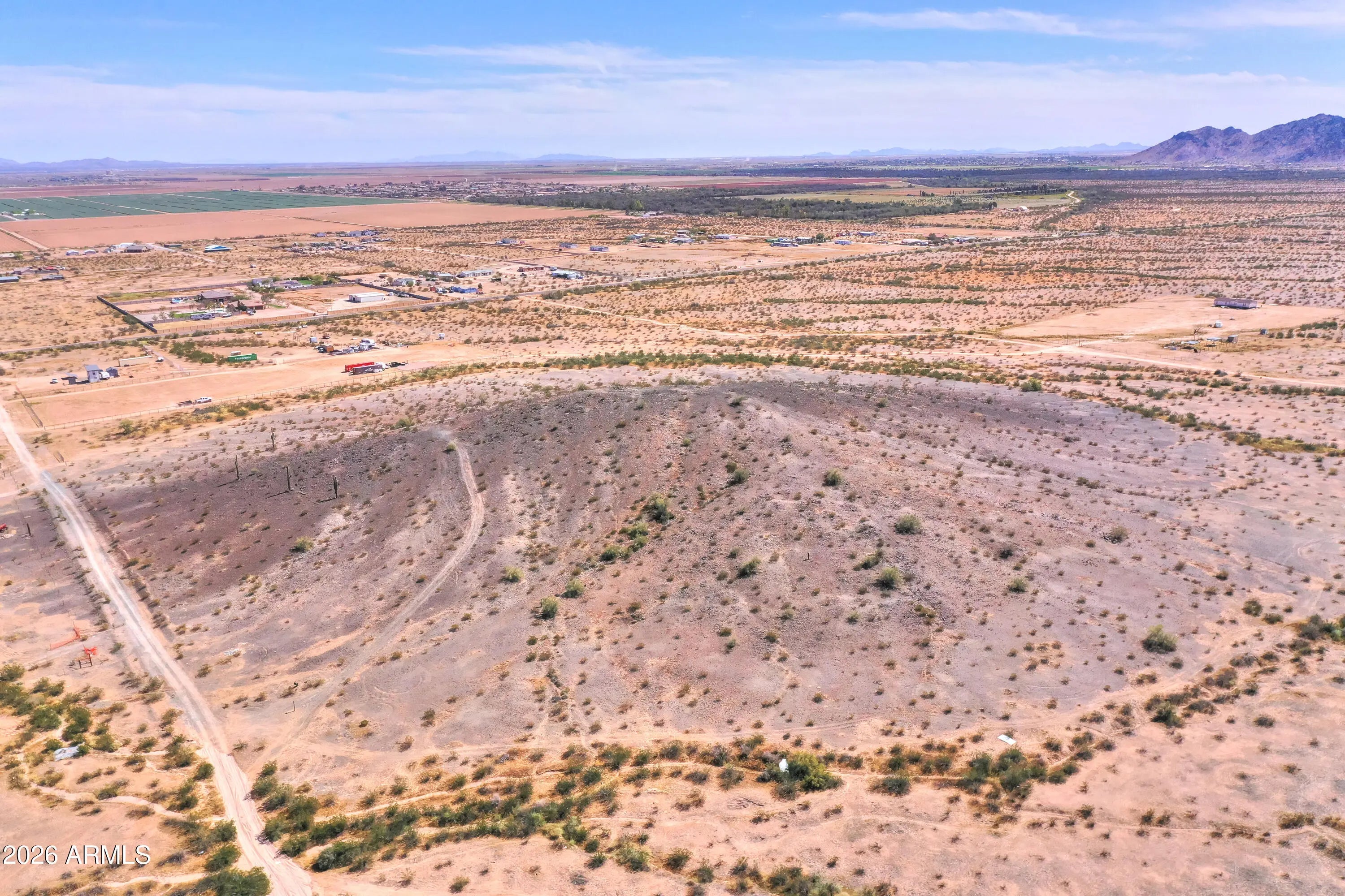 Nearly 10-acre elevated parcel in Maricopa offering expansive mountain views and natural desert surroundings. Property sits on a hill, providing added privacy, open sightlines, and multiple potential building sites. Located within close proximity to the City of Maricopa for convenient access to shopping, dining, and services, while still maintaining a rural feel. Ideal for a custom home, ranch setup, or future investment. No HOA allows flexibility for animals, RVs, equipment, and additional structures.