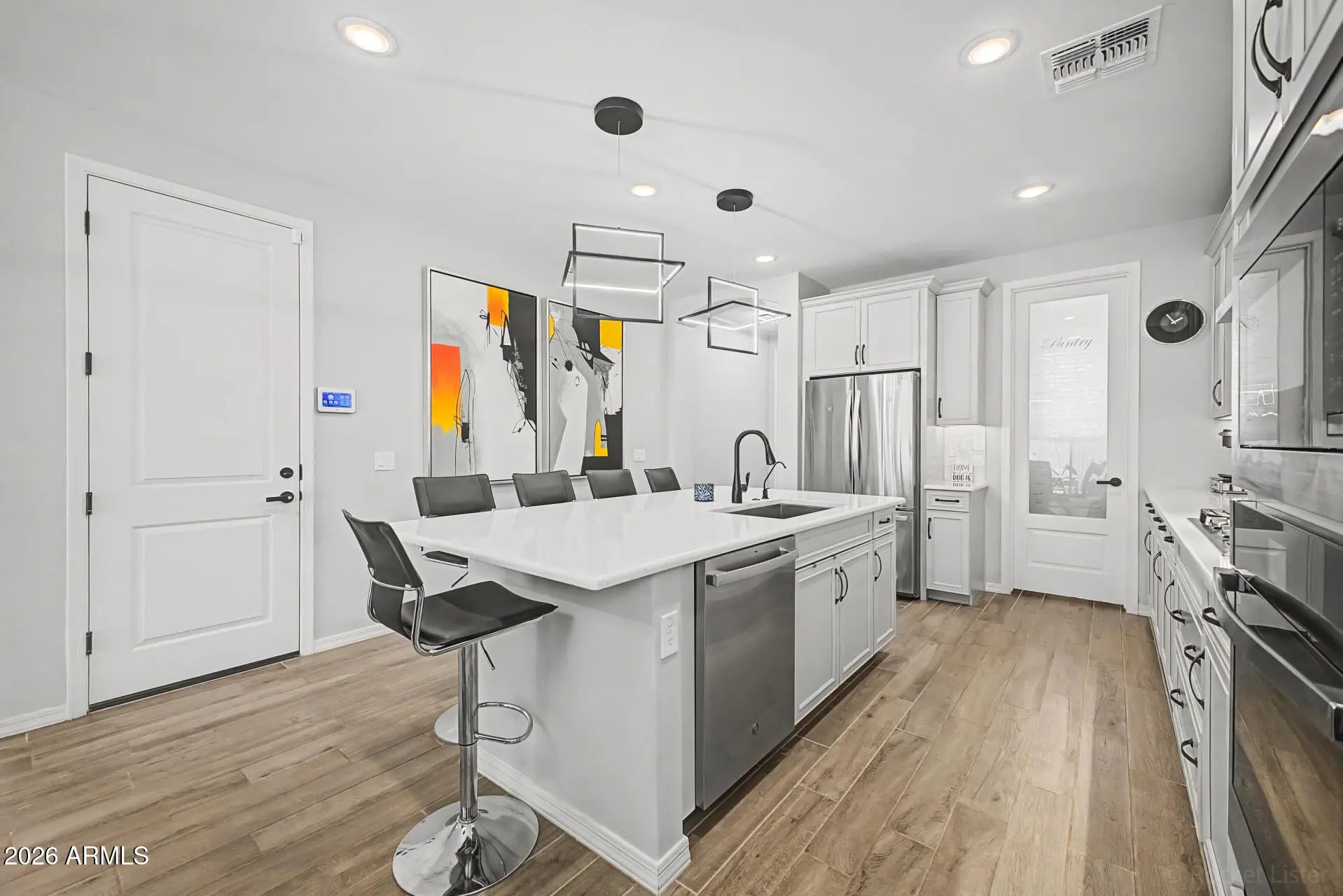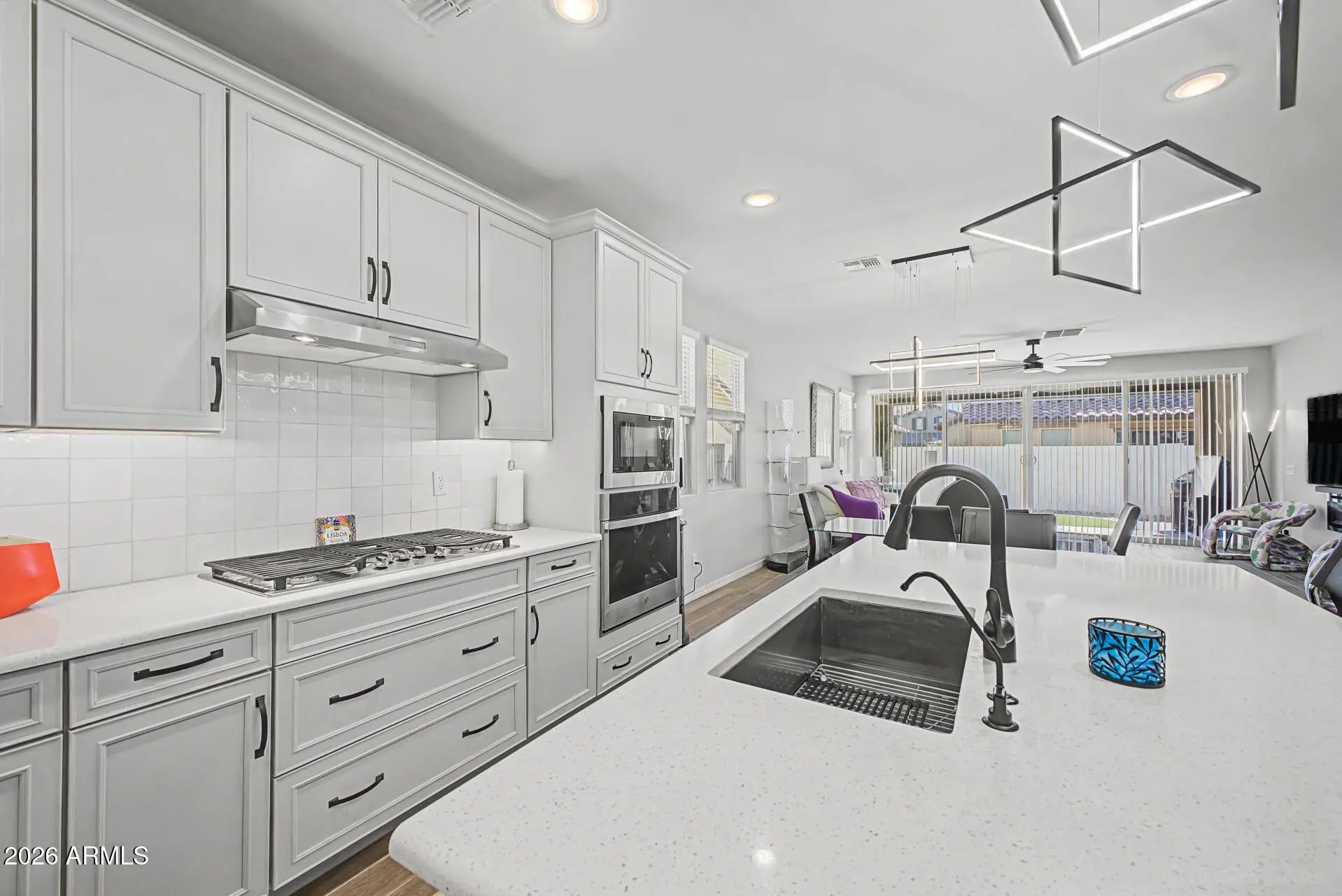 Model-Perfect Home in Escalante - Move-In Ready! Built in 2022, this upgraded 4 bed, 3 bath home shows like a model and offers a flexible layout w/ a full bed & bath downstairs. Open-concept design w/ upgraded flooring, stylish lighting, and a modern kitchen featuring white cabinetry, quartz counters, SS appliances, and a large island. Upstairs includes a spacious loft, oversized secondary bedrooms, and a primary suite with dual sinks, Lg walk-in shower, and Lg closet. Laundry room w/ cabinets and sink. Enjoy indoor-outdoor living with a multi-panel glass slider leading to a beautifully finished backyard w/ turf, tiled covered patio, and roller shades. Epoxy garage floor adds a clean, polished touch. Located in Escalante w/ resort-style amenities including pool, splash pad, parks & more.