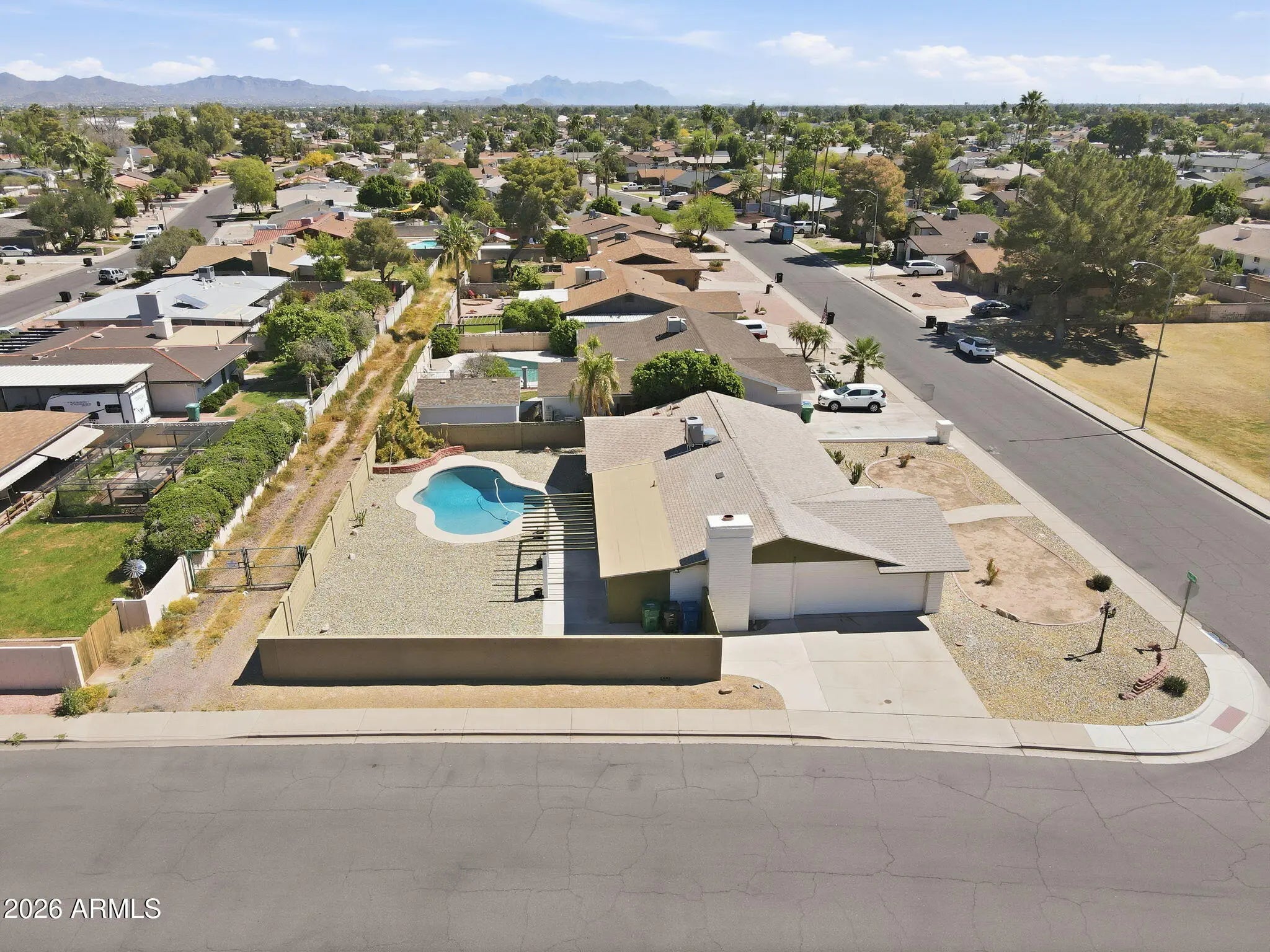 Charming updated NE Mesa home with NO HOA on a large lot! Fresh interior paint and updated luxury vinyl plank floors give this home a clean, move-in ready feel. Enjoy Arizona living in the oversized private backyard featuring an updated sparkling swimming pool . This backyard oasis is complete with large covered patio and mature landscaping.. This oversized lot offers room for RV parking, toys, or expansion. Conveniently located near parks, shopping, dining, and schools. A rare find with space, flexibility, and no HOA restrictions. Prime location with freeway access, close to shopping, Falcon field and major employers.