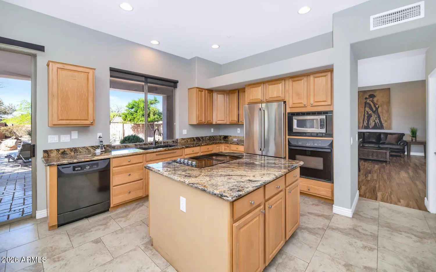 Welcome to refined desert living in this beautifully upgraded 4-bedroom, 2-bath home, perfectly positioned on a premium corner lot in a sought-after gated Scottsdale community. Designed for both comfort and style, this home features tile flooring throughout, two spacious living areas, and a split primary suite with private patio access. The remodeled ensuite offers a spa-like retreat with a soaking tub, tiled walk-in shower, and custom closet. The kitchen is equipped with granite countertops, an island cooktop, built-in oven and microwave, stainless fridge, and reverse osmosis. Step outside to your resort-style backyard featuring a sparkling pool with waterfall, expansive paver decking, turf landscaping, and a covered patio--perfect for entertaining or relaxing under the Arizona sun. Located in North Scottsdale, McDowell Mountain Ranch is a premier master-planned community set within 3,200 acres of the Sonoran Preserve. Surrounded by natural desert beauty, residents enjoy access to scenic hiking trails, abundant wildlife, and thoughtfully designed amenities. The community offers two expansive parks, a community and recreation center, pools, spas, tennis, pickleball, basketball courts, and playgrounds. While it feels like a peaceful retreat, you're just minutes from world-class golf, upscale shopping, and fine dining, making McDowell Mountain Ranch an exceptional place to make your home.