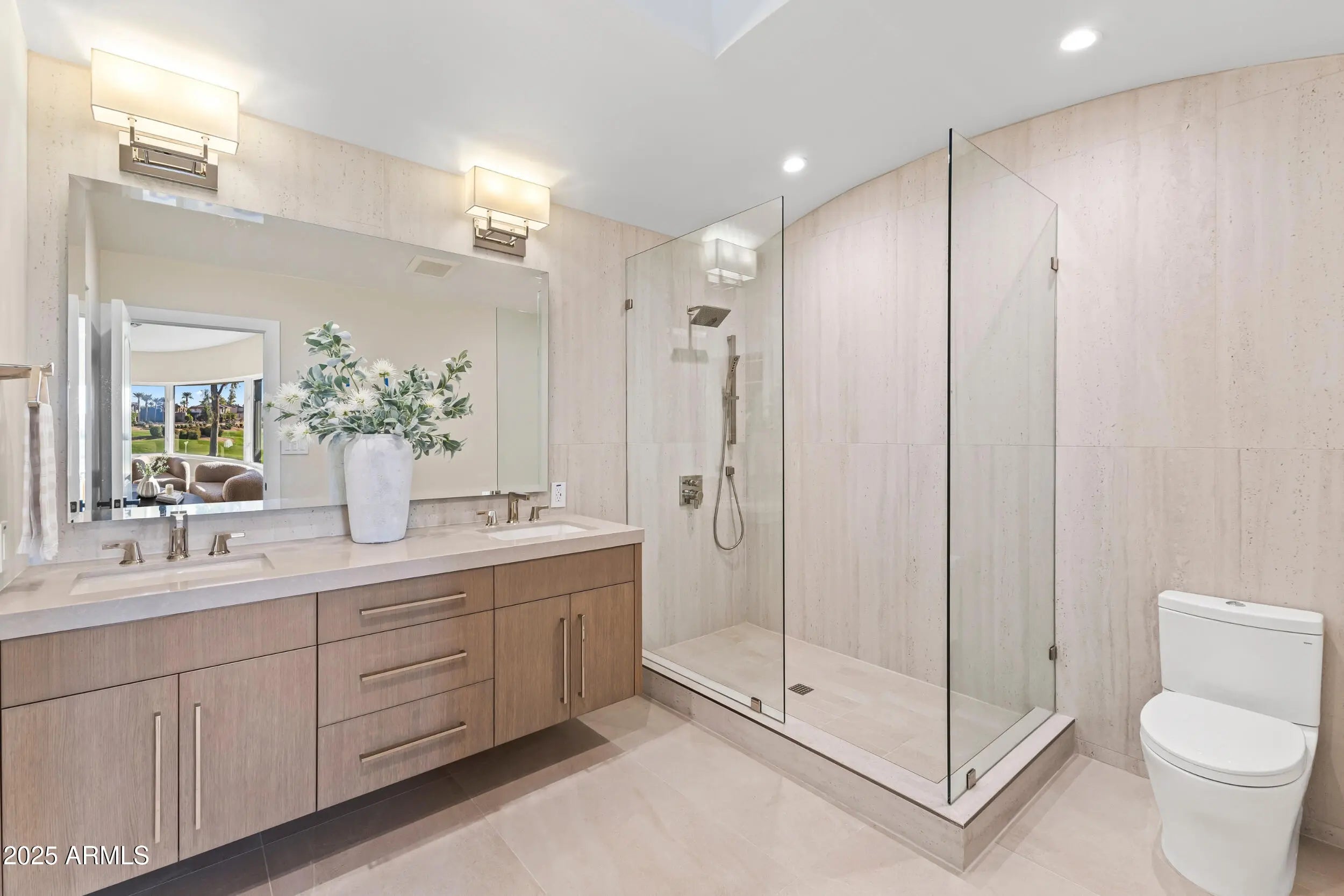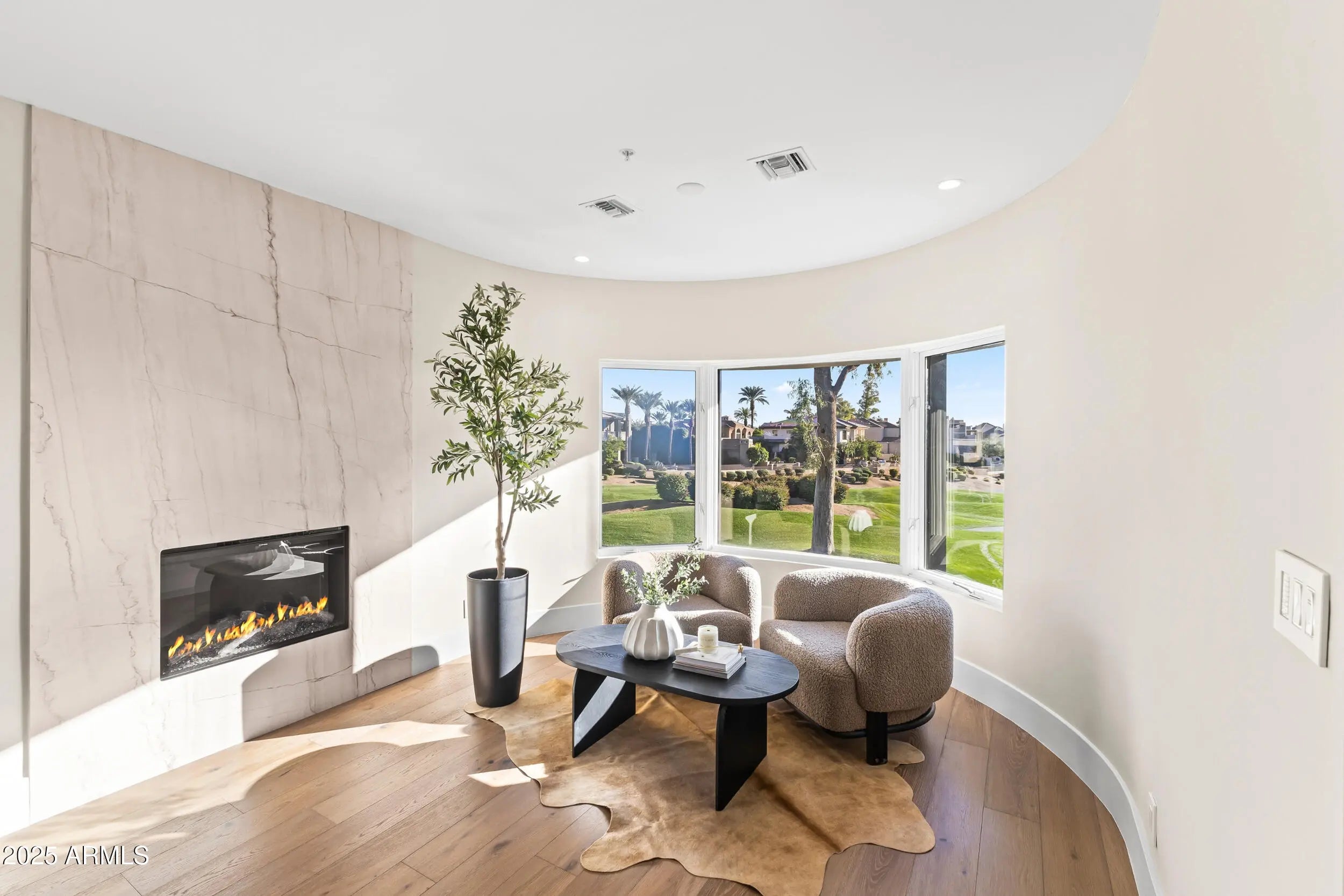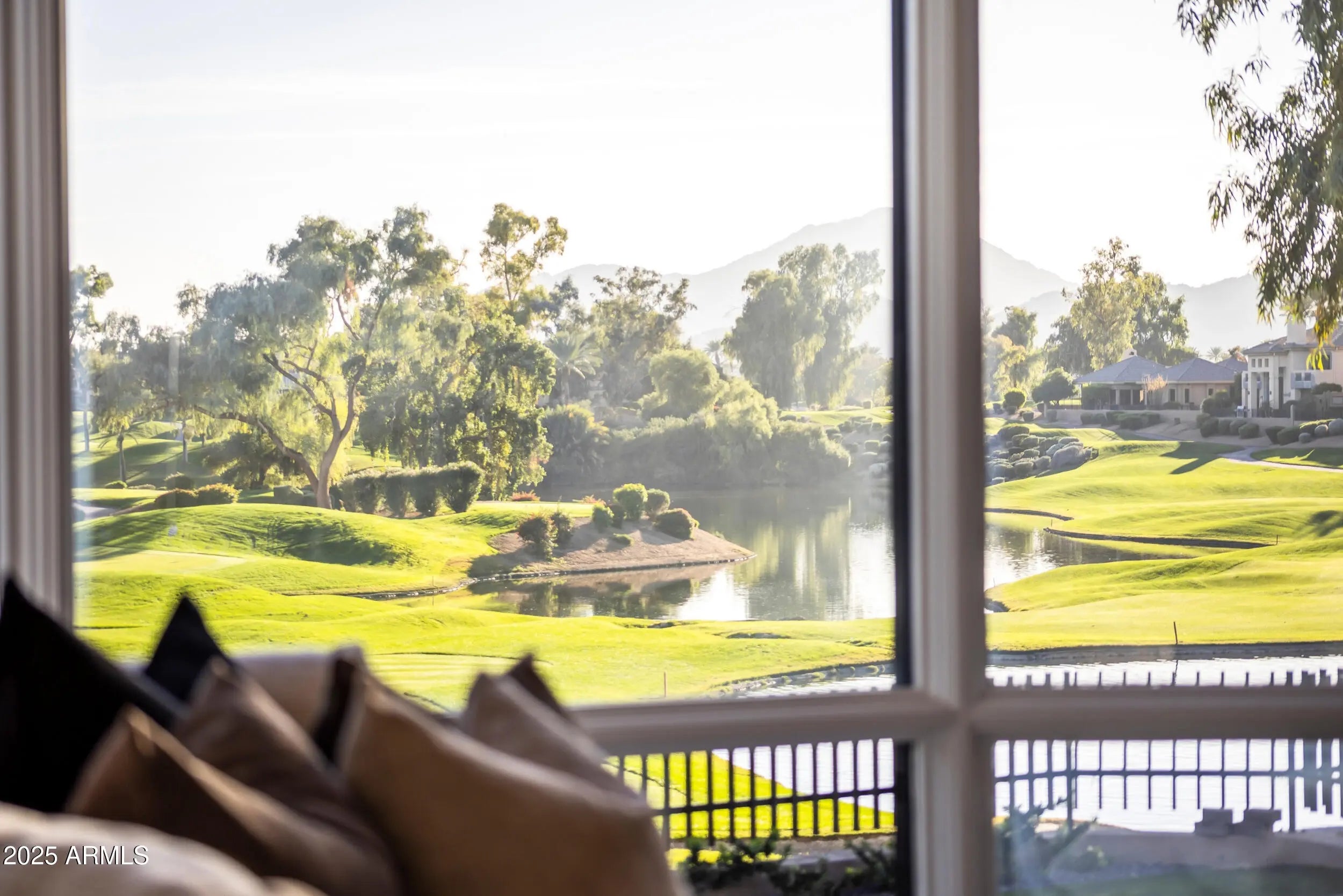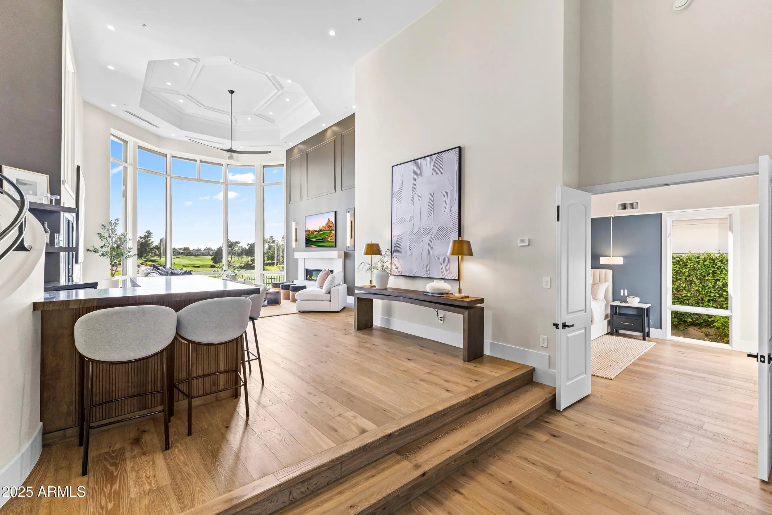 Inside GAINEY RANCH sits a fully transformed 7,653sq ft estate with UNOBSTRUCTED, front-row panoramas of Camelback Mountain and the 7th & 8th holes of the Lakes Golf Course. Clean lines guide you through warm light, calm flow, and refined finishes. The kitchen brings rift-cut oak cabinets, Taj Mahal stone, Thermador appliances, and contemporary design. The main-level suite provides a stone tub, rain shower, dual vanities, and a fireside nook. Four en-suite rooms support guests with ease. The lower level adds a gym with commercial grade flooring, mirrored walls and a tiered theater with Italian leather seating. 24/7 guarded privacy, Estate Club amenities (tennis, fitness, pool, events), and optional Gainey Ranch Golf Club membership—all minutes from Scottsdale's finest dining & shopping.