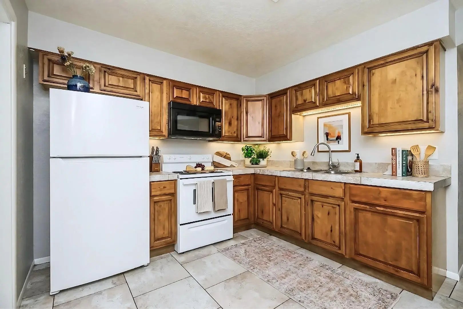 Nestled in the heart of Mesa, this charming 2-bedrooms, 1-bath downstairs unit offers the perfect blend of comfort and convenience. Step inside to a spacious open layout adorned with all-tile flooring, creating a sleek, low-maintenance living space. The bright and inviting kitchen features classic white appliances and ample wood cabinetry, providing plenty of storage for all your culinary needs. The unit also includes one covered parking spot, ensuring your vehicle stays protected from the elements. Ideally located, you'll enjoy quick access to major freeways and the light rail system, making commuting a breeze. Plus, with downtown Mesa just minutes away, you're never far from shopping centers, restaurants, entertainment venues, and schools. We welcome all furry friends of any size! *Please note: this home is unfurnished.* *Photos may include virtual staging to illustrate potential room use.*
