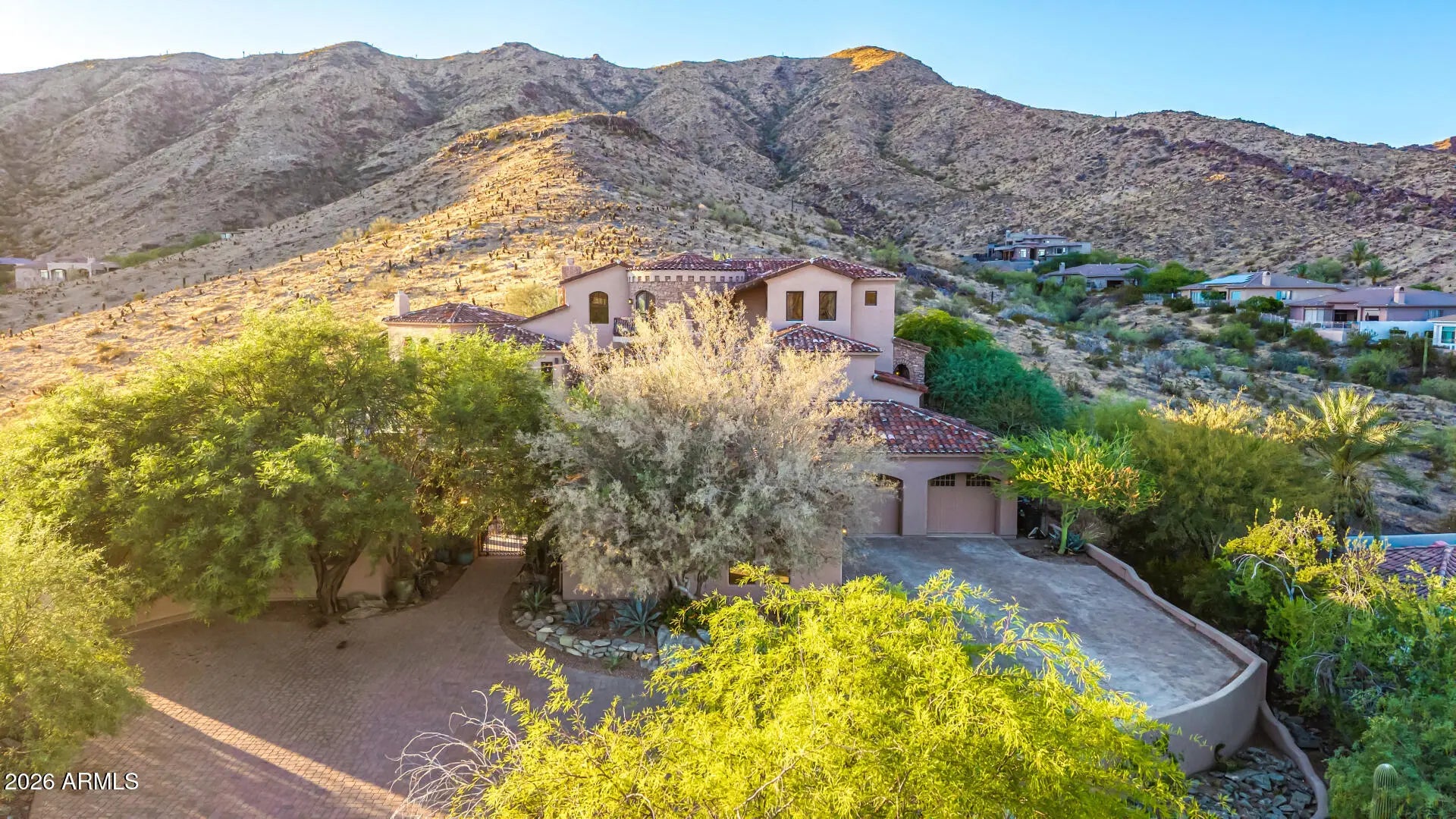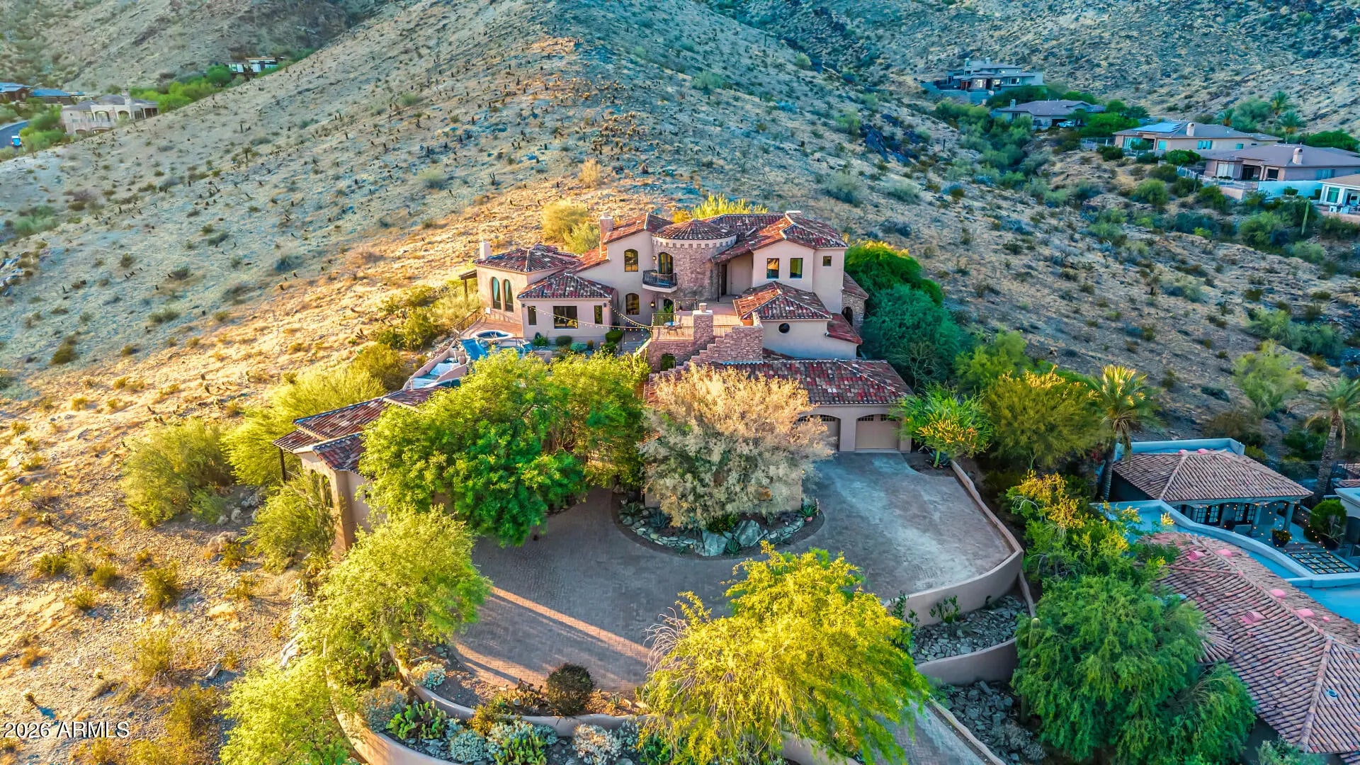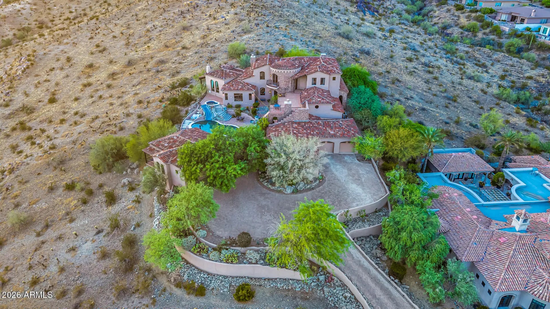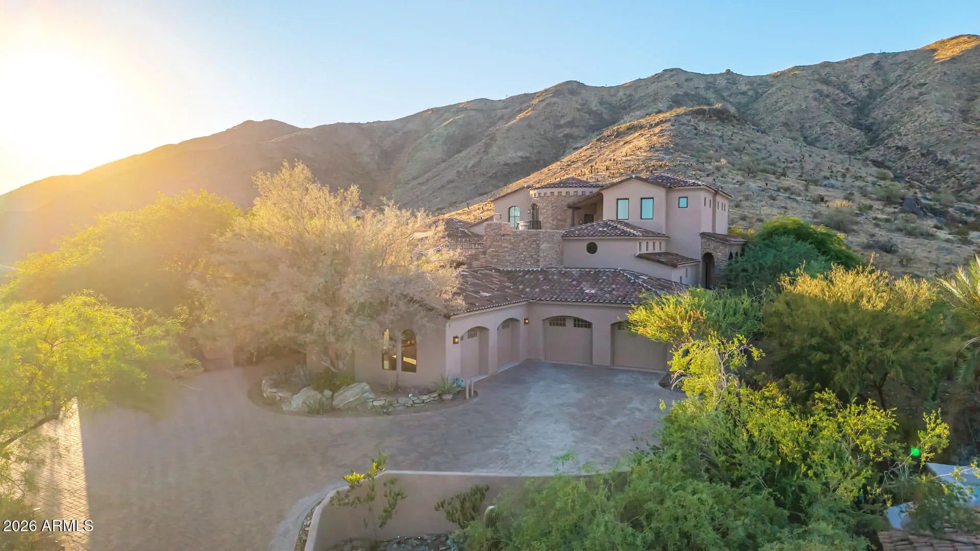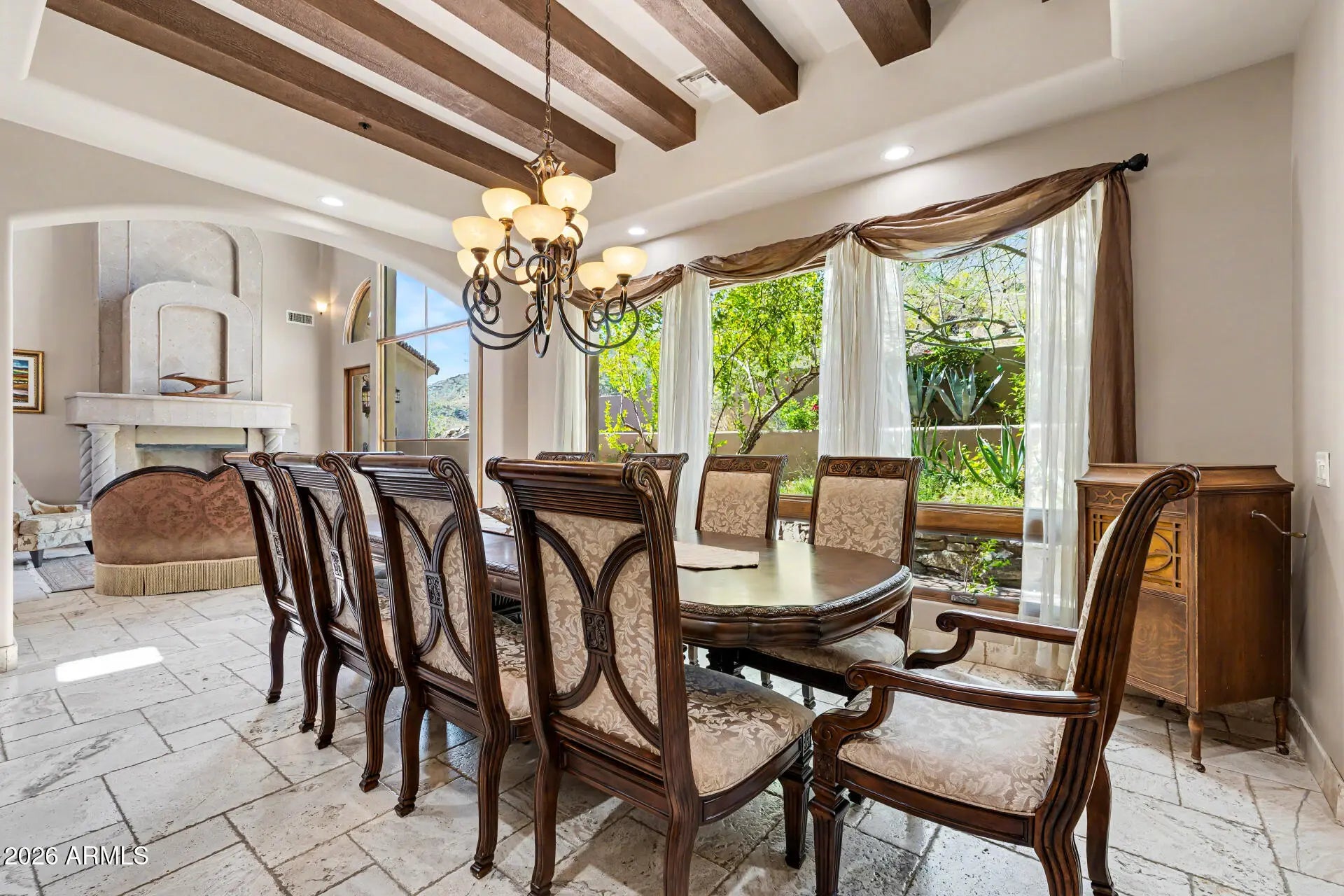 This is the one! Experience the luxury, peace, and breathtaking mountain views of this stunning residence. From the gorgeous facade, rare 6-car garage with a huge paver driveway, to the beautifully manicured landscape, everything about this home is sure to impress. The generous living spaces are filled with natural light, boasting elegant touches throughout-soaring ceilings, dramatic arches, a fireplace to add warmth, floor-to-ceiling windows, exposed beams that add character, and a soothing palette, making every space ideal for entertaining and comfortable everyday living. The kitchen is a chef's dream, complete with abundant cabinetry adorned with crown molding, tile backsplash, granite countertops, a large walk-in pantry, high-end appliances, and an island, perfect for meal prep and mid midnight snacks. The main bedroom is a true retreat, including a fireplace to ensure cozy winter nights, large windows that offer beautiful views, a spa-like bathroom with a separate shower & tub, and a walk-in closet for all your belongings. The den and loft add flexibility, providing space and privacy to work from home, study, or engage in your hobbies in peace. Another great feature of this home is the huge guest quarters, with spacious living areas complete with a fireplace, a separate exit, and a kitchenette. The backyard oasis is a dream, offering a serene landscape that pairs beautifully with the mountain views you can enjoy from the view deck and covered patio with a fireplace. Host gatherings and relax in the ample seating space with pavers, and let's not forget the sparkling pool and spa! This gem truly has it all! Just WOW!