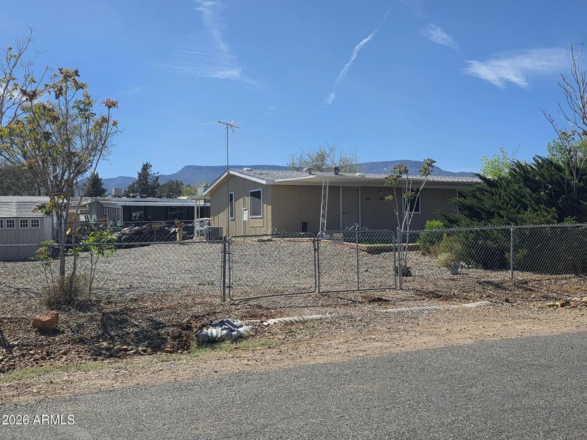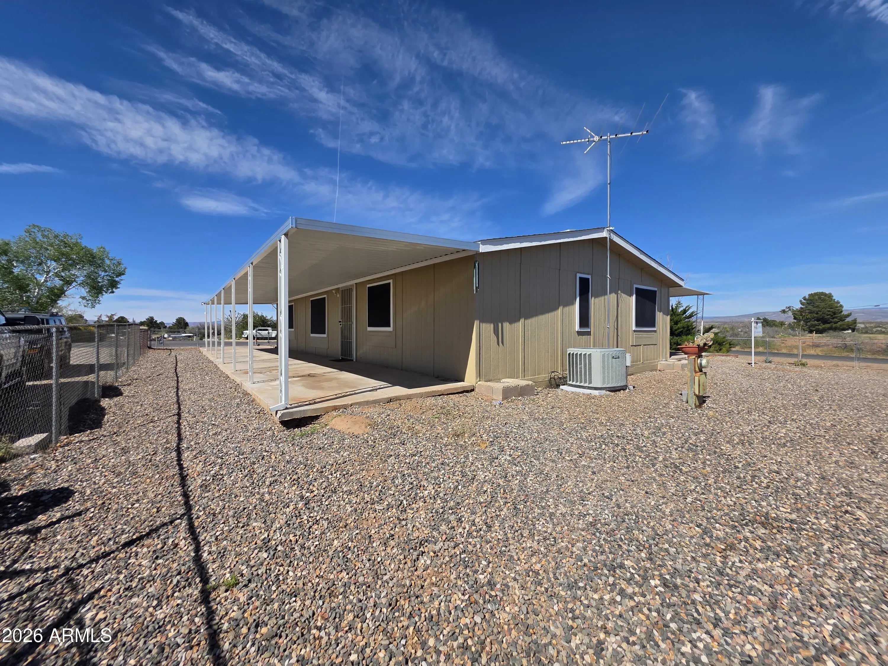 this spacious two bedroom two bath home is on a corner lot and it has a great view of the mountains in the distance. It has a covered back patio to enjoy the evenings and the views or to enjoy a hot cup of coffee in the morning. There is easy access to AZ-260 which leads to cottonwood and is close to shopping, tourist attractions, the river, old town and much more.