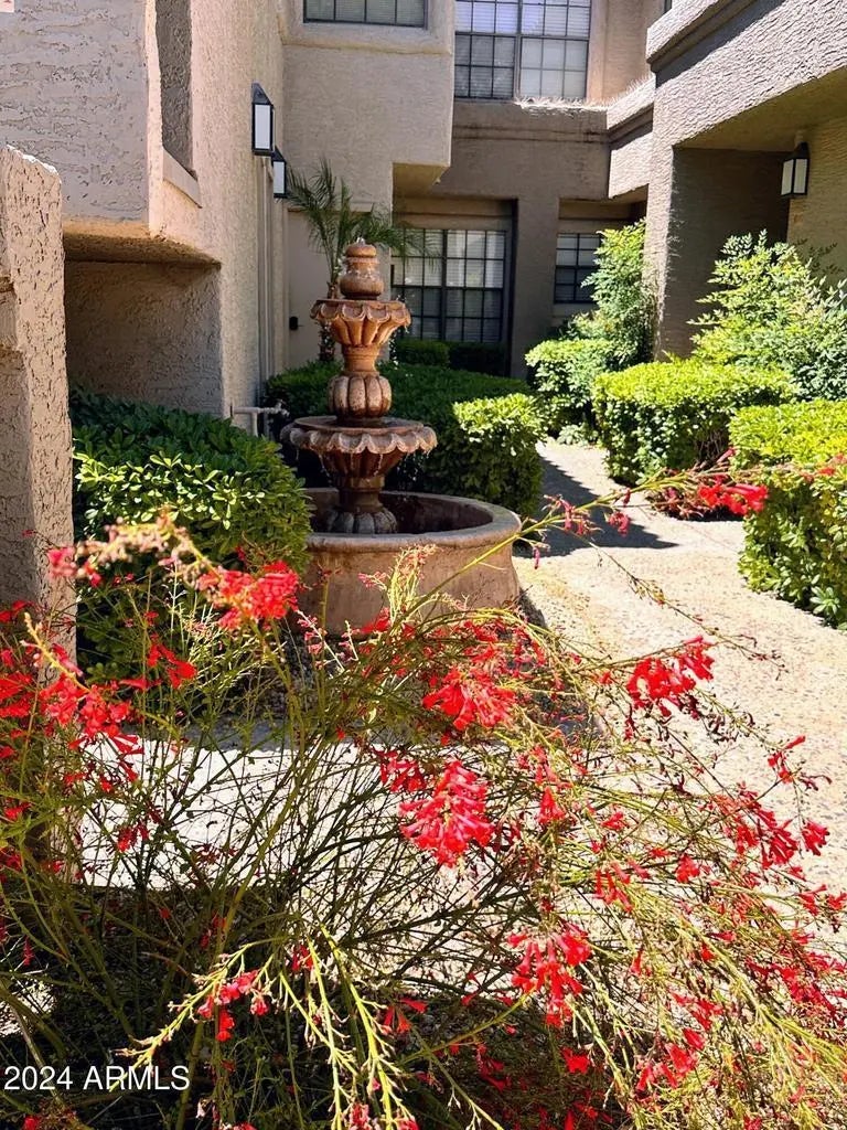 Great opportunity to live in & enjoy Scottsdale Ranch and The Fountains lifestyle. Community has beautiful landscaping with water features, fountains, heated pool & heated spa. You can rent this fully furnished updated 2 bdrms, 2.5 baths, 1 garage. Get cozy in the great room with the fireplace, flat screen TV and door to the patio. Perfect round dining room table and chairs to enjoy your meals. Dining area is open to great room and kitchen. Kitchen with granite counters, backsplash, and black appliances. Master bedroom ensuite and 2nd bedroom & hall bathroom are upstairs. There is a built-in desk/office space in the hall. Come enjoy your Scottsdale home.