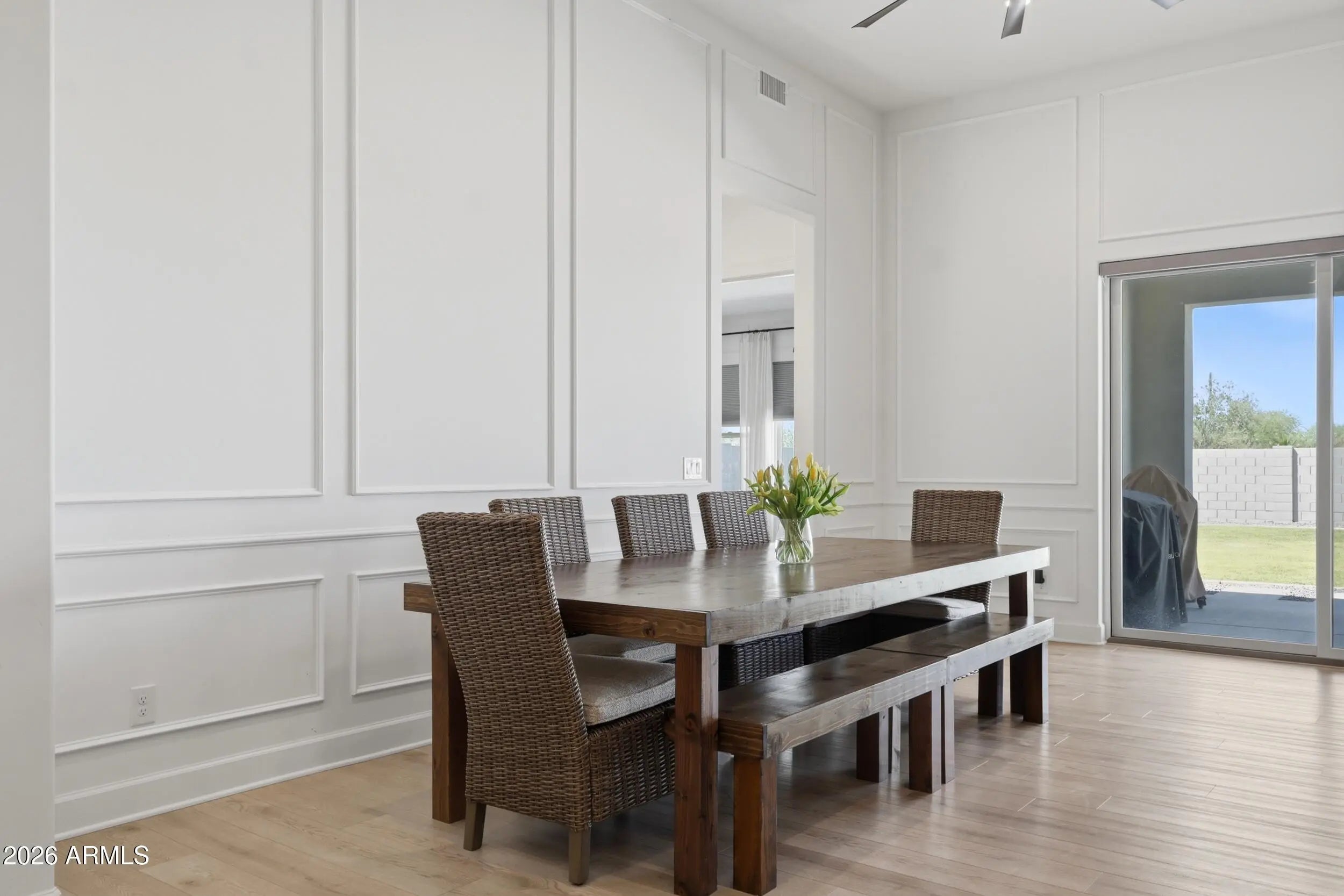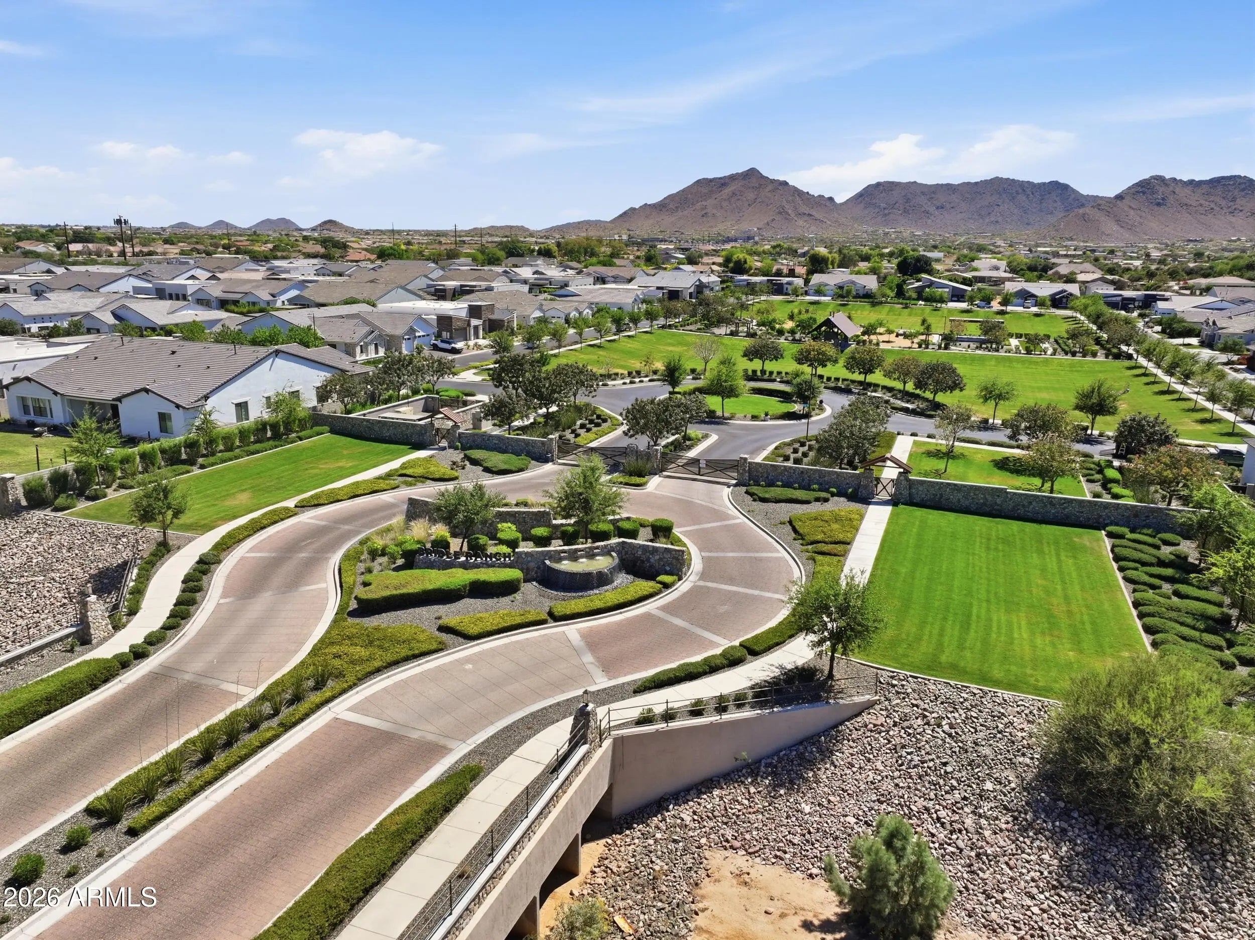 Nestled on one of the most private and coveted lots in the gated community of Bridle Ranch, this stunning Queen Creek residence delivers the pinnacle of Arizona living. With no rear neighbors and no neighbors on one side, the home offers a rare sense of seclusion that is truly hard to find. The backyard showcases breathtaking mountain views, creating the perfect backdrop for outdoor entertaining and relaxation under the Arizona sky. Inside, discover thoughtfully designed living spaces, a gourmet kitchen, and a luxurious primary suite. The home also features an attached casita which is ideal for extended family or visiting guests, adding tremendous flexibility and a true sense of home for everyone who walks through the door. The gated entry of Bridle Ranch provides security and peace of mind, while residents enjoy scenic walking and biking paths, bocce ball courts, playgrounds, and vibrant social gathering spaces. Directly across the street, Pecan Lake Entertainment offers go-karts, a ropes course, putting greens, axe throwing, escape rooms, signature restaurants, and live entertainment, making every weekend feel like a getaway. Queen Creek continues to emerge as one of the East Valley's most desirable destinations, and this home places you at the very heart of it all. With its unmatched privacy, stunning views, and thoughtful design, this is more than a home. It is a lifestyle.