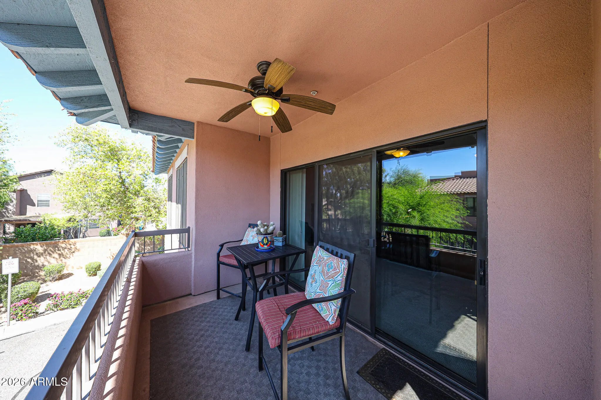 Stay Cool in the Arizona Desert! This 2 bedroom condo features two brand new 14 SEER HVAC systems keeping every corner perfectly comfortable year round. Completely move in ready with all the work done, the interior is freshly painted and features porcelain planked wood look tile flooring for easy care, coupled with new beautiful cushy carpeting for warmth and style. The kitchen shines with stainless steel appliances including refrigerator, microwave, and dishwasher, plus a Maytag washer and dryer, all included. Furnishings available for the right offer making this home truly turnkey. Resort style living is steps away with sparkling pools, scenic walking paths, a fitness center, clubhouse with rec room, media room, and a relaxing spa. A 2 car garage and prime Desert Ridge location complete