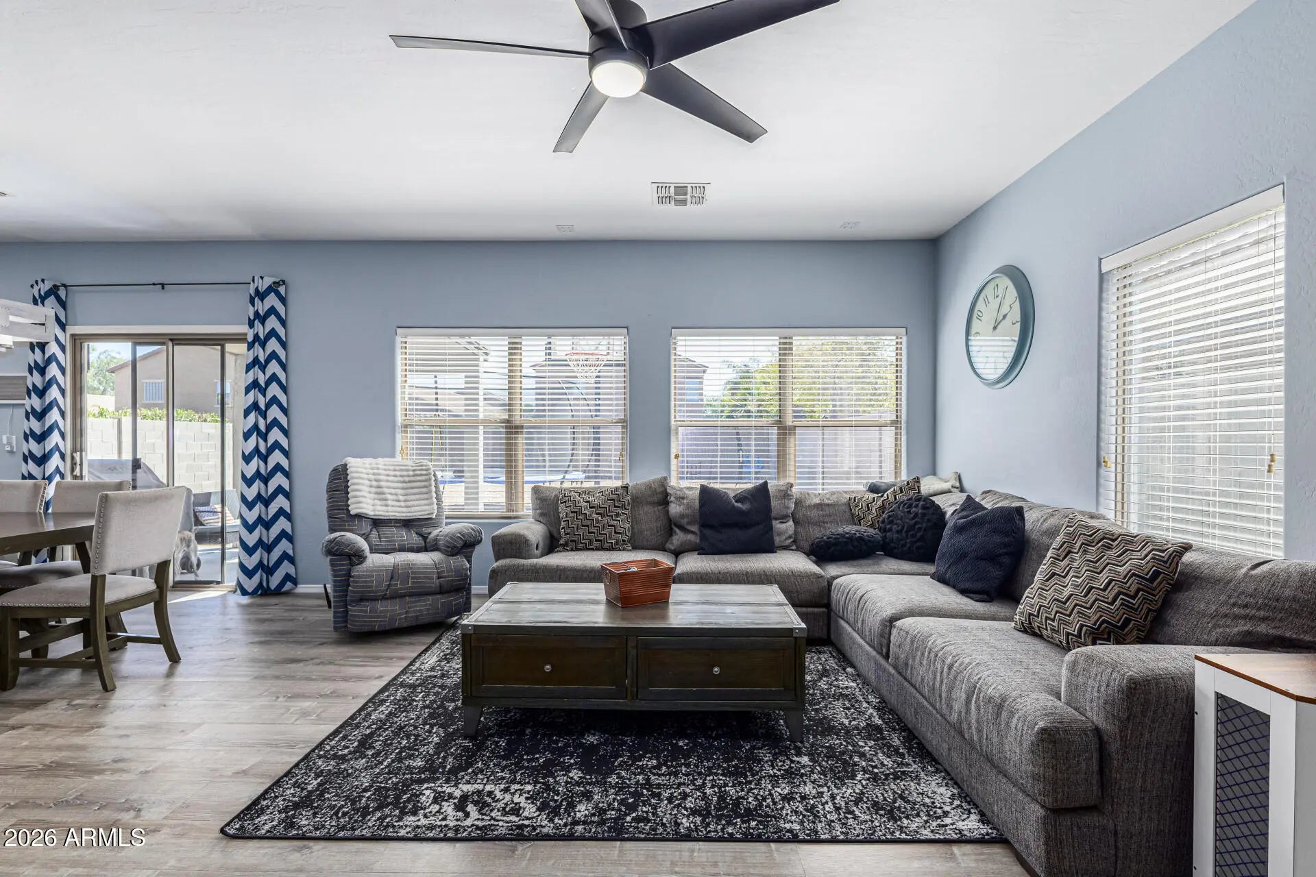 Welcome to this beautifully maintained home located in the desirable Johnson Ranch community of San Tan Valley. This inviting residence offers a functional and open floor plan with 4 bedrooms and 2.5 bathrooms, designed for comfortable everyday living and effortless entertaining. The spacious great room flows seamlessly into the kitchen and dining area, where you'll find ample cabinetry, generous counter space, and a layout perfect for gathering with family and friends. The primary suite provides a relaxing retreat with a private en-suite bathroom and ample closet space, while the additional bedrooms offer flexibility for guests, a home office, or hobbies. Step outside to a low-maintenance backyard with plenty of room to enjoy Arizona's beautiful weather... whether relaxing under a covered patio or creating your ideal outdoor space. Located within Johnson Ranch, residents enjoy access to multiple community pools, golf, parks, walking paths, and recreational amenities. Conveniently situated near shopping, dining, and commuter routes, this home offers the perfect blend of comfort, community, and value. Don't miss this opportunity to own a wonderful home in one of San Tan Valley's most popular master-planned neighborhoods!