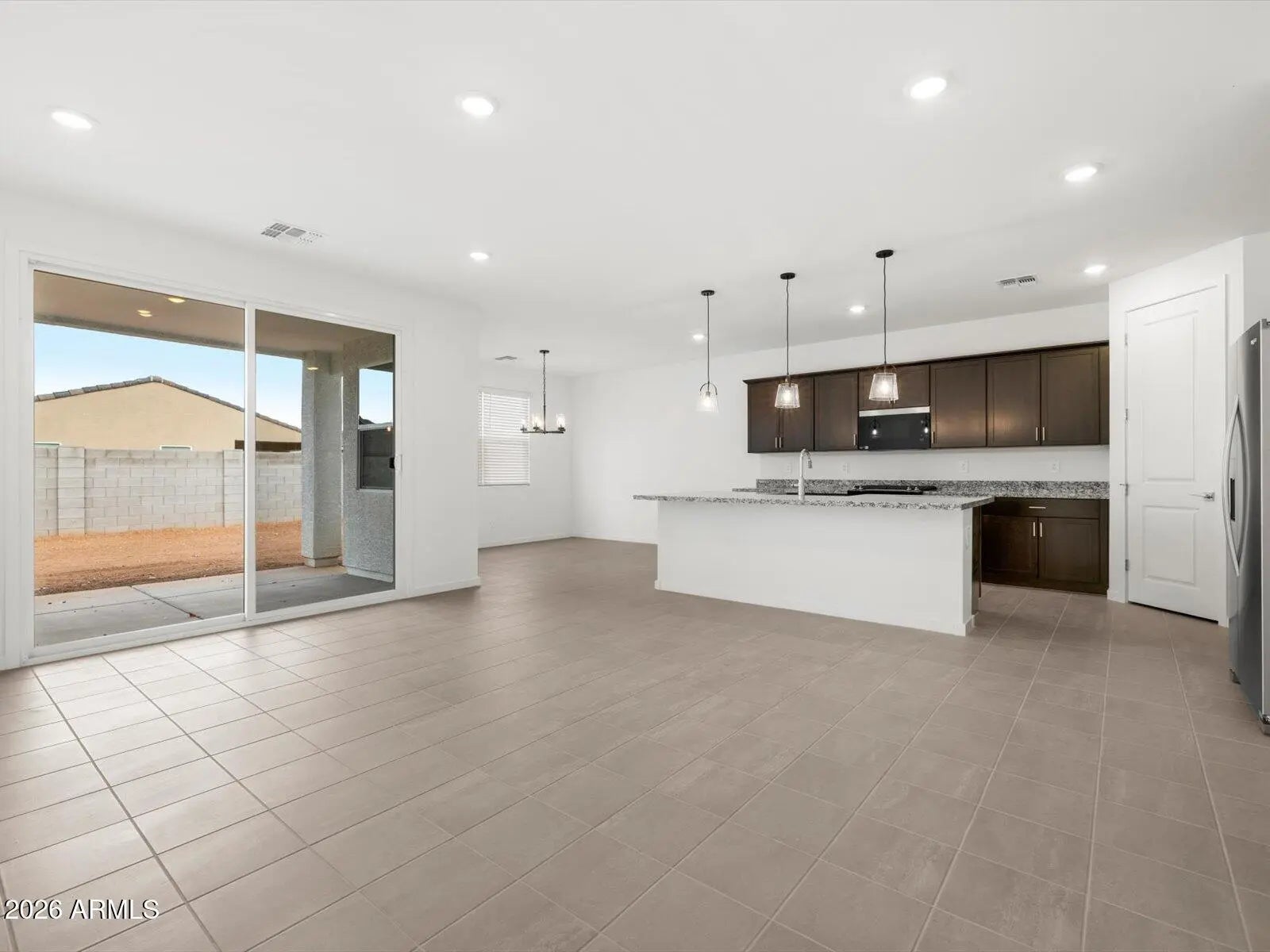 Looking for amenities? This community features numerous amenities resort style pools w/ water park, golf course, fitness center, dog park, ponds, pickleball and tennis courts + much more! This stunning home boasts 4 bedrms, 3 baths plus a large great room and dining space that takes center stage, providing an ideal setting for entertaining friends and family. The open layout encourages a seamless flow between these areas, creating a welcoming atmosphere for gatherings and socializing. Home features umber dark cabinets, granite counters and a generous amount of tile. Our move-in ready homes include a washer, dryer, fridge, and blinds, plus they can be closing-ready in 60 days or less - guaranteed. Each of our homes is built with innovative, energy-efficient features.