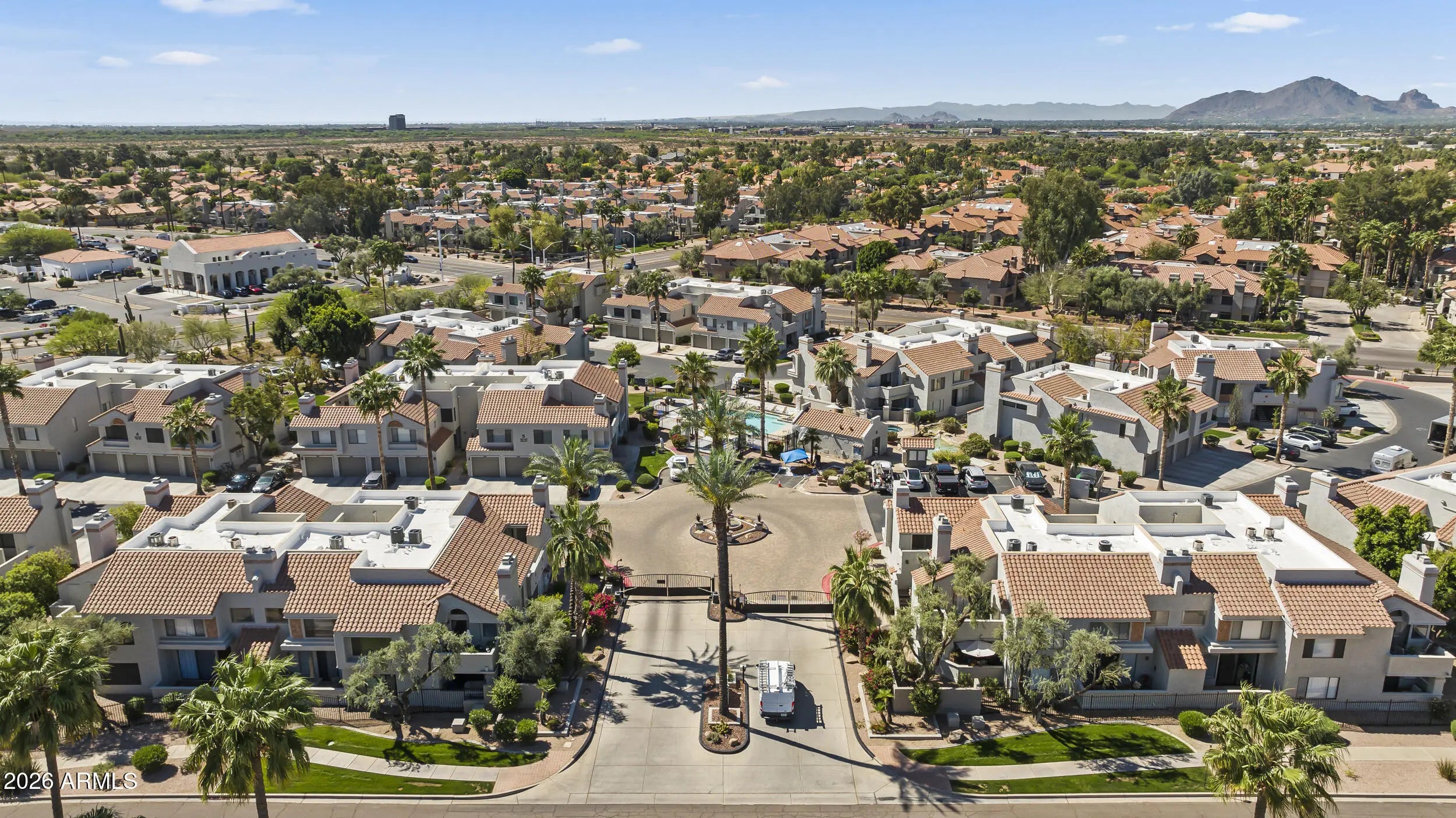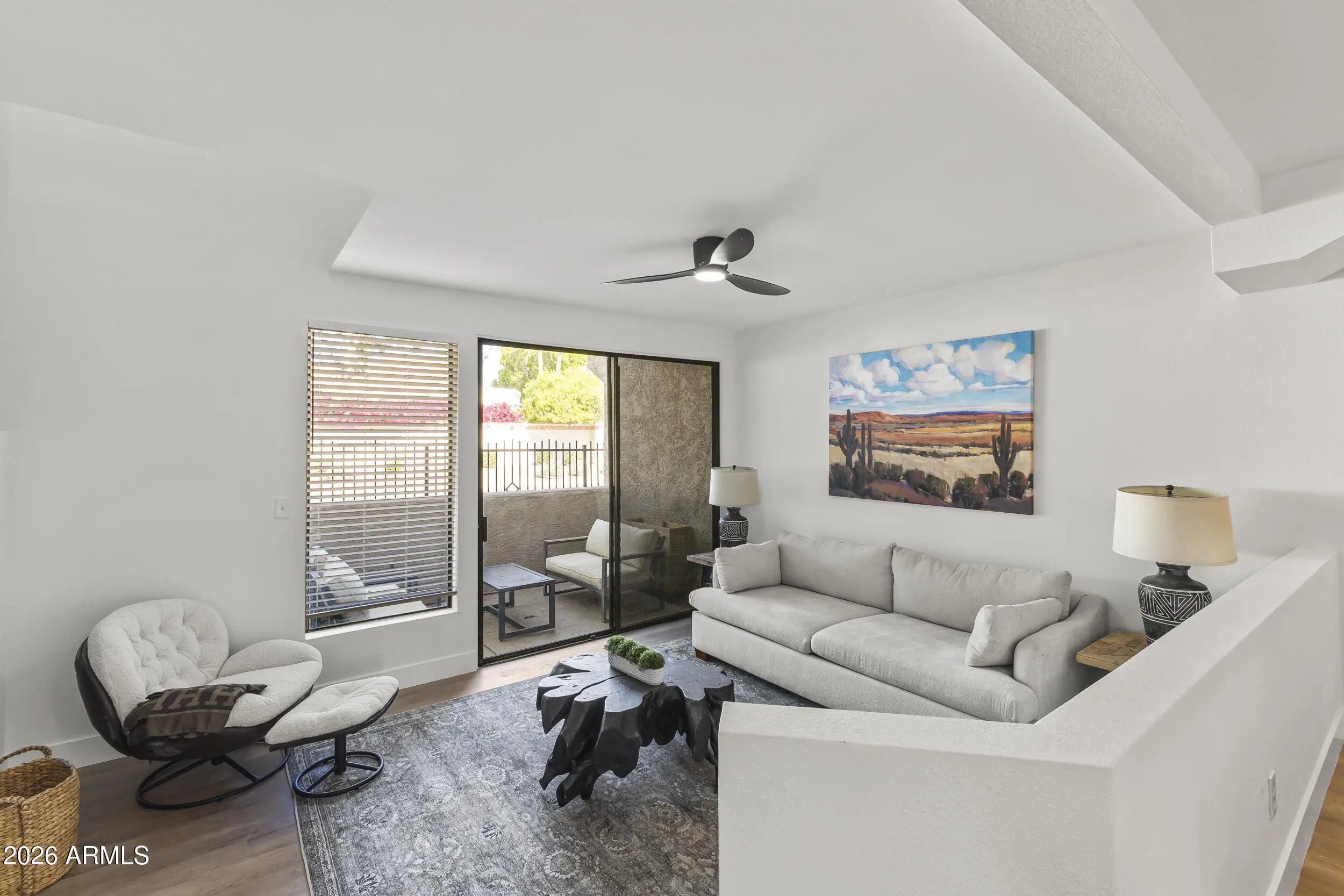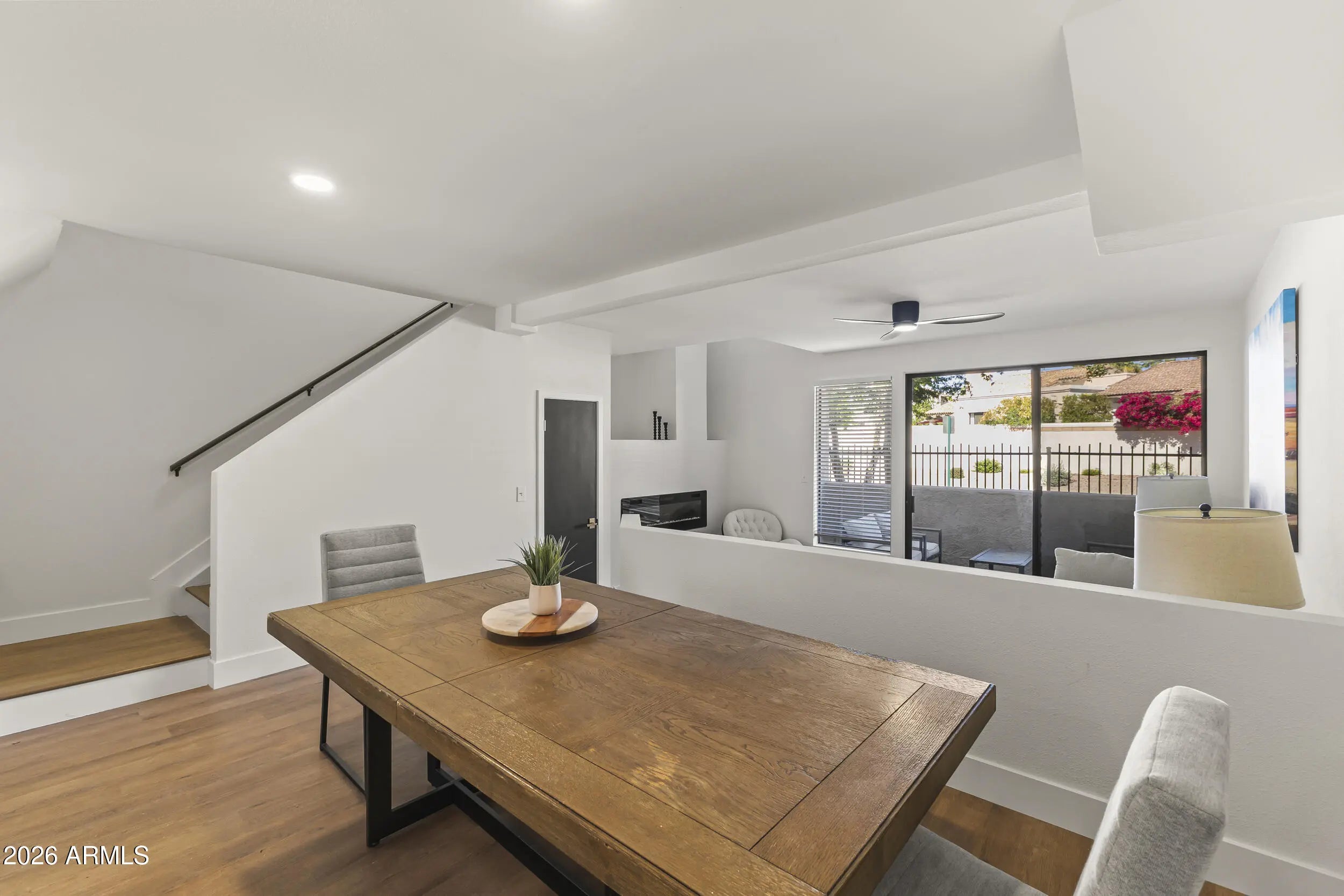 Fresh, modern, and effortlessly livable. This fully renovated, never-occupied, ready to roll townhouse-style condo at The Venetian features clean finishes, new flooring, and a functional open layout that is drenched in light. Enjoy a formal dining space, sunken living room with fireplace, and a bright kitchen with quartz countertops, farmhouse sink, and warm contemporary tones. Two primary suites with walk-in closets and private baths provide comfort and flexibility. Located in Scottsdale Ranch near shopping, parks, and Loop 101 for easy access to it all.