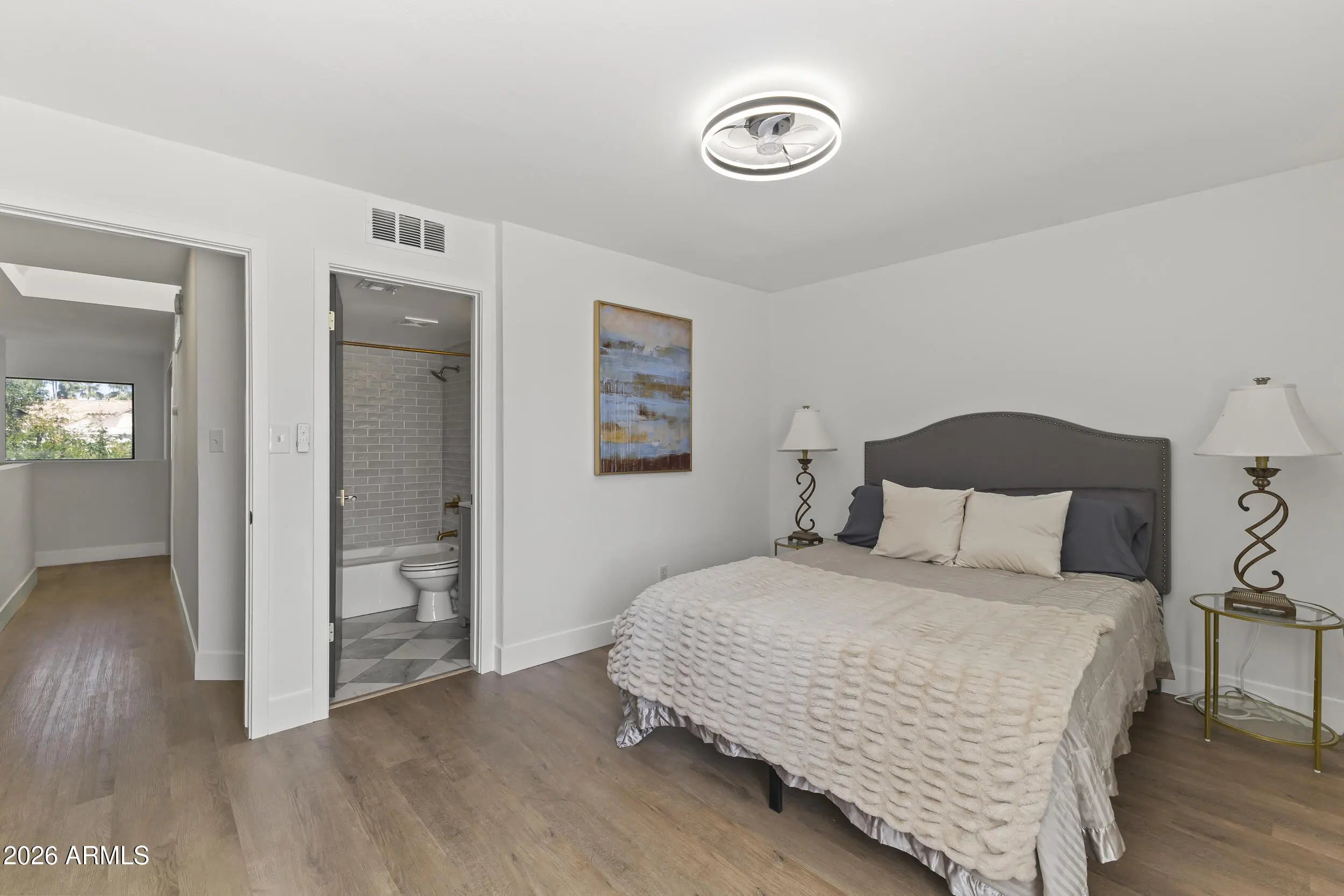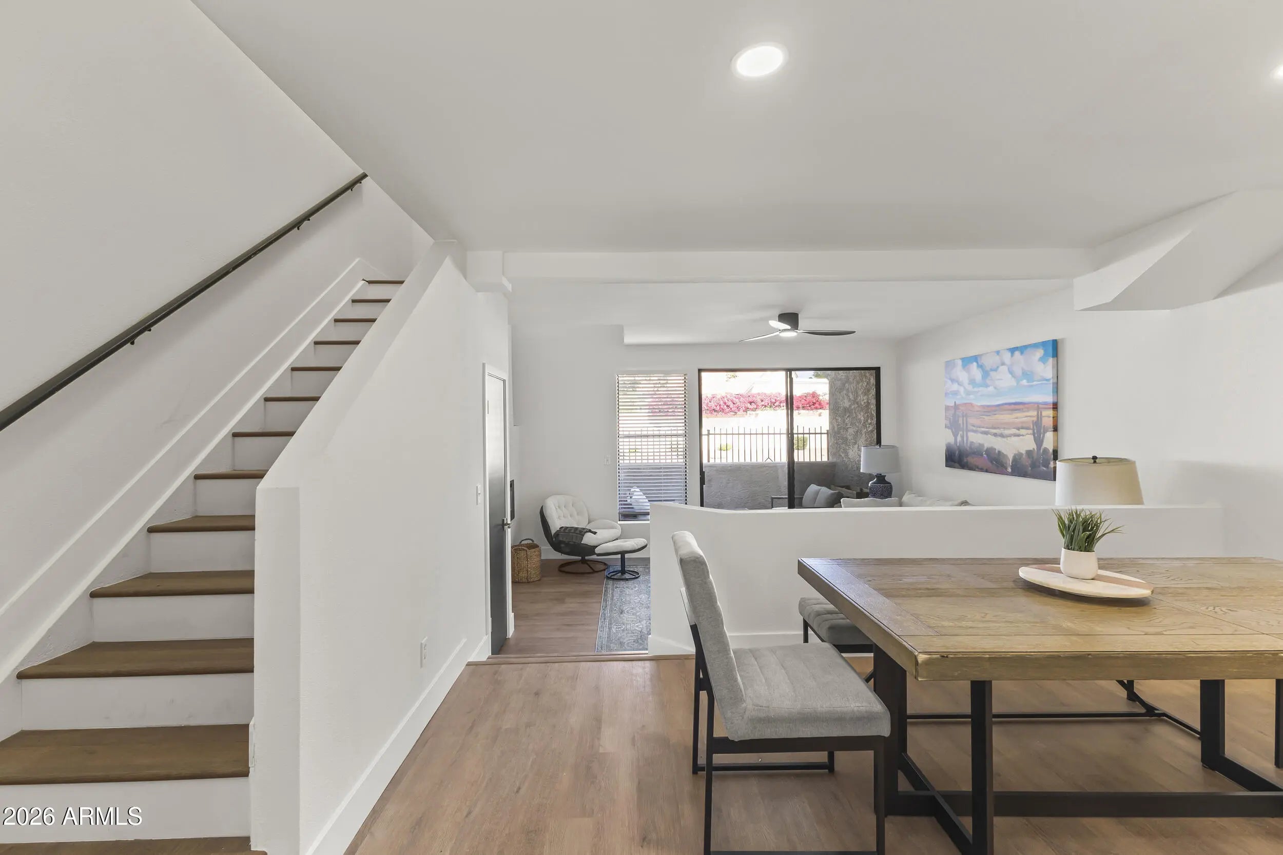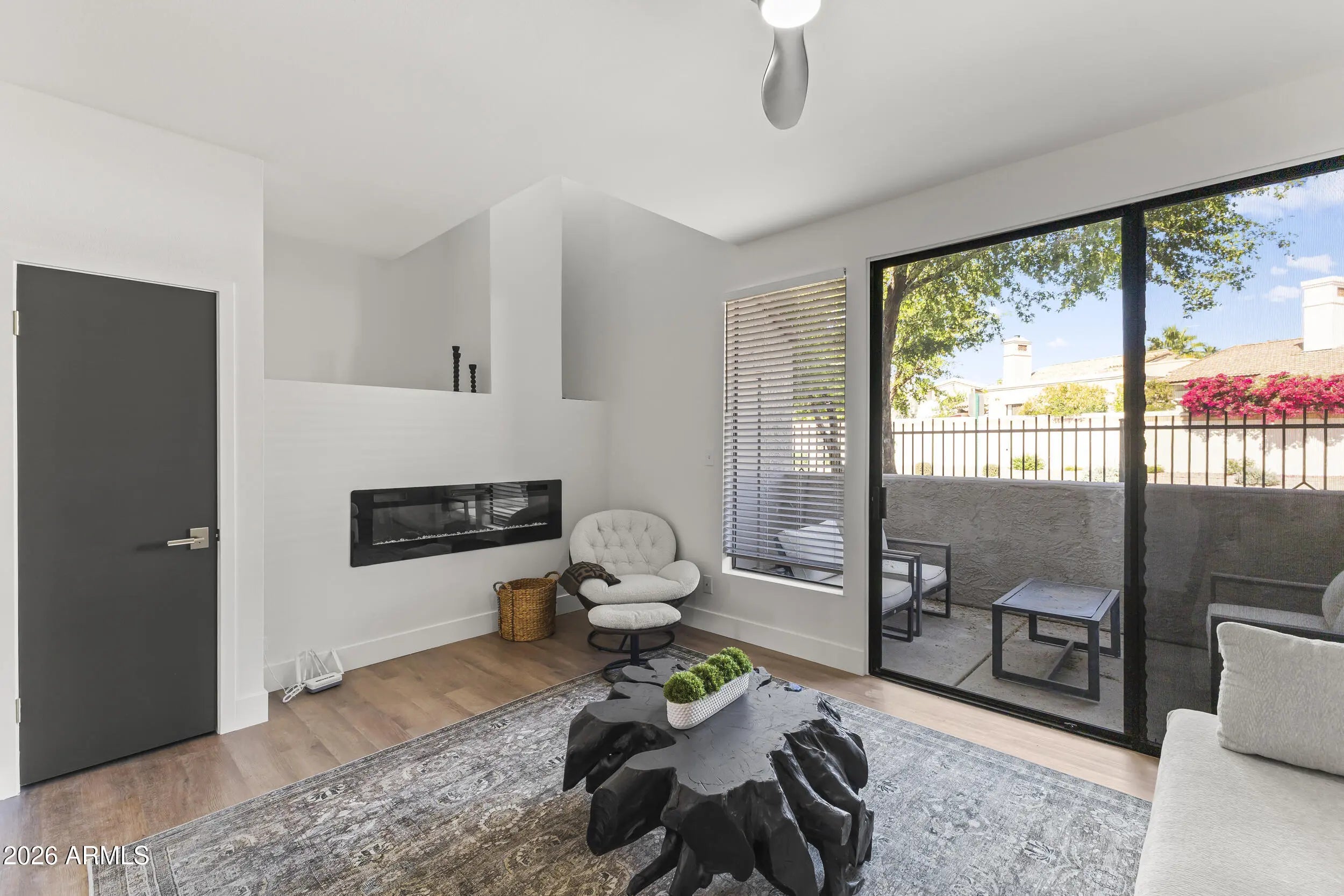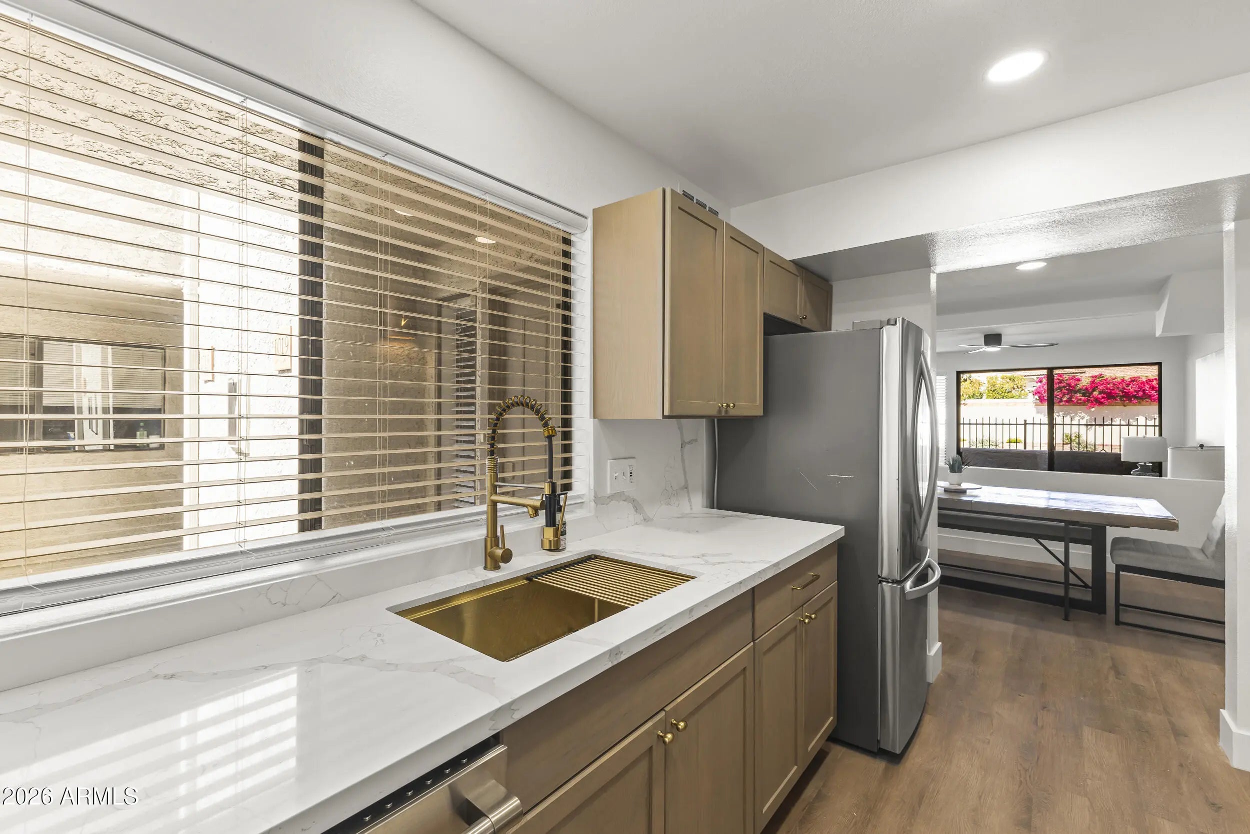 Fresh, modern, and effortlessly livable. This fully renovated, never-occupied, ready to roll townhouse-style condo at The Venetian features clean finishes, new flooring, and a functional open layout that is drenched in light. Enjoy a formal dining space, sunken living room with fireplace, and a bright kitchen with quartz countertops, farmhouse sink, and warm contemporary tones. Two primary suites with walk-in closets and private baths provide comfort and flexibility. Located in Scottsdale Ranch near shopping, parks, and Loop 101 for easy access to it all.