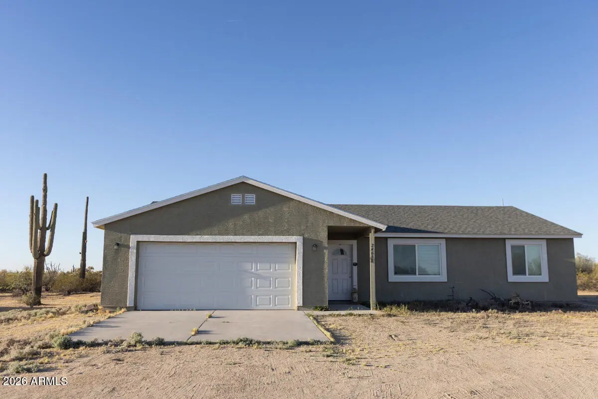 This home features wood-look vinyl flooring throughout, granite countertops and tile surrounds in the bathrooms, and a kitchen complete with stainless steel appliances and a pantry. The spacious dining and living rooms offer plenty of room for entertaining and everyday living. Sitting on 2 acres, the property showcases beautiful native desert vegetation with a lovely variety of cacti and trees -- plenty of room for horses and outdoor activities. The back patio includes fencing, perfect for small children or pets. Additional highlights include a shared well among five homes, a recently installed generator transfer switch for easy generator hookup during power outages, and the added privacy and security of a private street with no through traffic.